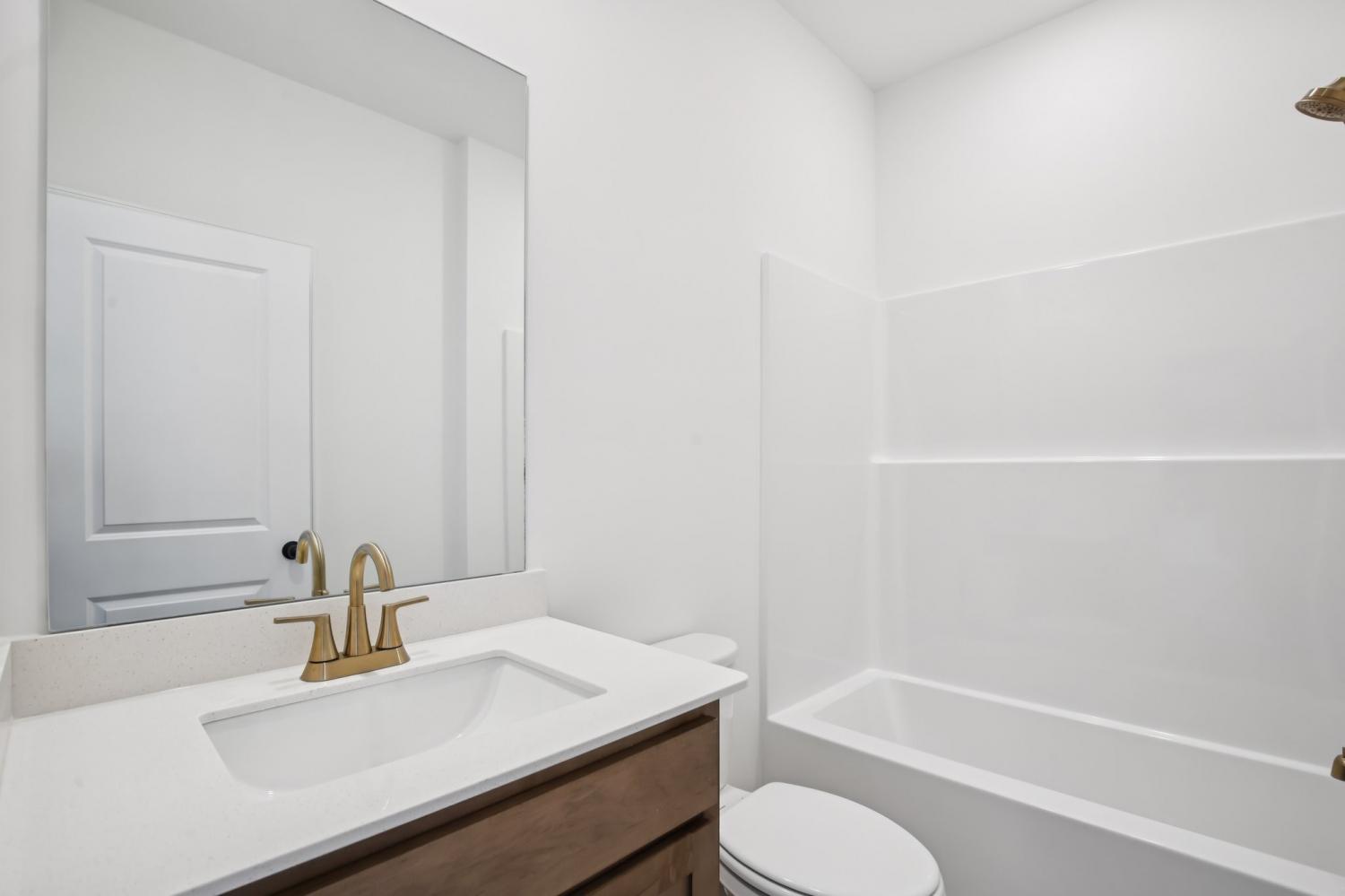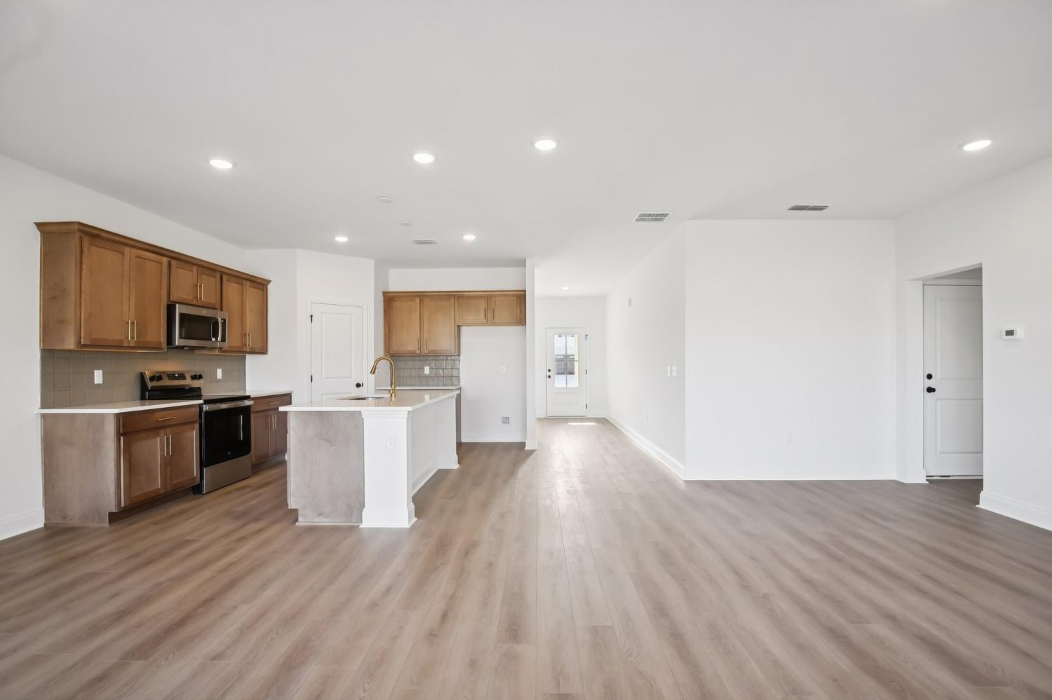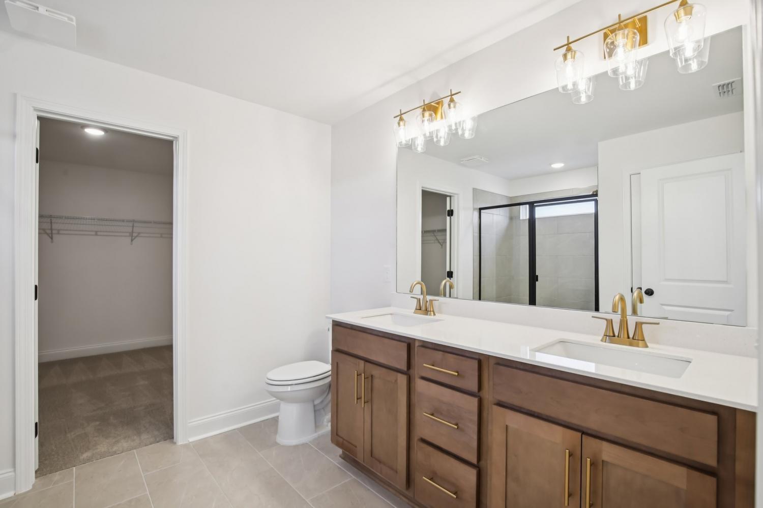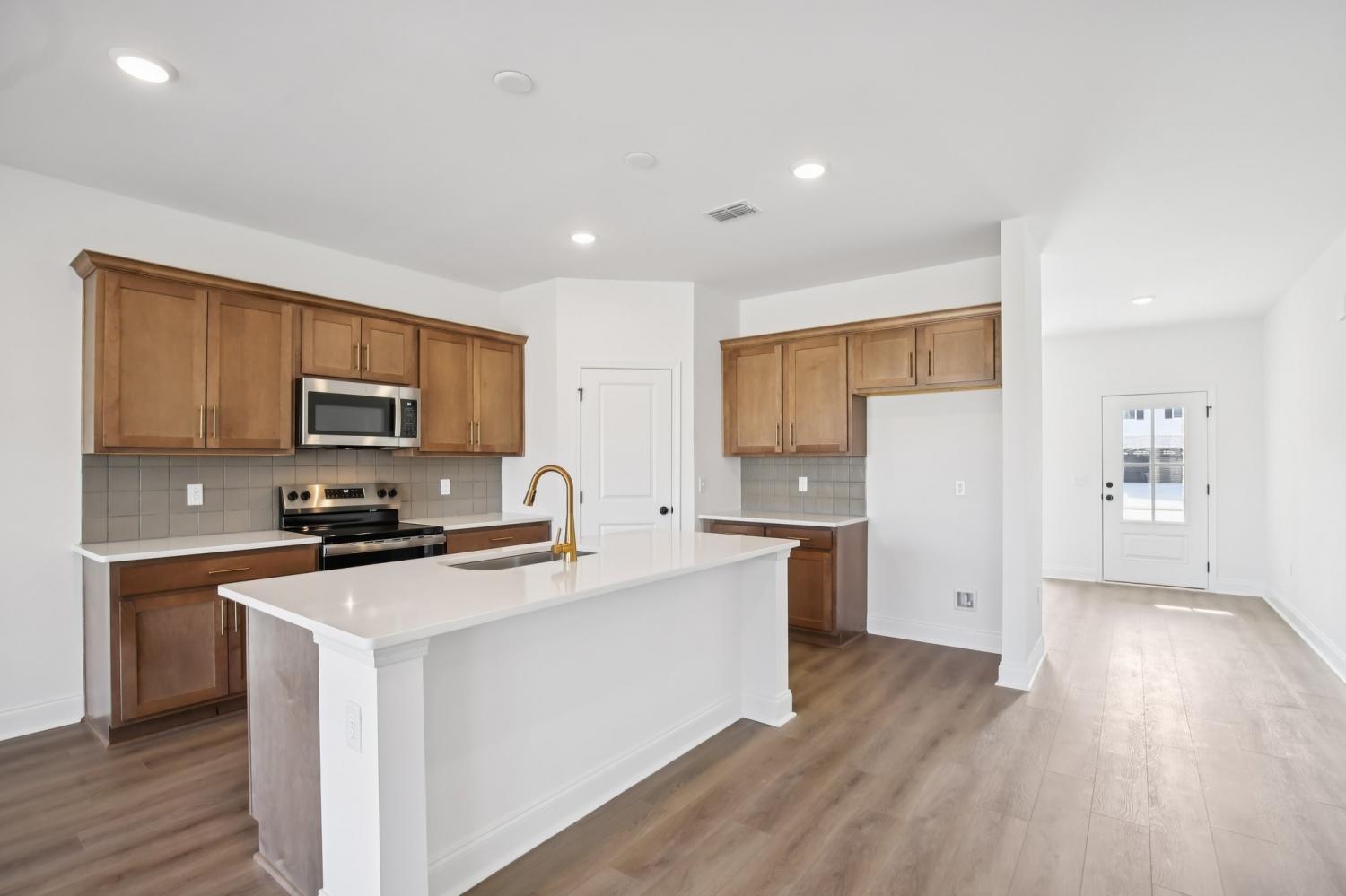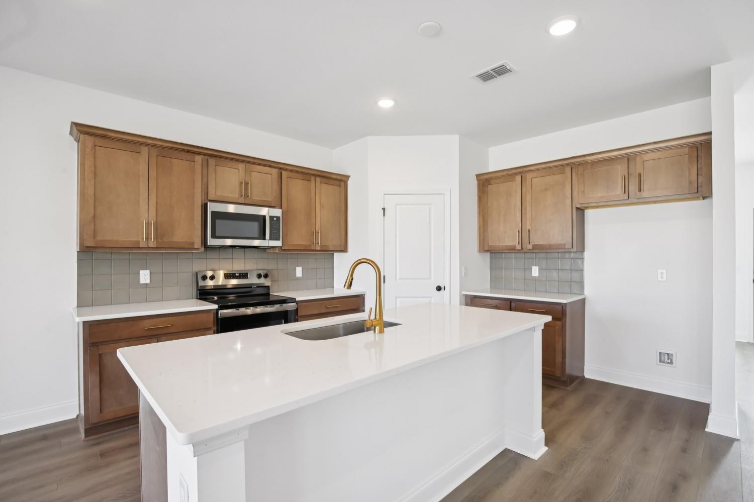 Homesite 170. This open-concept Bartlett floorplan by Ashton Woods has spacious living areas ideal for entertaining. The L-shaped layout features the dining area adjacent to the kitchen which includes gas cooking and designer-curated finishes from the new Laguna Collection such as gold pendant lights, tile backsplash, white quartz counters, light brown stained cabinets with gold hardware, and a single-bowl stainless sink. Enjoy the private view from your covered back porch. The flex room off the foyer is suitable for a home office, formal dining or sitting room. Up the oak stairs with metal railing you'll find a versatile loft space and oversized primary suite with large walk-in closet as well as three secondary bedrooms, additional full bath with dual vanity, and upstairs laundry room. See link for current incentives.