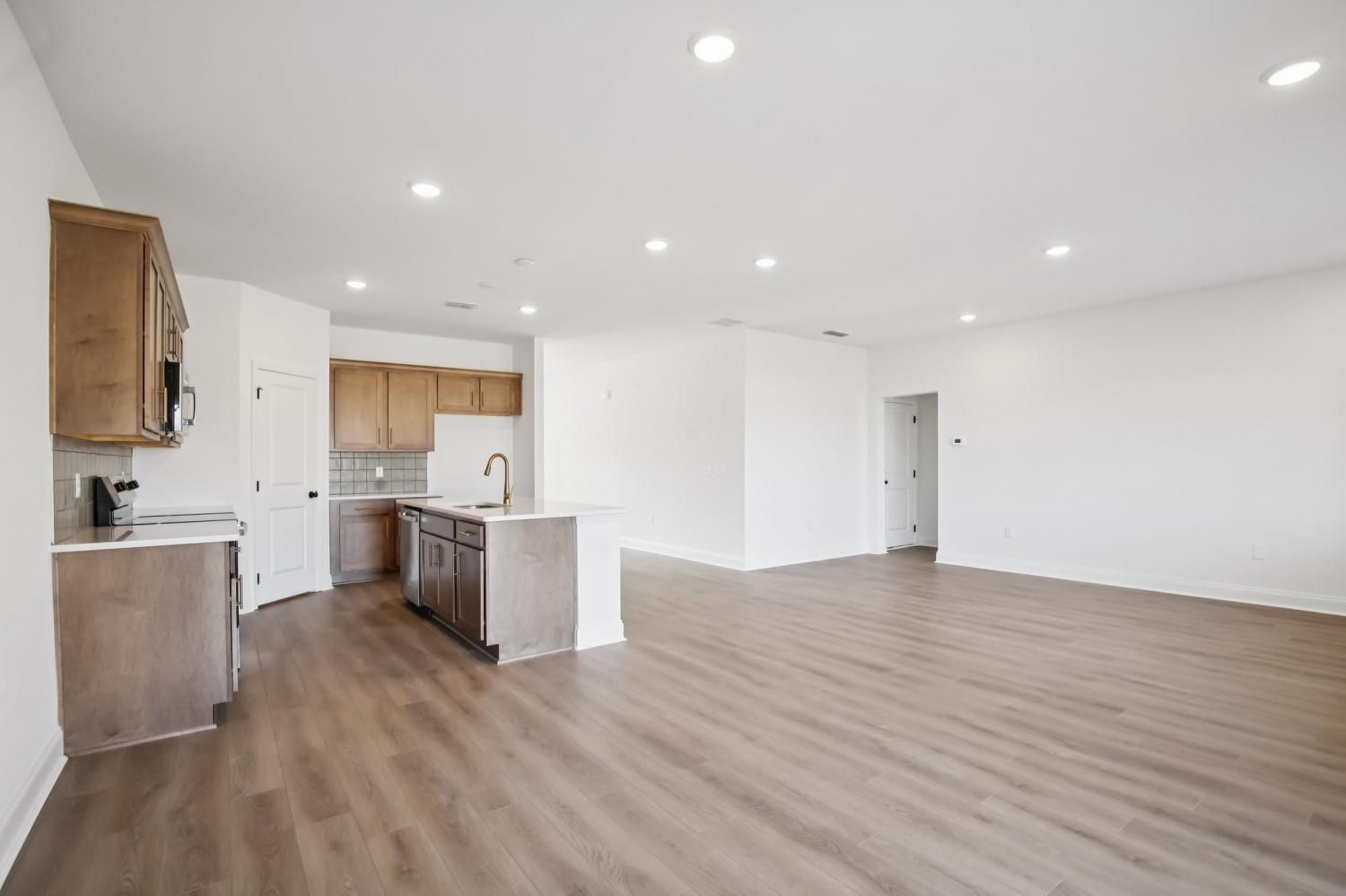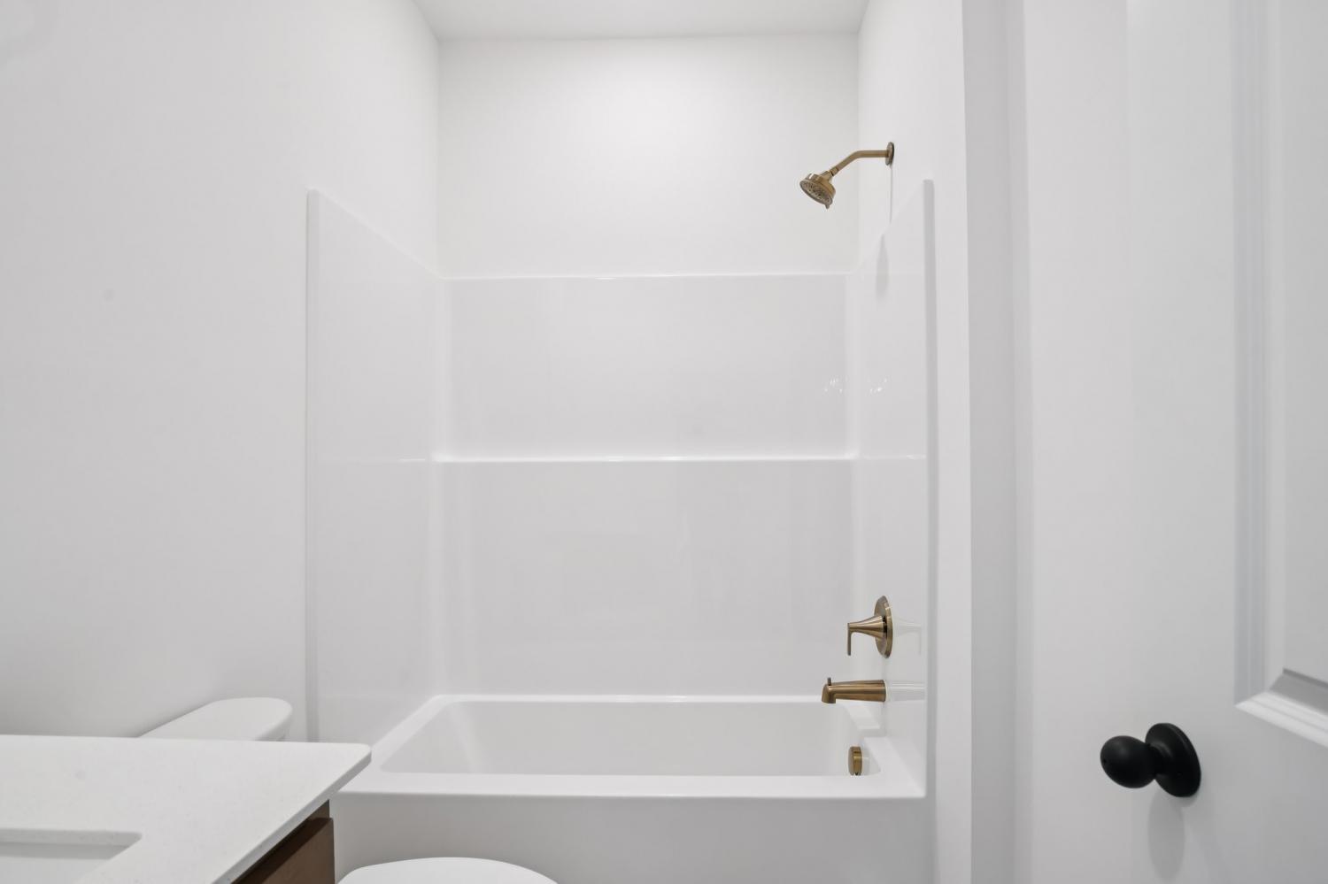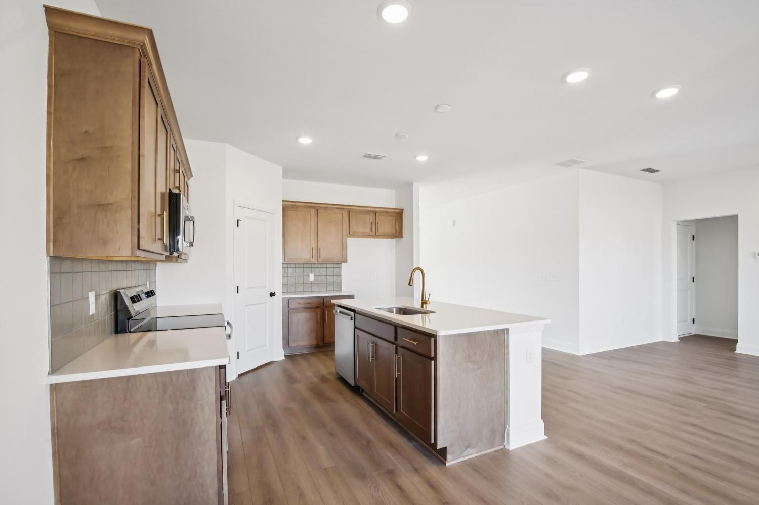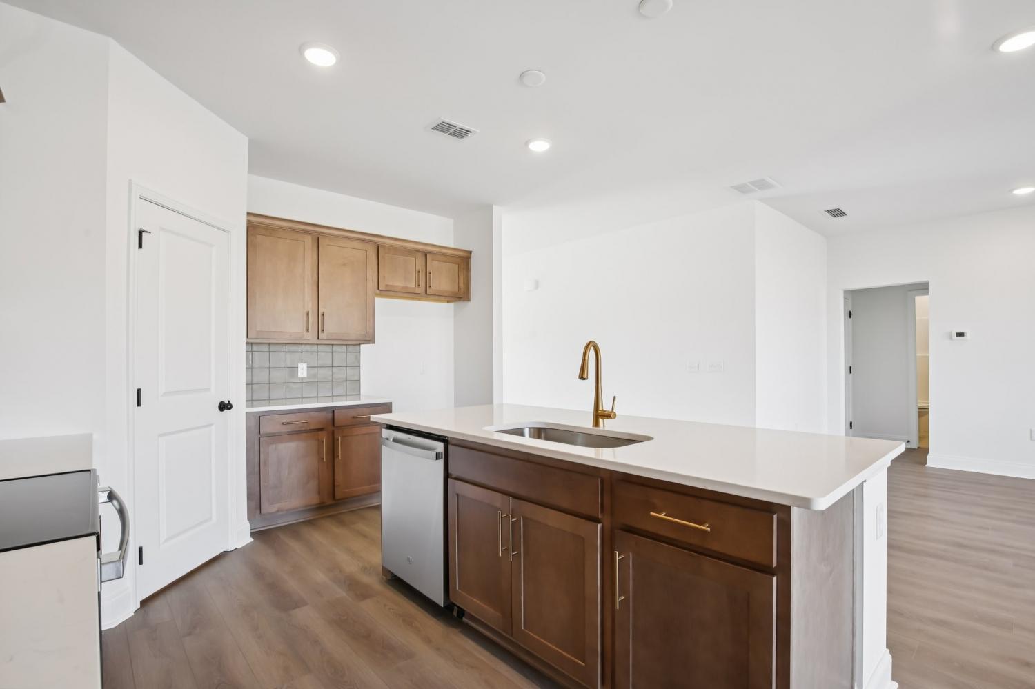 Homesite 170. This open-concept Bartlett floorplan by Ashton Woods has spacious living areas ideal for entertaining. The L-shaped layout features the dining area adjacent to the kitchen which includes gas cooking and designer-curated finishes from the new Laguna Collection such as gold pendant lights, tile backsplash, white quartz counters, light brown stained cabinets with gold hardware, and a single-bowl stainless sink. Enjoy the private view from your covered back porch. The flex room off the foyer is suitable for a home office, formal dining or sitting room. Up the oak stairs with metal railing you'll find a versatile loft space and oversized primary suite with large walk-in closet as well as three secondary bedrooms, additional full bath with dual vanity, and upstairs laundry room. See link for current incentives.