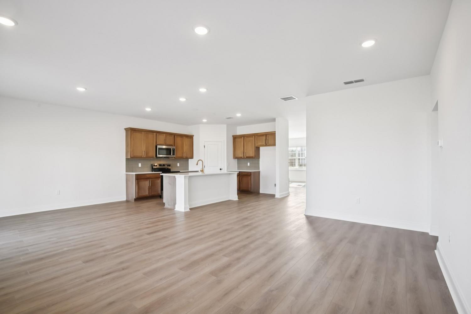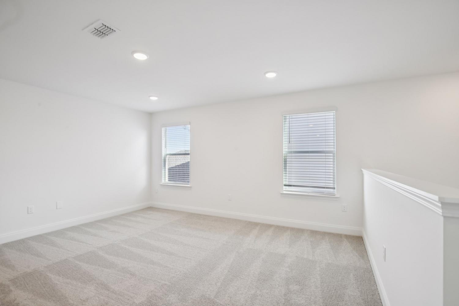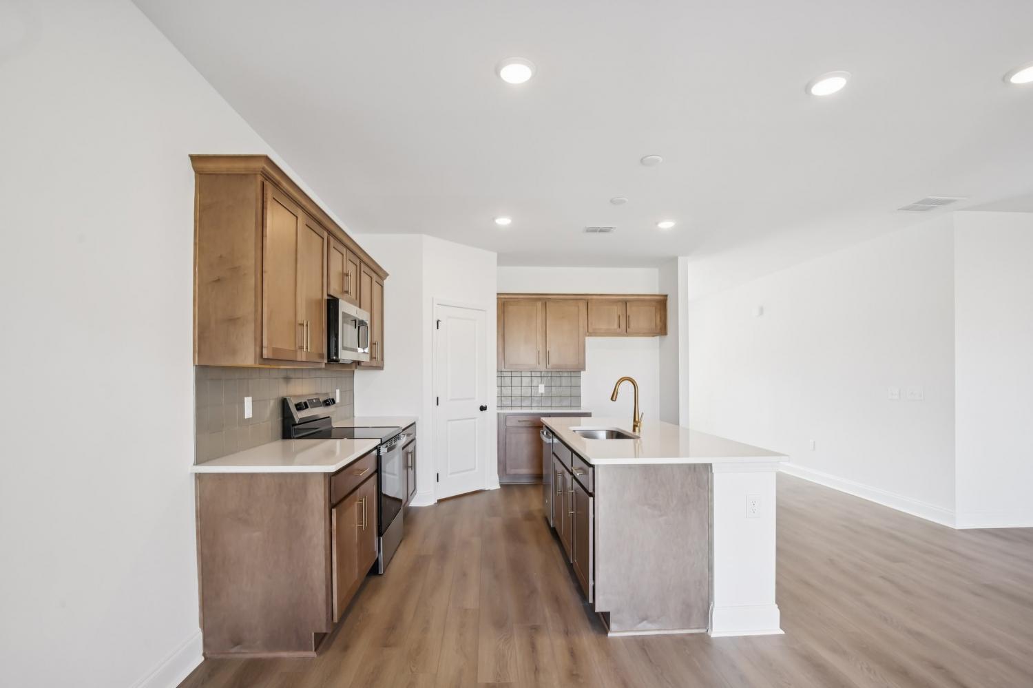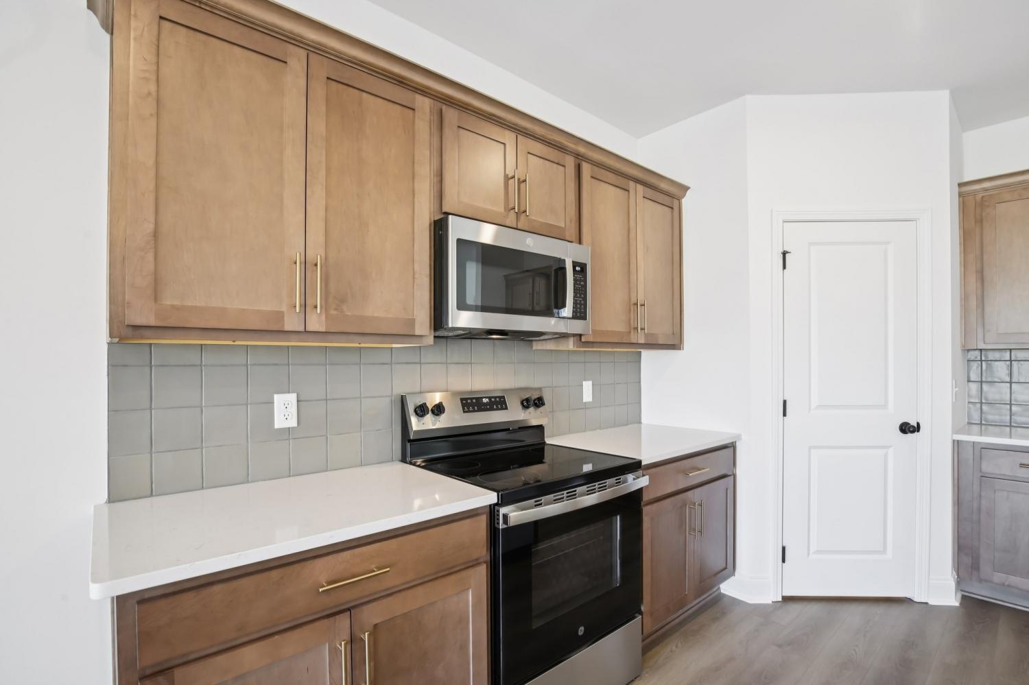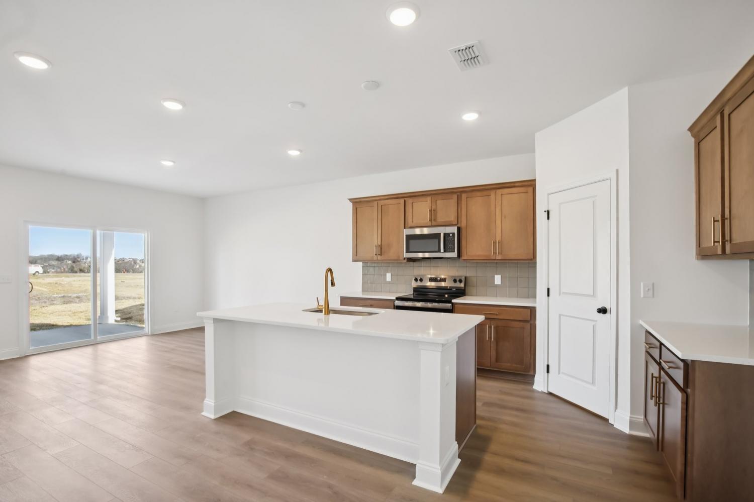 Homesite 170. This open-concept Bartlett floorplan by Ashton Woods has spacious living areas ideal for entertaining. The L-shaped layout features the dining area adjacent to the kitchen which includes gas cooking and designer-curated finishes from the new Laguna Collection such as gold pendant lights, tile backsplash, white quartz counters, light brown stained cabinets with gold hardware, and a single-bowl stainless sink. Enjoy the private view from your covered back porch. The flex room off the foyer is suitable for a home office, formal dining or sitting room. Up the oak stairs with metal railing you'll find a versatile loft space and oversized primary suite with large walk-in closet as well as three secondary bedrooms, additional full bath with dual vanity, and upstairs laundry room. See link for current incentives.