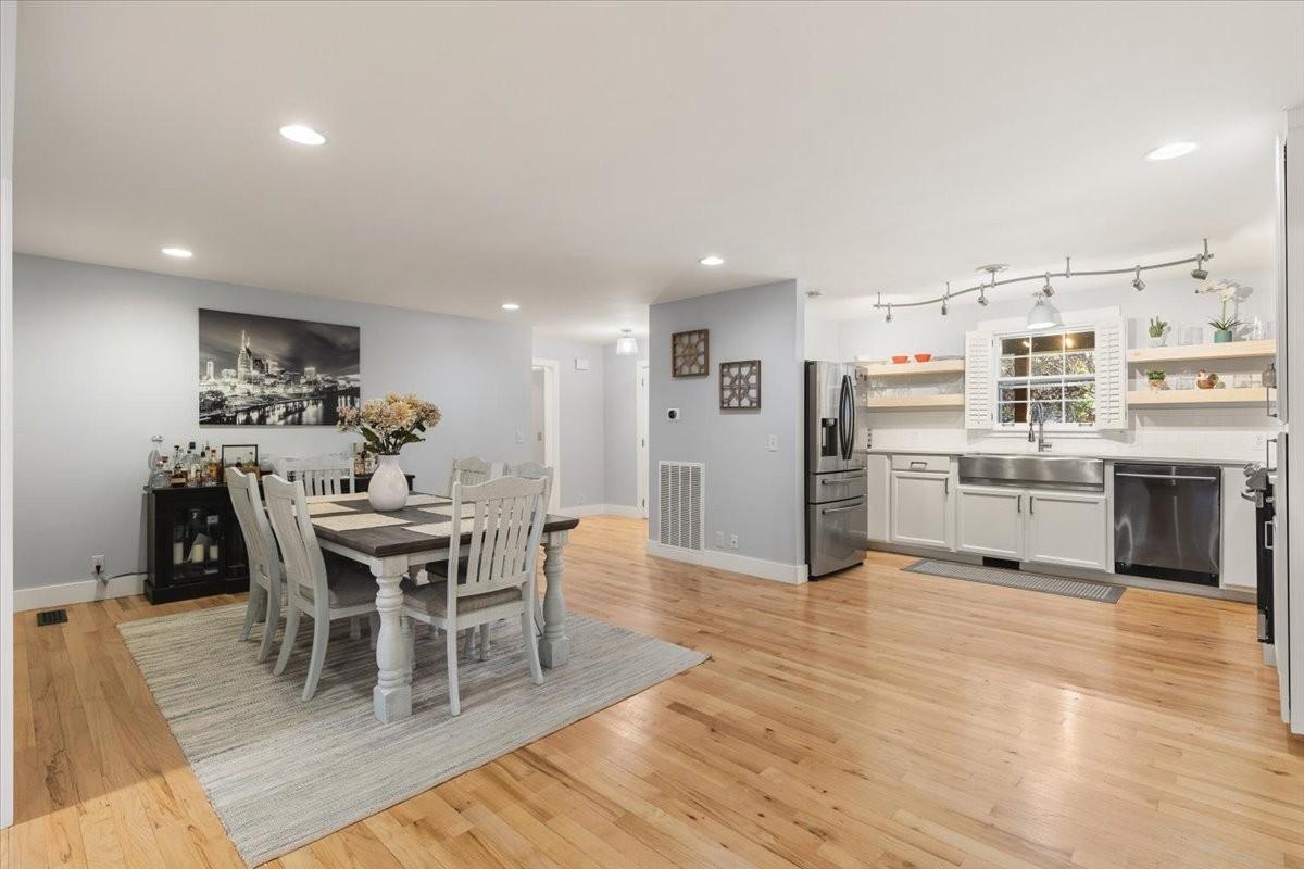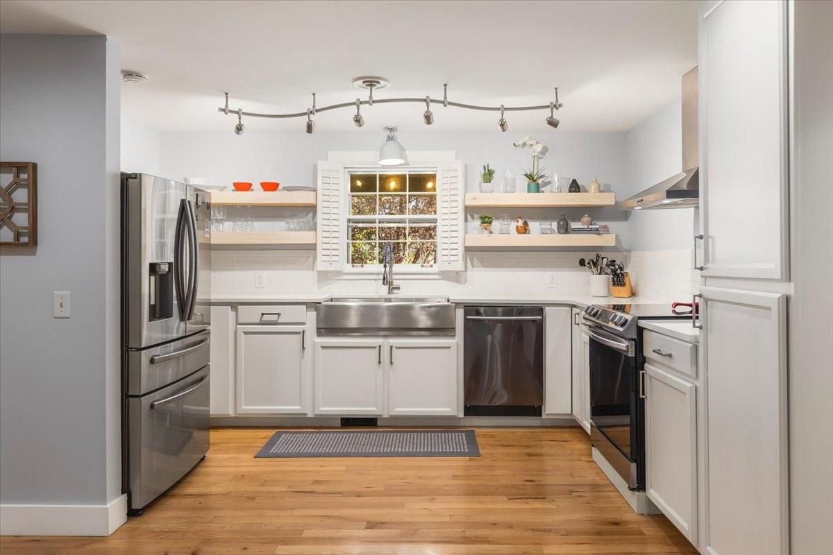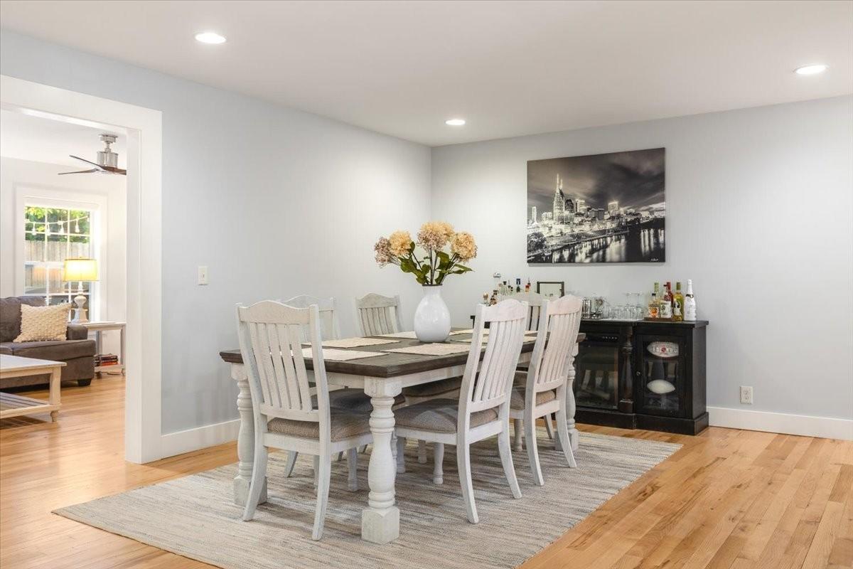 Beautifully updated one-level home just moments from Historic Downtown Franklin and within walking distance to Jim Warren Park. Designed for comfort and style, this property blends timeless charm with thoughtful modern updates throughout. The remodeled kitchen showcases custom cabinetry, a farmhouse sink, quartz countertops, and a spacious walkin pantry perfect for everyday living and entertaining. The primary suite features an updated bathroom with classic black fixtures, bright white finishes, and an elegant accent wall, creating a serene retreat. Additional upgrades include new hardwood flooring and custom closet doors in the nursery, & fresh paint throughout. The living area centers around a new oversized gas fireplace & custom entertainment center. New large deck & expansive backyard provide a private outdoor oasis. Other improvements include new HVAC & roof (within 7 years) Full crawl space encapsulation & treatment, This home is a rare Franklin gem thoughtfully renovated, move in ready property that combines the best in location, lifestyle, and modern comfort.