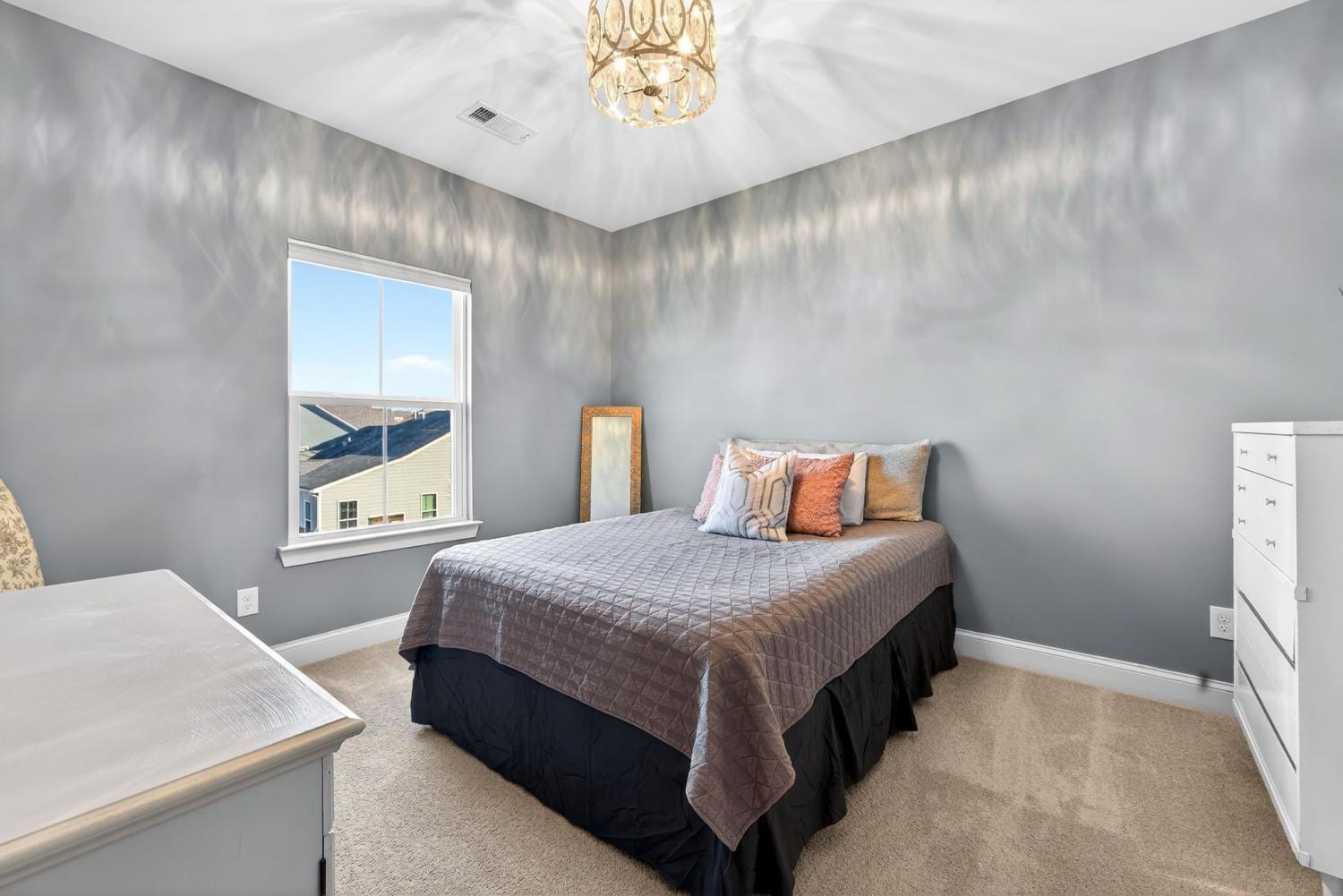 Inviting 5-bedroom home with a FLAT + PRIVATE backyard under $900k! Thoughtfully designed for both comfort and convenience, the main floor includes a private guest suite which is perfect for visitors or multigenerational living. The open living area offers an easy, natural flow and a gas fireplace. Upstairs, you’ll find brand-new carpet and fresh paint throughout, giving the home a crisp, move-in-ready feel. Large windows frame peaceful backyard views, bringing the outdoors in. Step outside to your own private haven: a spacious, flat backyard with a paver patio and a charming pergola adorned with string lights, perfect for relaxing evenings or entertaining friends. The firepit provides a cozy spot to enjoy crisp winter nights. Stream Valley offers a beach-entry pool, multiple playgrounds, walking trails, and year-round community events that foster a strong sense of connection. With easy access to I-65, 840, and Berry Farms, this one is a must-see!
