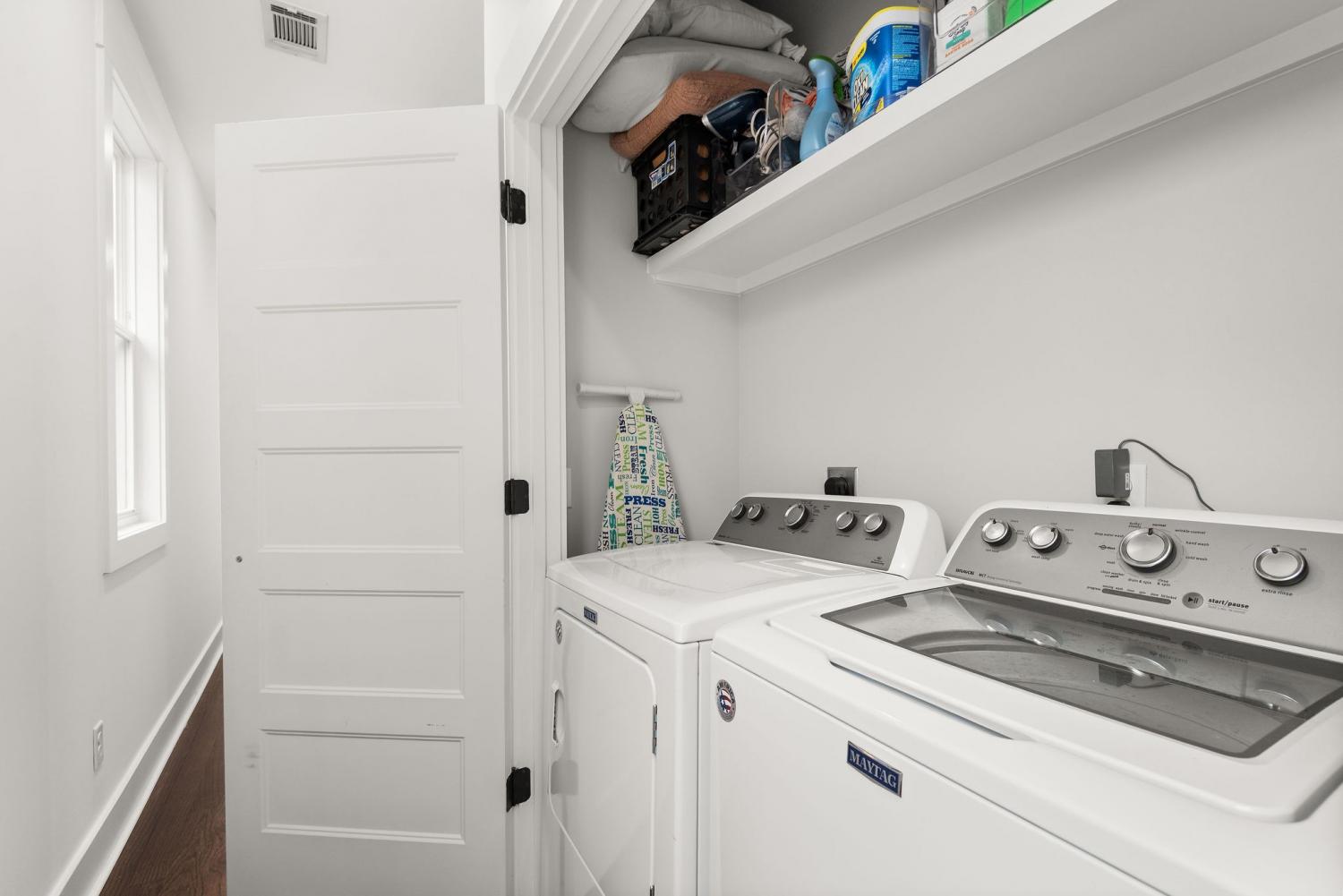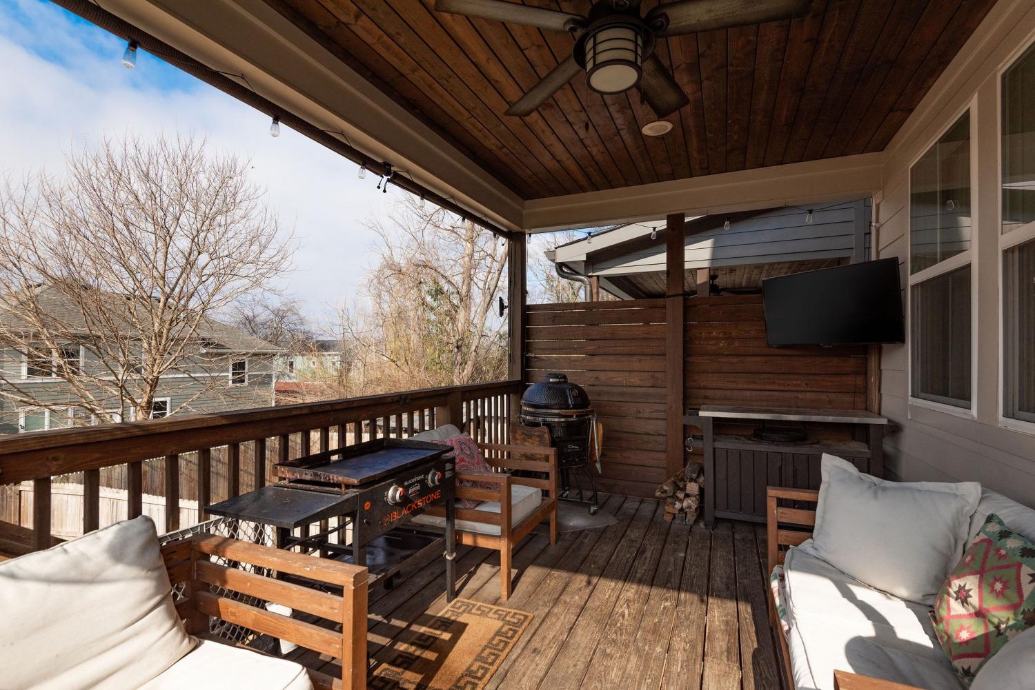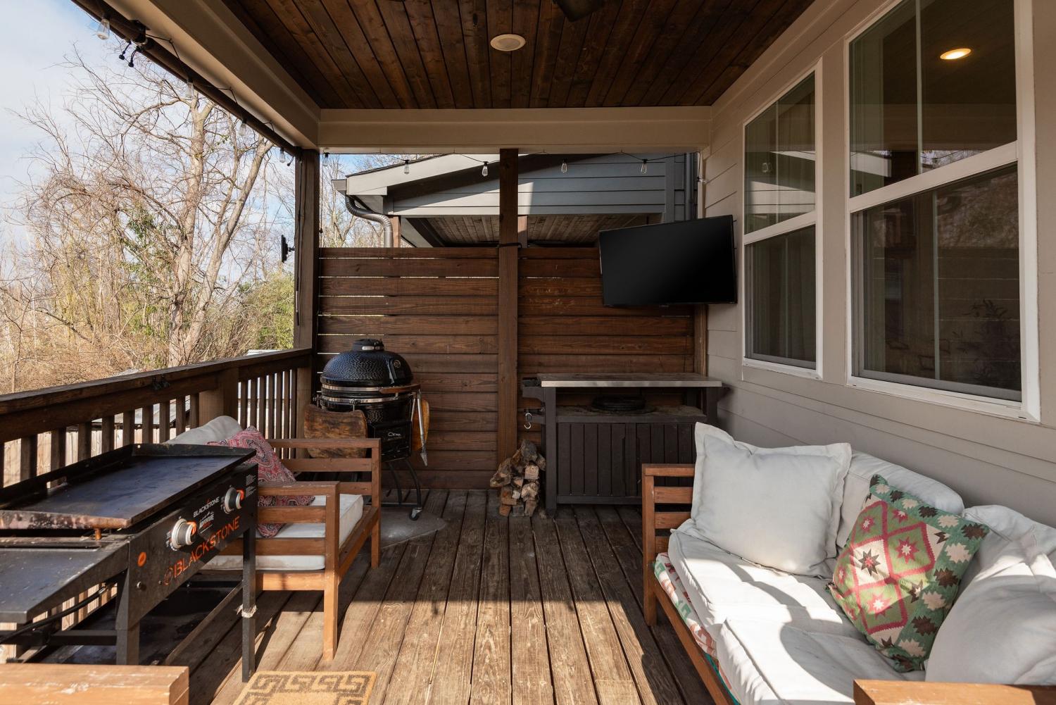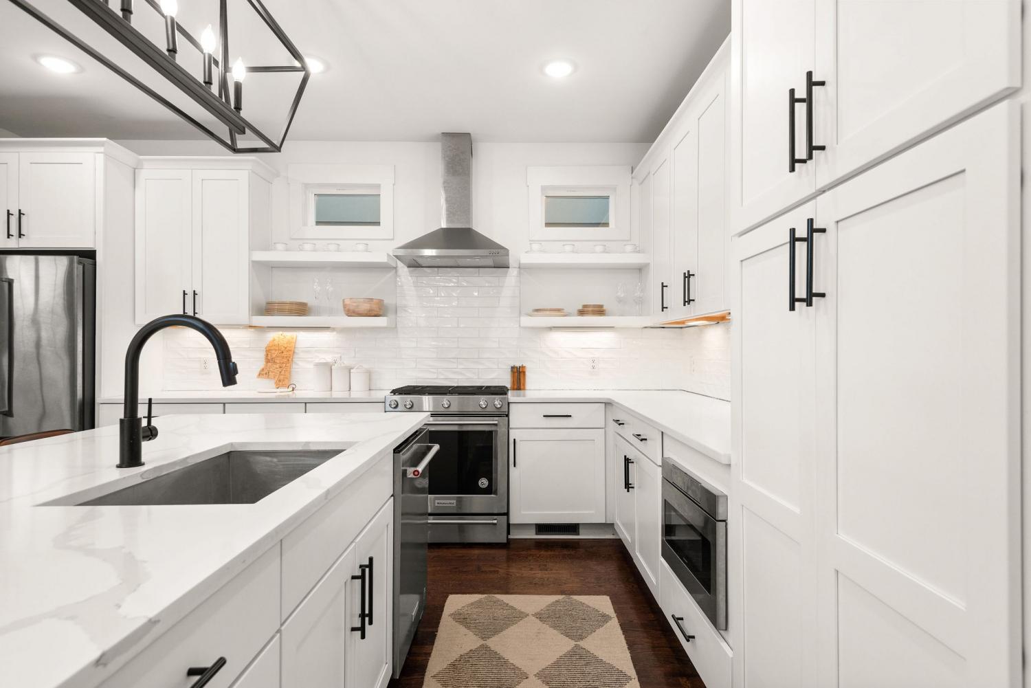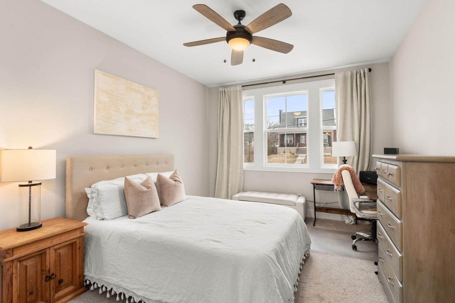 Detached home on a quiet street with exceptional walkability in Charlotte Park, featuring an attached garage, hardwood floors, abundant storage, a luxurious primary suite and spacious yard. The open-concept main level is ideal for entertaining or relaxing nights in, highlighted by a designer kitchen with gray-veined quartz countertops, a gas range, in-island storage and soft-close cabinetry. A dedicated dining space easily accommodates gatherings large and small, while the living room offers a roaring gas fireplace, built-in storage benches and abundant natural light. Upstairs, the grand primary suite showcases vaulted ceilings, a spa-like bath and deep walk-in closet. Two guest bedrooms offer generous closet space, and the laundry room includes side-by-side units with added shelving. Enjoy outdoor living on the elevated covered deck, prepped with outlets for TVs, speakers and lighting, plus ample space for seating and grilling. The fully fenced backyard offers room for pets and play, while the tall, easy-access crawl space provides impressive storage. All just steps from Charlotte Park, fitness and pilates studios and popular Robertson Ave favorites including Benji’s Bagel & Coffee.
