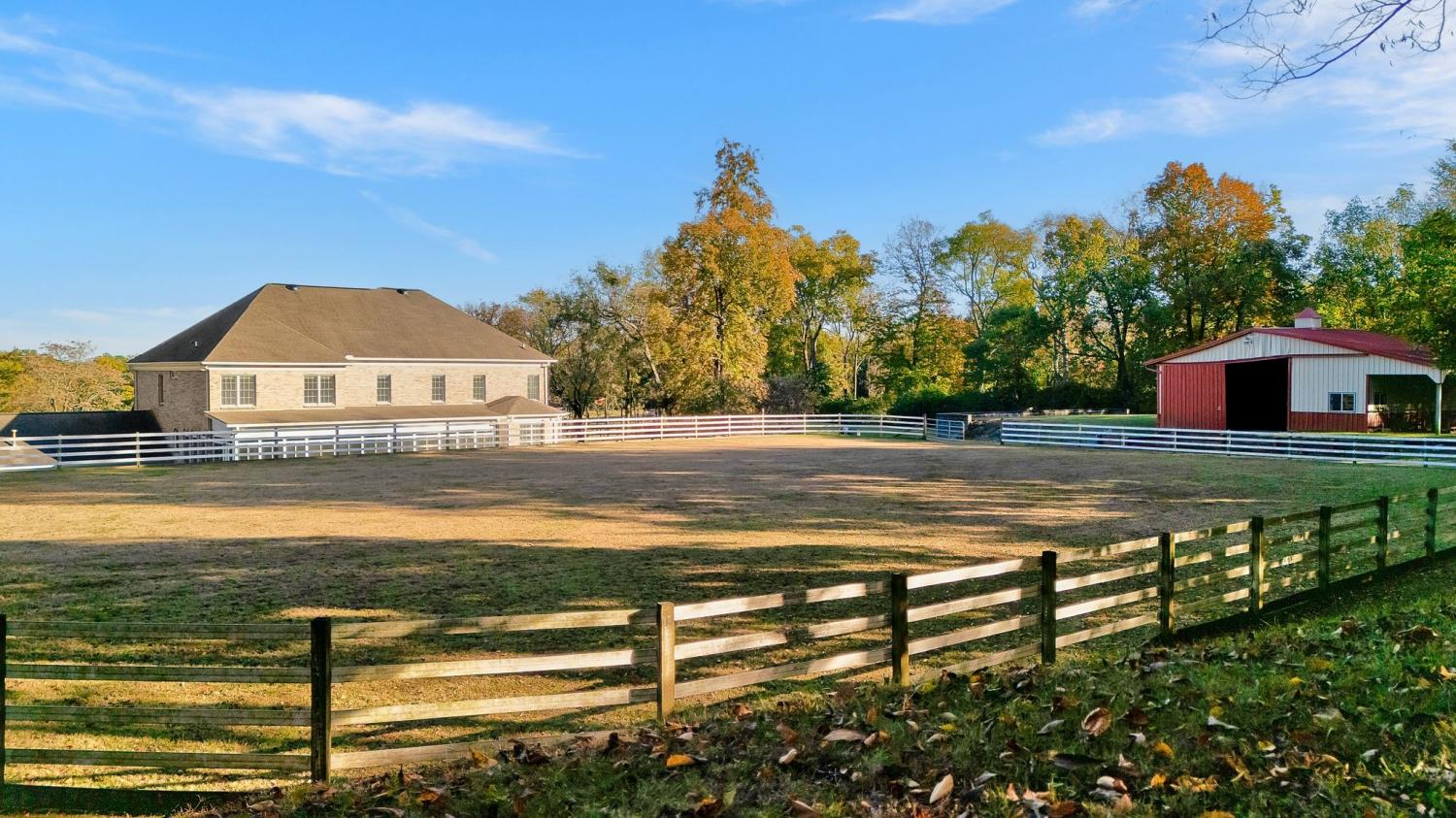 A beautifully gated residence defined by timeless craftsmanship and thoughtful design. The home features hardwood floors, detailed crown molding, and a fully finished basement complete with a wine cellar and additional garage space. The main level offers a spacious primary suite with a reading nook and spa-like bath, along with an additional en suite bedroom, private office, and mudroom connecting to a three-car garage. Upstairs, three en suite bedrooms are complemented by walk-in closets and flexible spaces ideal for a study, gym, or guest retreat. Outdoors, the property is complete with an in-ground pool, barn, and full-house generator. A lower paddock and upper arena add both function and character, creating a rare setting that balances elegance with versatility.
