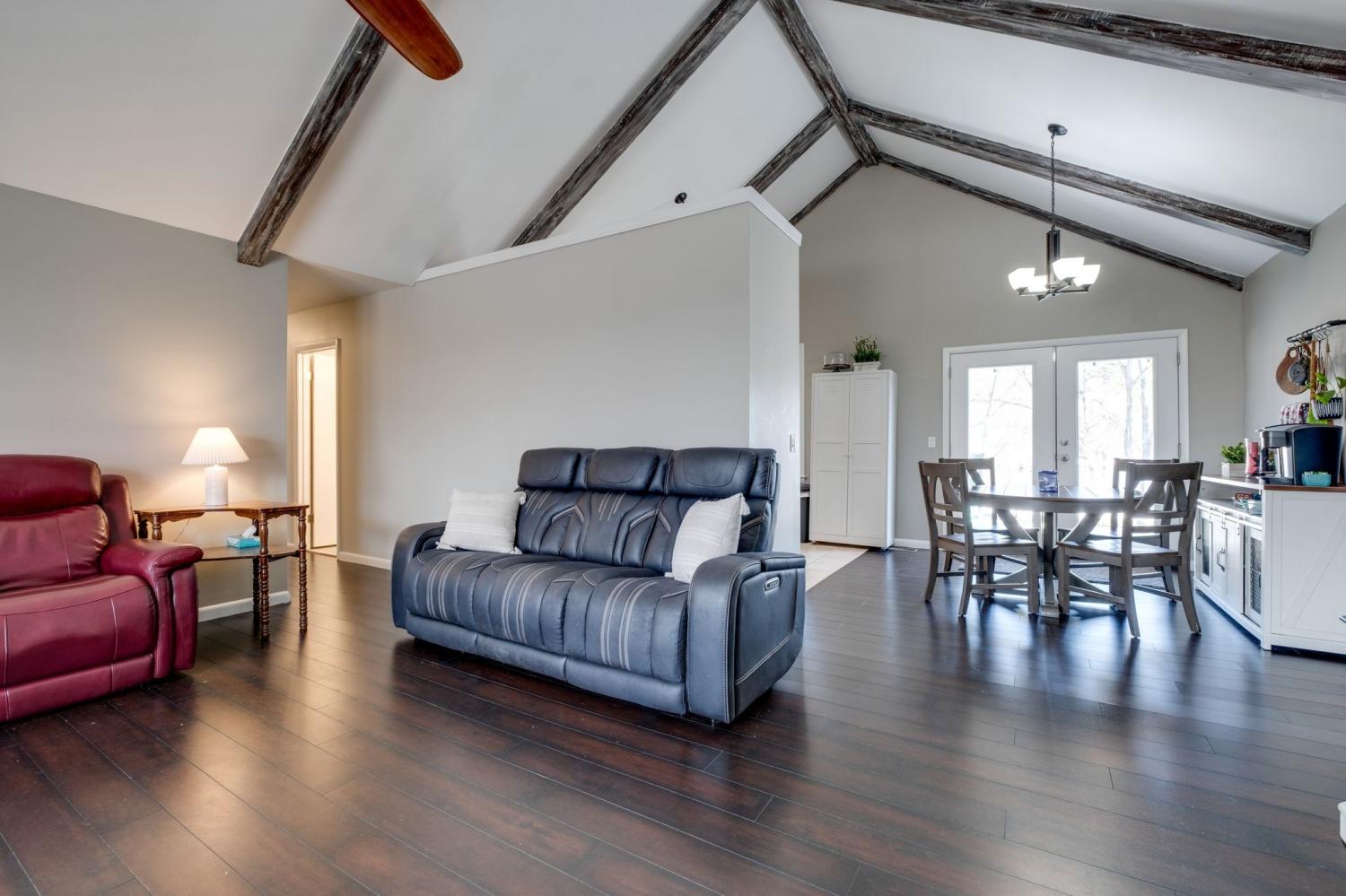 Charming Craftsman with Park-Like Backyard & Entertainer’s Deck Don’t miss this beautifully maintained craftsman-style home offering the perfect blend of comfort, character, and outdoor living. Featuring 3 bedrooms and 2 full baths, this home welcomes you with a stunning 13-foot vaulted ceiling that seamlessly connects the living room to the eat-in kitchen, creating an open and airy feel ideal for everyday living and entertaining. The kitchen includes all appliances to remain, while the living room is anchored by a stone, wood-burning fireplace that adds warmth and charm. The primary suite offers a private en-suite bath, and the hall bath showcases custom tile finishes. Enjoy outdoor living on both the front patio with pergola and the covered rear deck (22’ x 11’) overlooking a tiered, park-like backyard that extends approximately 60 feet beyond the wood fence—perfect for relaxing, entertaining, or future expansion. Additional highlights include a front-entry one-car garage (24’ x 13’) with side access, built-in exterior storage ideal for yard tools, and sidewalks surrounding the home. Exterior features include durable MiraTEC composite trim, with siding, gas water heater, main water supply line, and gutters replaced since 2014. Gas heat adds efficiency and comfort. Ideally located just 10 minutes to BNA, and minutes from restaurants, grocery stores, Percy Priest Lake, and Old Hickory Lake, this home offers both convenience and lifestyle.