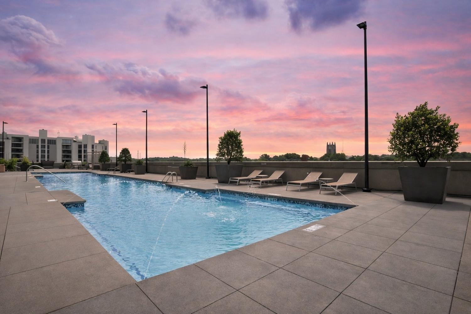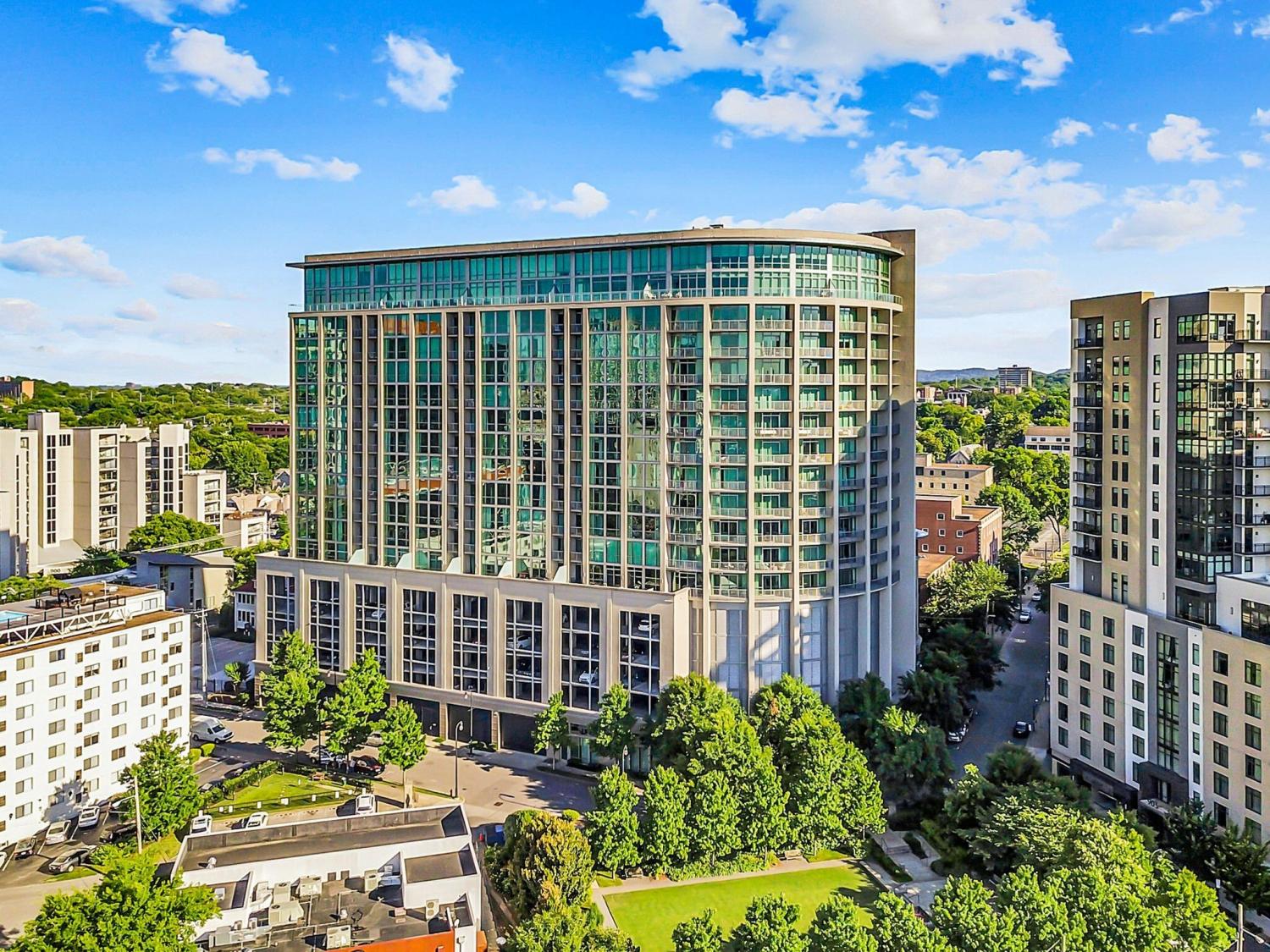 Experience elevated Midtown living in one of the largest one-bedroom residences at The Adelicia, one of Nashville’s premier luxury high-rises, ideally located near Vanderbilt, Belmont University, and Nashville’s hospitals. Positioned on the 11th floor, this light-filled home offers an open-concept layout framed by floor-to-ceiling windows and two private balconies overlooking the resort-style pool. The spacious bedroom allows for a sitting area or workspace, and the oversized bath features a double vanity, soaking tub, and separate walk-in shower, a rare layout for a one-bedroom. Two deeded parking spaces, unique in this luxury high-rise, and a private storage unit add meaningful convenience and value. Residents enjoy a true lock-and-leave lifestyle with 24-hour concierge and security, an Olympic-sized heated lap pool, 3,000 sq. ft. fitness center, resident park and dog park, refined social spaces, and Google Fiber internet and TV included in the HOA. Walkable to dining, Music Row, and daily conveniences, this is secure, connected, and sophisticated urban living in the heart of Midtown.