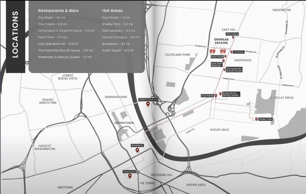 from Downtown Nashville - N on Ellington Pkwy - Exit R onto Douglas Ave - Right on Gallatin Ave - Right on W Greewood Ave - Right on Bailey St - Home is at the very end to the right