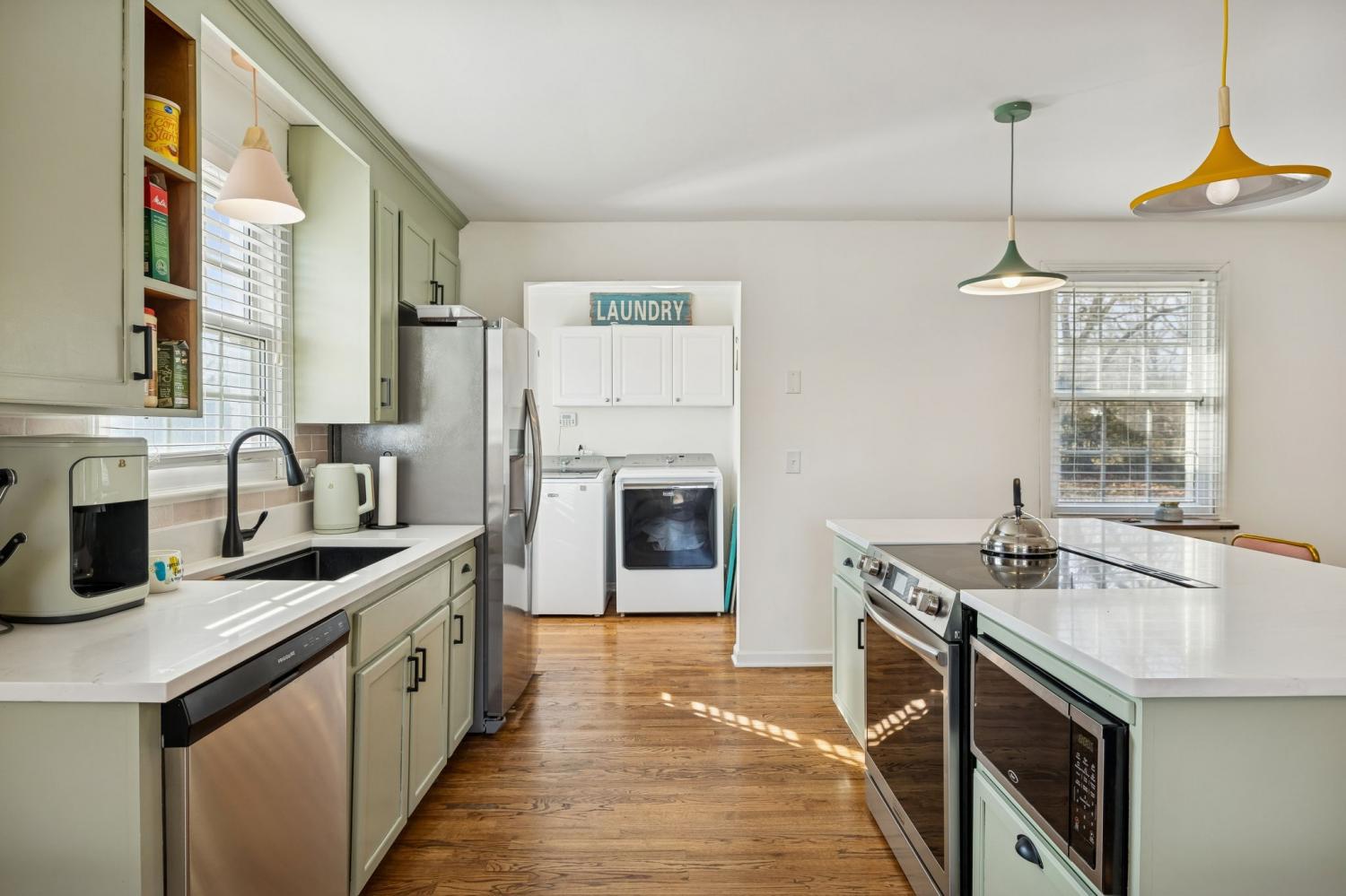 Open House Friday, February 27th from 11am-2pm! Save up to 1% of the loan amount as a closing cost credit with seller's suggested lender! Welcome to this beautifully renovated one-story, all-brick home situated on a spacious 0.25-acre lot in a highly desirable location—just 5 minutes from the heart of historic downtown Franklin and only 9 minutes to The Factory at Franklin. Enjoy convenient access to local shops, dining, and entertainment while living in one of Middle Tennessee’s most sought-after areas. This home has been thoughtfully and fully renovated, featuring new flooring, fresh paint, a newly added second bathroom, an entirely redesigned kitchen, updated light fixtures, plumbing, and brand-new appliances. Step inside to a bright and spacious living room filled with natural light and highlighted by a stunning wallpaper accent wall that adds warmth and character. The brand-new kitchen showcases stylish green cabinetry, quartz countertops, a tiled backsplash, stainless steel appliances, a center island, and a dedicated dining area. The home offers three bedrooms, two full bathrooms, and a convenient laundry room. Outside, enjoy a large backyard with plenty of space for outdoor activities, along with two storage buildings for added convenience. A detached one-car garage completes the property. This home is full of charm and move-in ready—an absolute must-see in an unbeatable Franklin location!