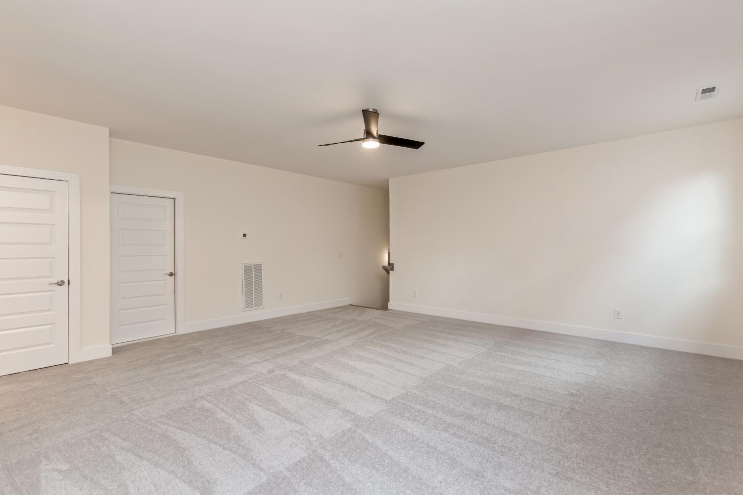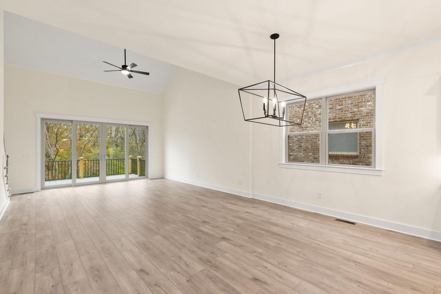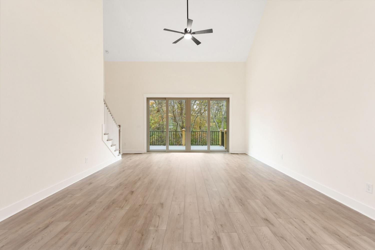 Finished walk-out basement! Home Backs Up To Common Area with Mature Trees! Gated Community with Pool, Clubhouse & Walking Trails next door to Bluegrass Yacht & Country Club. Complete With Modern Finishes. Primary Bedroom located on the main level with Large Tiled Shower including a Bench Seat and Free-Standing Tub. Beautiful Hardwood Floors, Kitchen with extra LRG 8' Island, Stainless Steel Appliances Including Gas Range, Quartz countertops and Tile Backsplash is open to the Dining Area & Great room. Office on first floor. Walk-out basement has a huge living area, bedroom, full bath and access to back yard patio. Vaulted ceilings on main level. Large Deck. Loads of Storage! Lawn maintenance, Irrigation System and watering is maintained by HOA. Call agent for details.