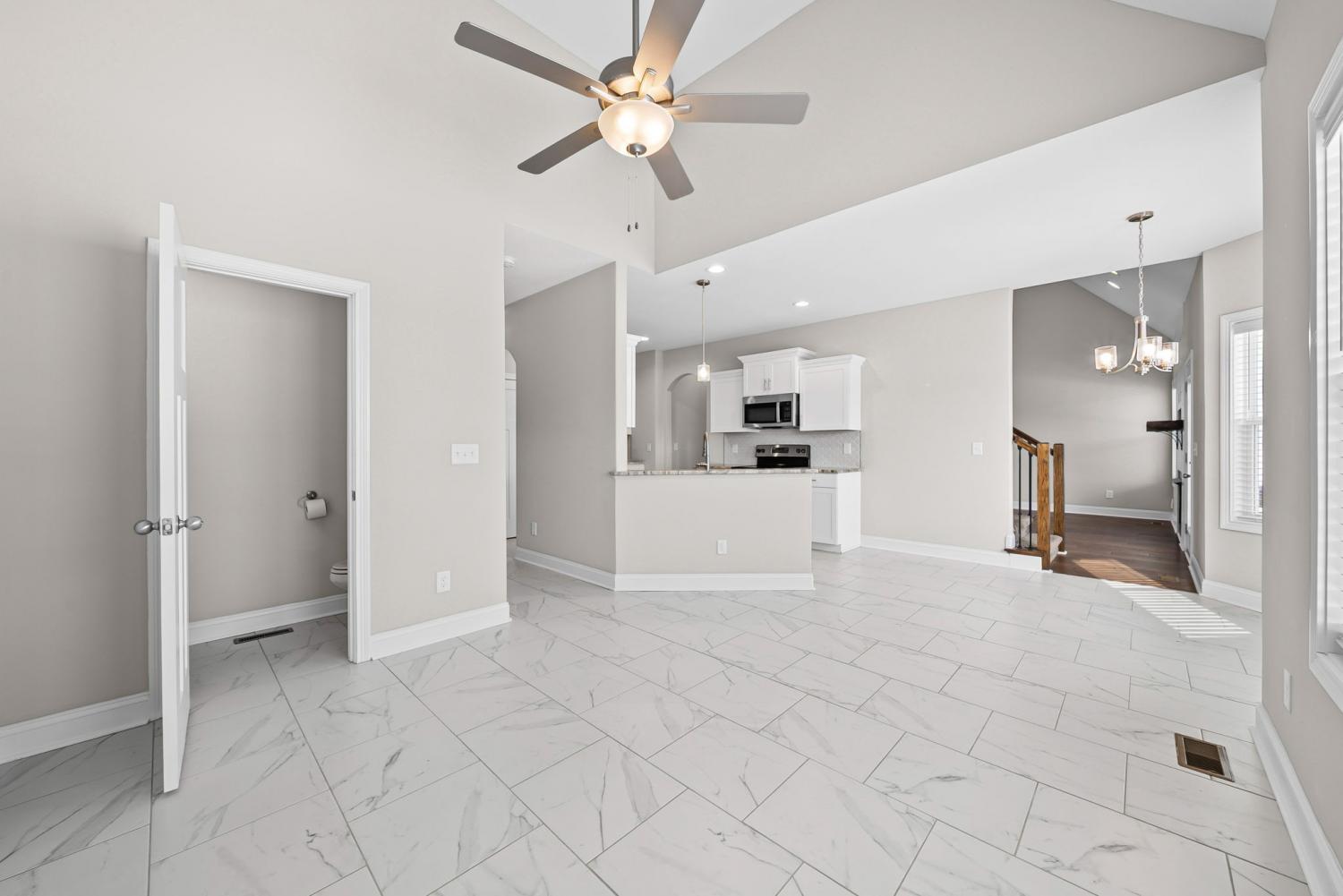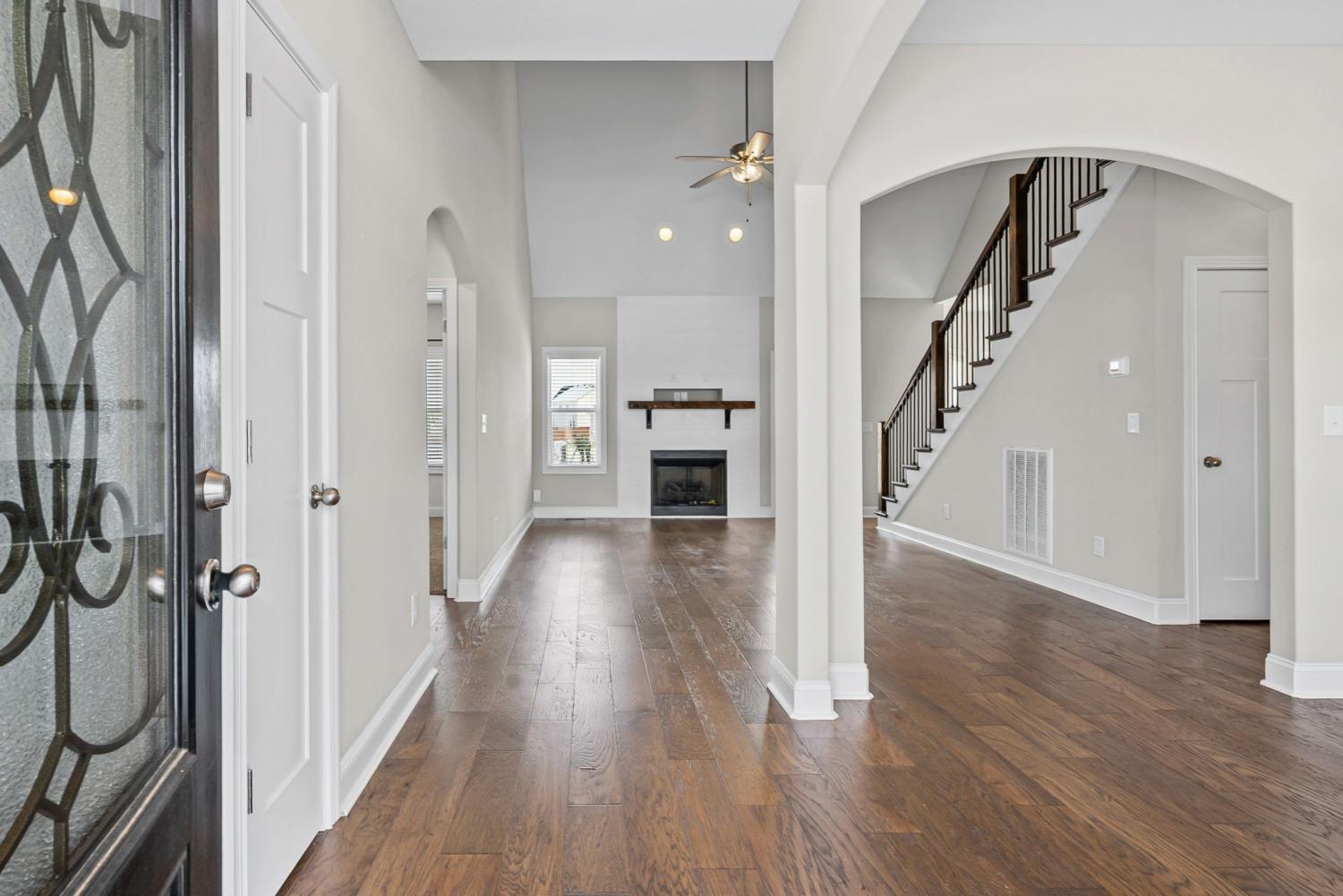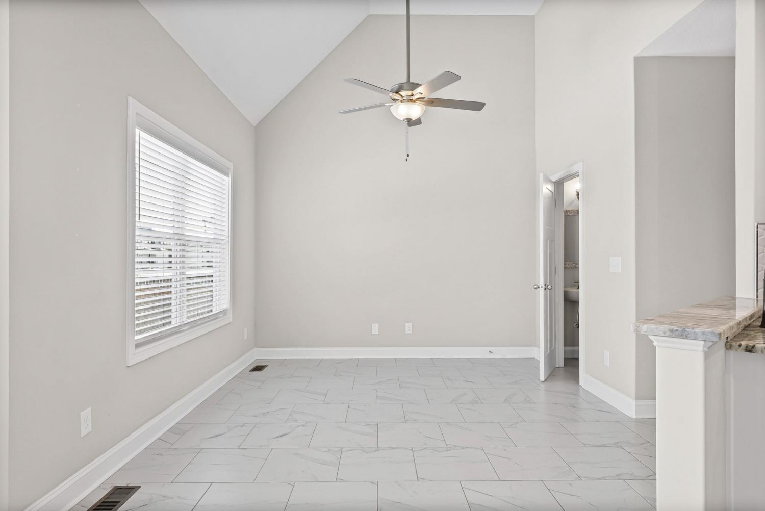 This beautiful 4-bedroom, 2.5-bath home offers a functional layout with plenty of space and stylish features throughout. As you enter, you’re welcomed by soaring vaulted ceilings and an open feel that leads into a formal dining room, perfect for hosting and everyday living. The living room features a cozy gas fireplace (tenant responsible for setup), creating a warm focal point for the home. The kitchen offers elegant marble countertops, ample cabinet space, and an additional dining area ideal for a breakfast table or casual seating. The primary suite is conveniently located on the main level and includes tray-style ceilings, dual vanities, a standing shower, and a large walk-in closet. Upstairs, you’ll find spacious secondary bedrooms, each equipped with ceiling fans for added comfort, along with a large bonus room that provides flexible space for a media room, office, or play area. Enjoy outdoor living with a covered back porch overlooking the backyard. Perfect for relaxing or entertaining. Located just minutes from Fort Campbell Military Base, this home offers both comfort and convenience in a desirable location. Schedule your showing today!