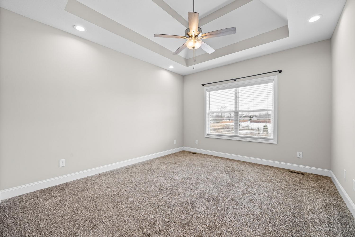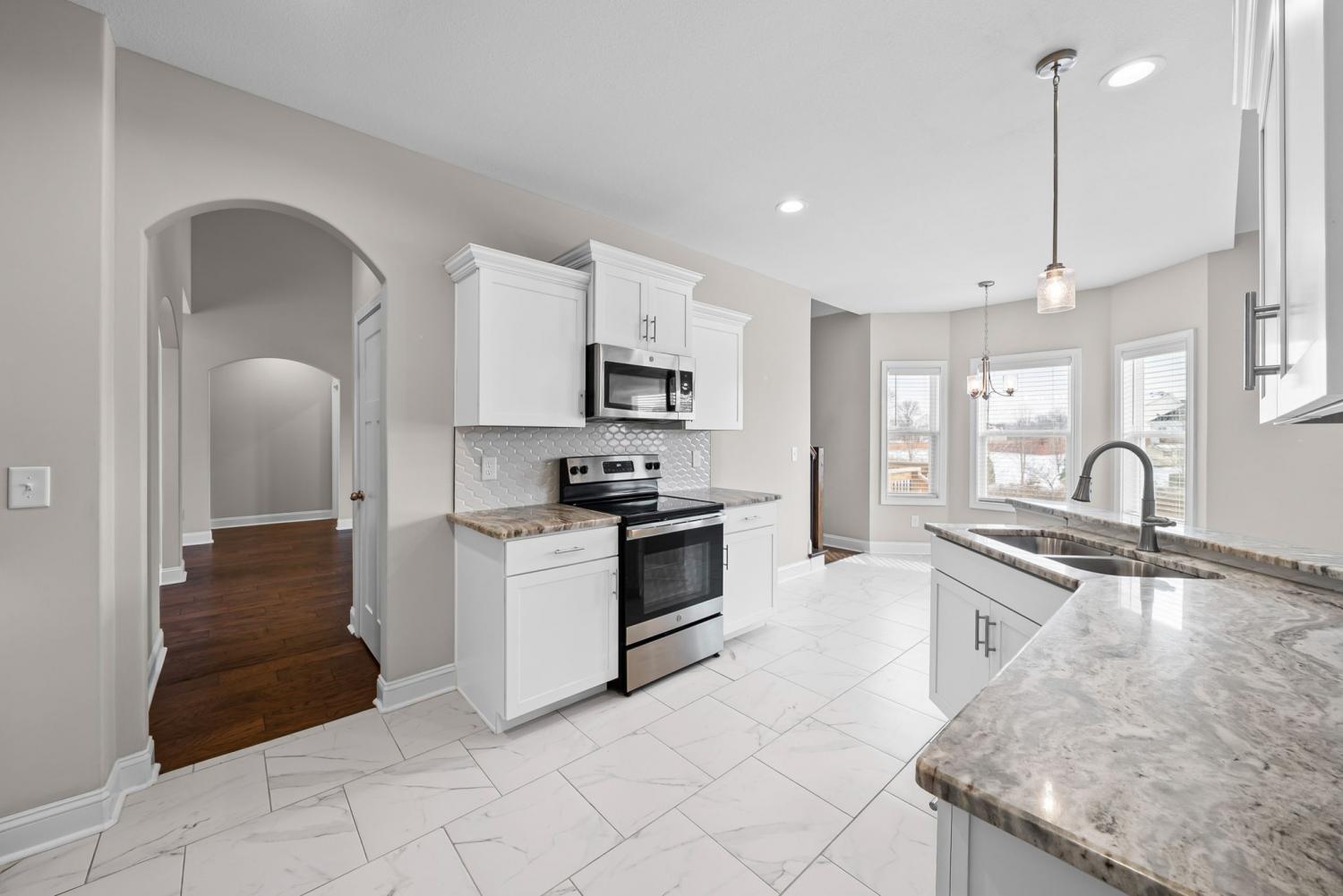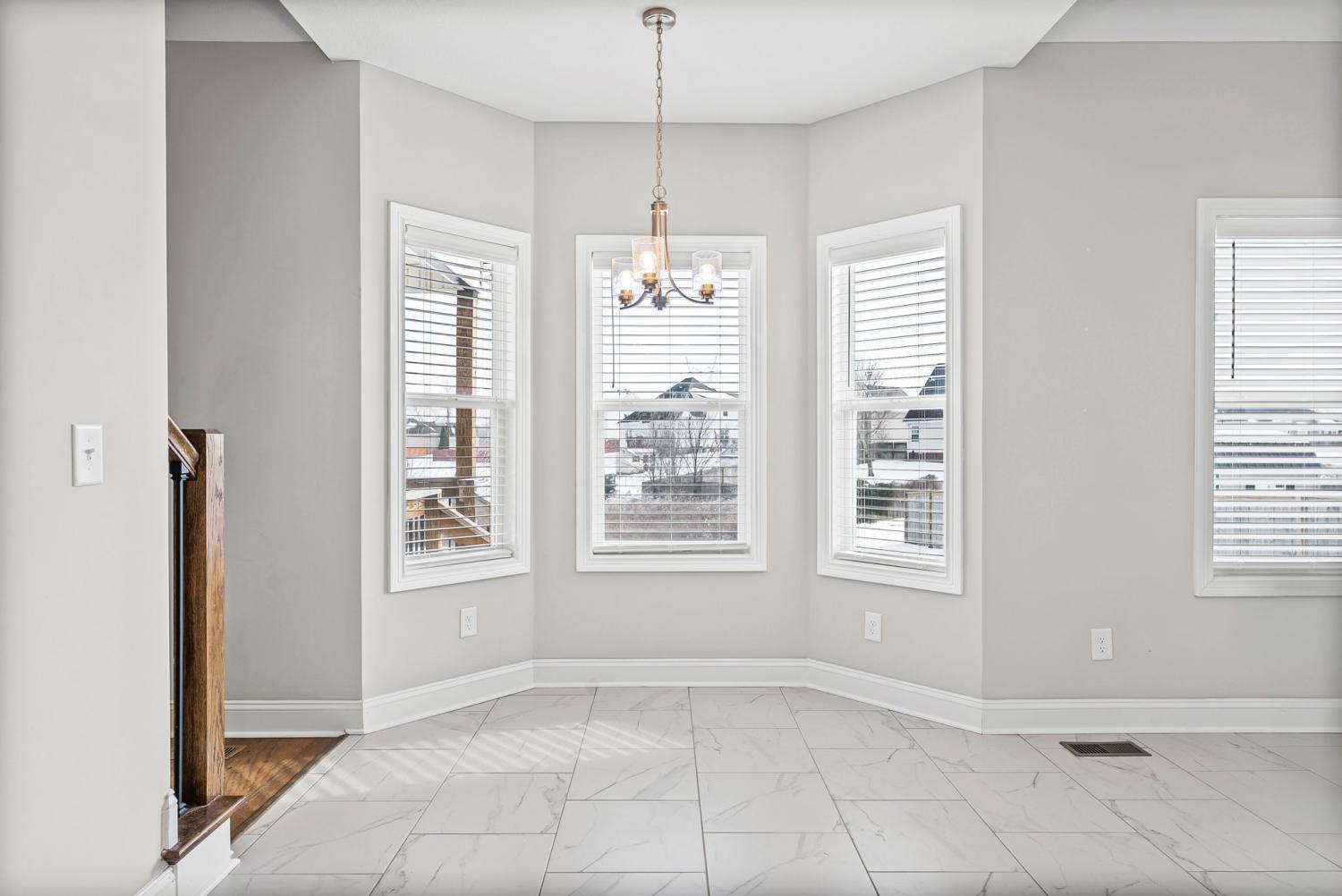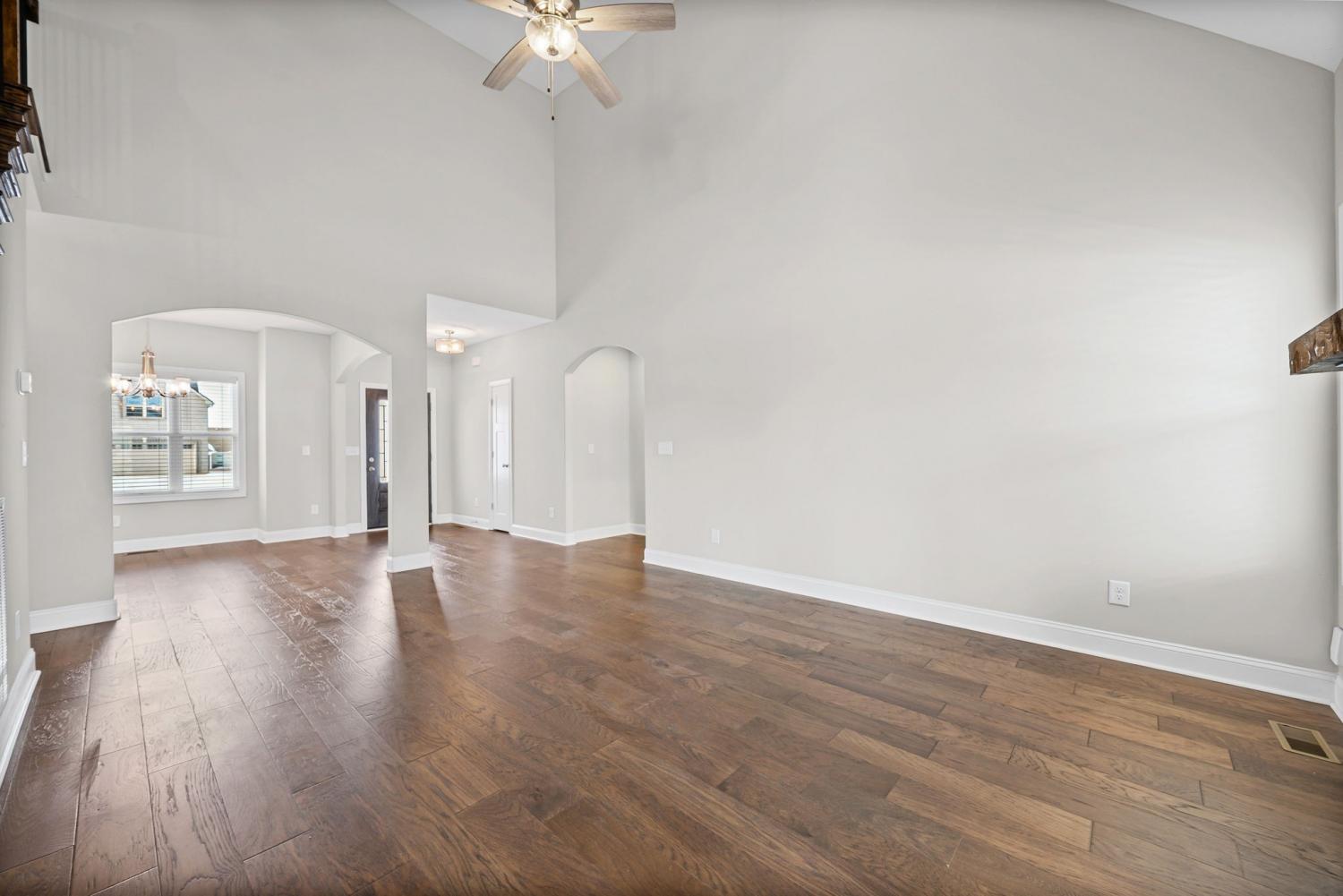 This beautiful 4-bedroom, 2.5-bath home offers a functional layout with plenty of space and stylish features throughout. As you enter, you’re welcomed by soaring vaulted ceilings and an open feel that leads into a formal dining room, perfect for hosting and everyday living. The living room features a cozy gas fireplace (tenant responsible for setup), creating a warm focal point for the home. The kitchen offers elegant marble countertops, ample cabinet space, and an additional dining area ideal for a breakfast table or casual seating. The primary suite is conveniently located on the main level and includes tray-style ceilings, dual vanities, a standing shower, and a large walk-in closet. Upstairs, you’ll find spacious secondary bedrooms, each equipped with ceiling fans for added comfort, along with a large bonus room that provides flexible space for a media room, office, or play area. Enjoy outdoor living with a covered back porch overlooking the backyard. Perfect for relaxing or entertaining. Located just minutes from Fort Campbell Military Base, this home offers both comfort and convenience in a desirable location. Schedule your showing today!