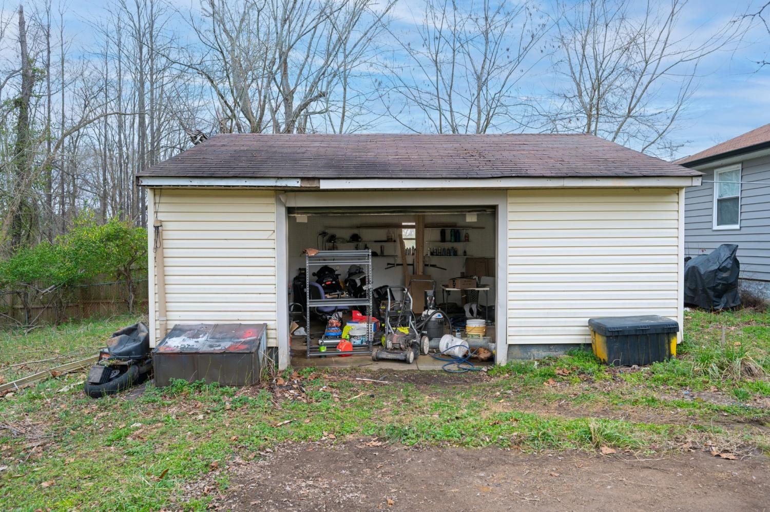Charming and move-in ready! This 3-bedroom, 1-bath home offers 1,040 square feet of comfortable living space on a level 0.21-acre lot. Enjoy the convenience of a detached 1-car garage with additional storage space — perfect for tools, hobbies, or extra belongings. With no HOA, you’ll have the freedom to truly make this property your own. Ideally located near schools, shopping, and dining, and just minutes from Cole Park Golf Course, Heritage Park Sports Complex, the Clarksville Greenway, and more. A wonderful opportunity in a convenient location!