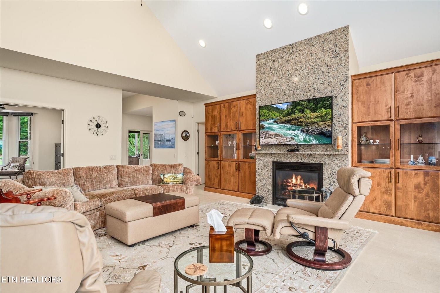 This elegant retreat in The Bluffs was built to celebrate the viewand your life within it. Set on 1.55 private acres, this custom-built retreat offers stunning views, striking architecture, and single-level living with style and substance. The thoughtfully designed layout features 4 bedrooms, 2 full baths, and 2 half baths, with both casual and formal living spaces that flow effortlessly for entertaining or everyday comfort. From the moment you walk in, you're greeted by soaring ceilings and a wall of windows that invite the outdoors in, while the show-stopping floor-to-ceiling granite fireplace anchors the main living space with timeless style. The gourmet kitchen features an oversized granite island, walk-in pantry, and seamless access to the dining area, sunroom, and screened balcony. Enjoy morning coffee from the screened balcony, work from the private office, and retreat to a serene primary suite complete with dual walk-in closets and a spa-style bathroom. There's even a large bonus room with its own half bath upstairs for hobbies, guests, or media space. With a 2.5-car garage, oversized laundry, two dedicated office spaces, and high-end finishes throughout, this home was designed for both function and wow factor. Perfectly positioned among mature trees with a sense of peace and privacythis is elevated living in one of Fairfield Glade's most sought-after settings. https://rem.ax/4ppjVaf Buyer to verify all information before making an informed offer.