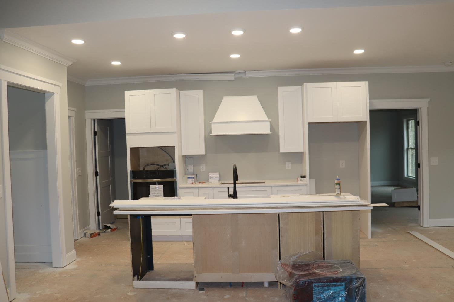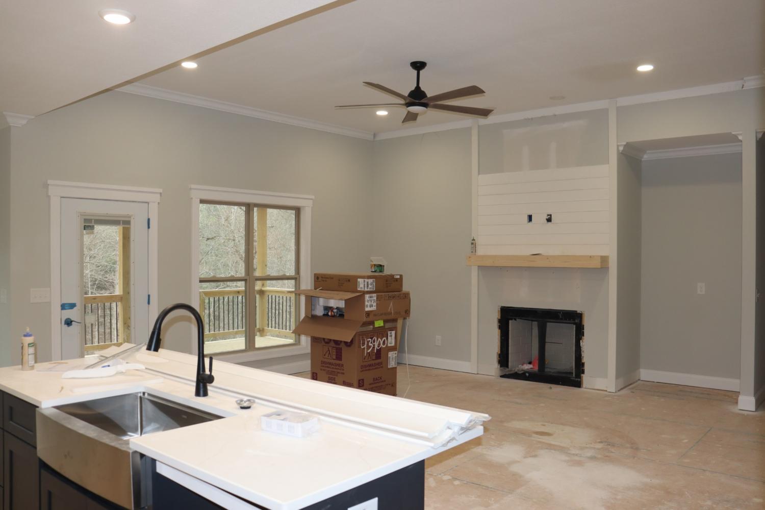 This all-Brick Ranch Home offers 4 Bedrooms, 2 Bathrooms, 2 Car Garage and transfer switch for a generator if the Buyer wants to purchase a generator later. The House sits on 1.4+/- Acres to call your own. This Open Floor plan has high ceilings, an Island, a fireplace & covered Deck overlooking the Backyard. Wood shelves throughout the home. Flooring is LVP in the Kitchen and Living Room, Tile floors in the wet areas & carpet in the Bedrooms. Owners Suite is large with Double Vanities, Tiled Shower, and separate tub. Lots of Canister lights and plenty of natural light from the windows.