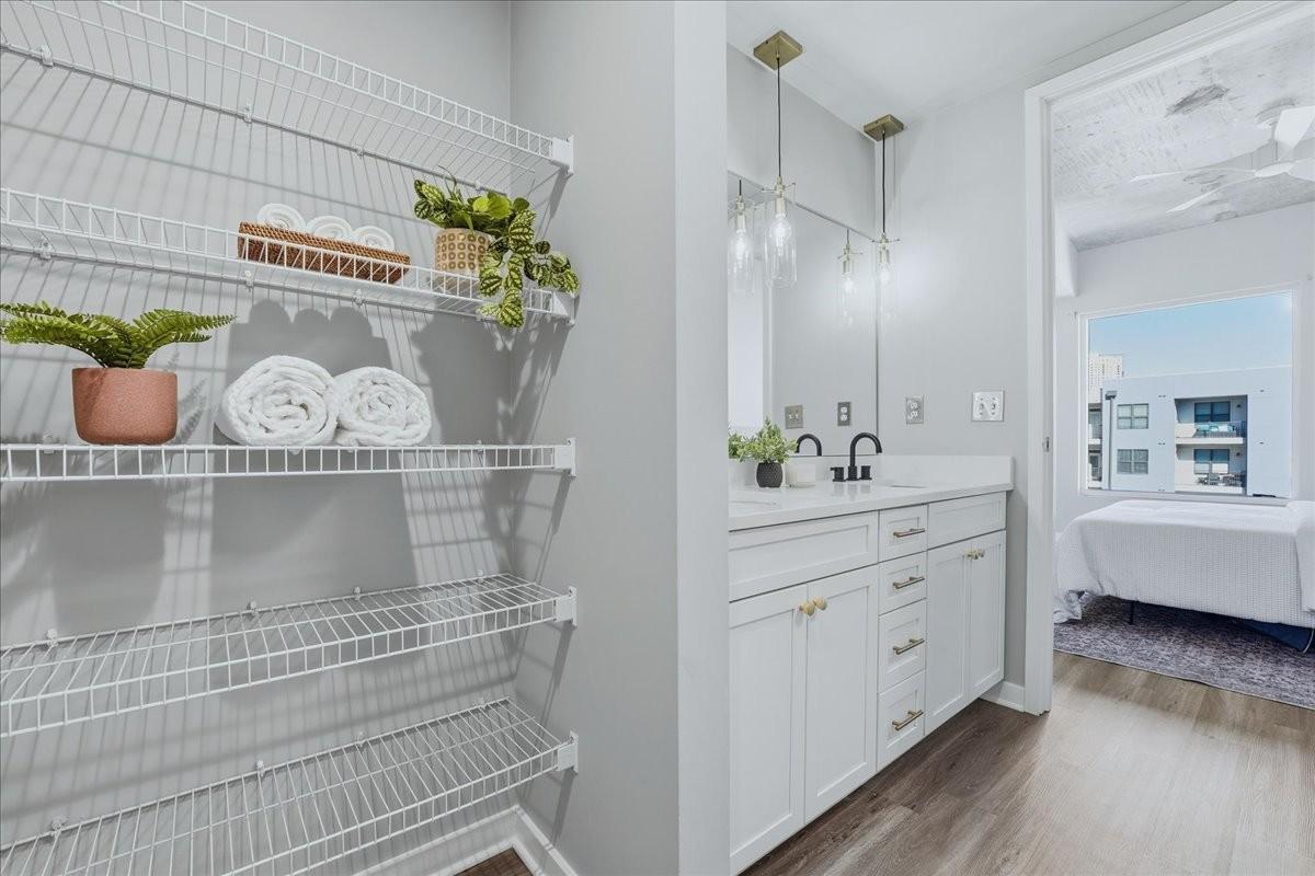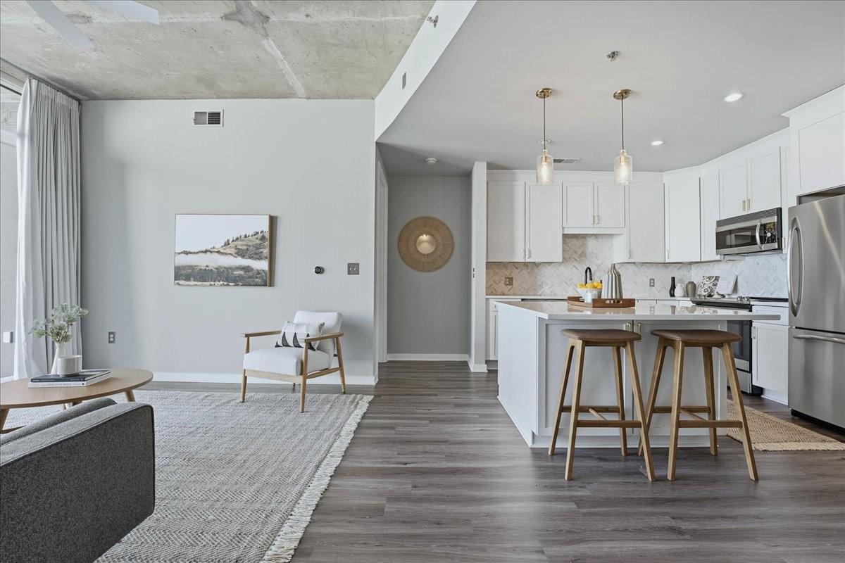 Live, Work, Play in the heart of The Gulch! Renovated 2 bed, 2 bath condo filled with natural light and modern finishes throughout. Beautifully updated kitchen featuring quartz countertops, large island, gold hardware and fixtures, herringbone tile backsplash, and stainless steel appliances. Sleek new floors and oversized windows with courtyard views create a bright, contemporary feel. Spacious primary suite includes renovated bathroom with double vanity and frameless glass tile shower. Generous closet space. Washer and dryer remain. Exceptional amenities include 24/7 concierge, two pools, two fitness centers (newer equipment), and a renovated resident lounge with kitchen, TVs, and gaming areas. Coffee shop connected to the building. Enjoy walkability to The Gulch’s top dining, sports and rooftop bars, shopping, and entertainment. Includes gated parking space #593. Convenient exterior elevator access for guests from 11th Ave. Buyer and buyer’s agent to verify all pertinent information including square footage and school zoning.