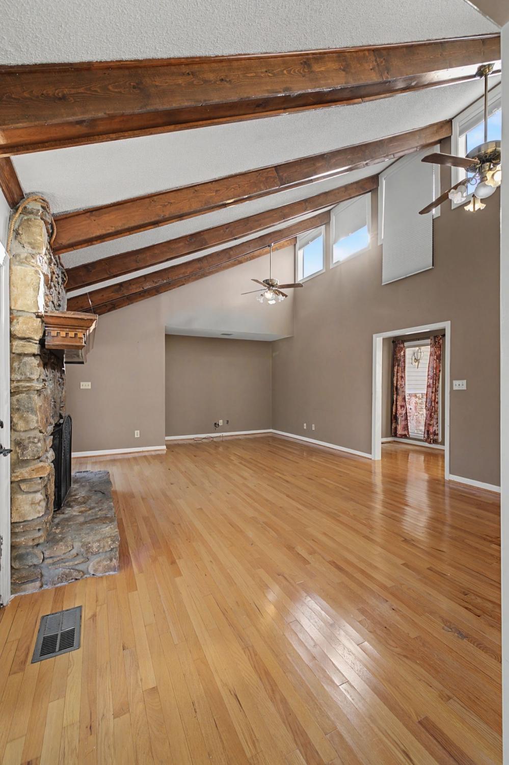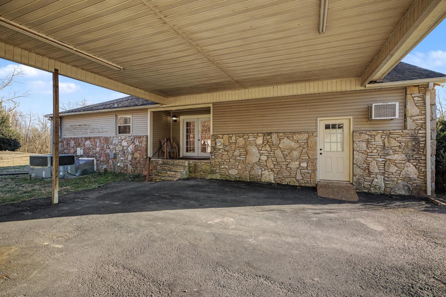 Enjoy peaceful North Columbia country living just minutes from town on this beautiful 5-acre property—perfect for your family, your animals, and your lifestyle. Nestled on the land is a charming stone home offering 3 bedrooms and 2 baths, full of warmth and character. The huge family room features soaring ceilings, exposed wood beams, a cozy stone fireplace, and gorgeous hardwood floors, all opening onto a large deck that overlooks your fully fenced back acreage—ideal for relaxing or entertaining with a view. The kitchen is a dream with cabinets galore, a bright and sunny breakfast room, and seamless flow into the formal dining room. A massive laundry room provides tons of storage and everyday convenience. Spacious rooms continue throughout, including a standout man cave with a wet bar and durable concrete floors—perfect for entertaining, hobbies, or game nights. Outside, you’ll love the 30x40 garage, plus a covered carport that connects the home to the garage for easy, weather-protected access. Mature blueberry bushes add a sweet touch of charm right in the front beds, rounding out this incredible property that blends country serenity with city convenience.