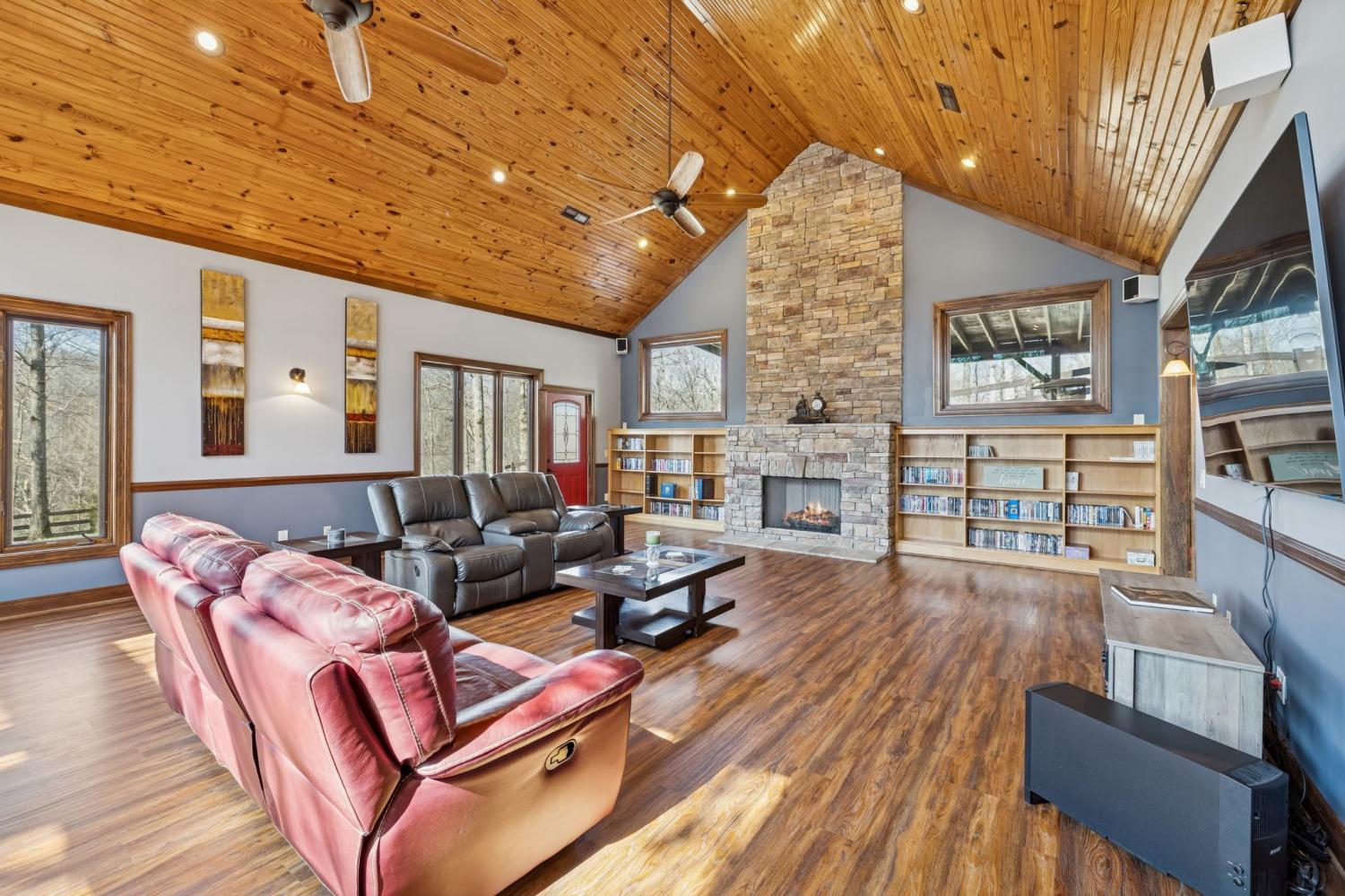 “One-of-a-Kind” Custom Hilltop Hideaway – 3,980 SF | 4 Bedrooms welcome you to a truly exceptional custom-built retreat - tucked away on a scenic and secluded 4.28-acre hilltop setting, yet conveniently located just minutes from Hwy 100. Designed with comfort, craftsmanship, and energy efficiency in mind, this "4,580 sq ft total under-roof" home offers a rare combination of privacy, elegance, and functionality. From the moment you enter, the home makes a statement with a true GREAT Room featuring an 18’ ceiling, stunning pine tongue-and-groove ceiling detail, and a beautiful Majestic Hearth stone fireplace. Ten-foot ceilings throughout the main level and a 12’ ceiling in the Ultimate Primary Suite create a spacious, open feel rarely found in today’s homes. The heart of the home showcases WeberBilt custom solid maple and cherry cabinetry, granite countertops, a Butler’s Pantry, and quality craftsmanship throughout - including solid poplar doors & trim package. Casement insulated windows invite natural light while enhancing energy efficiency. The Ultimate Primary Suite offers a peaceful retreat with generous proportions, pine T&G ceiling, and HUGE closets with abundant storage. Upstairs, matching bedrooms feature Jack ‘n Jill baths, a convenient upper-level laundry room, and a large seasonal storage closet. The main level includes an Office/Guest Suite and a 10’ ceiling with high speed fiber internet for those that work from home. Exercise/Game Room with mirrored wall. Built for long-term efficiency and durability: 2x6 Exterior Wall Construction Icynene Spray Foam & Blown Cellulose Insulation - Dual Fuel HVAC and Two-Zoned Hot Water Heaters “Family-Friends-Pet Friendly” with thoughtful indoor and outdoor living spaces, Covered Patio, Hot Tub, Fenced Side Yard and a 12’ x 40’ Workshop with power - perfect for a workshop or getaway, Concrete Drive & Parking Area, 2-Car Garage - finished, Insulated & roughed in duct ready, complete with sink.