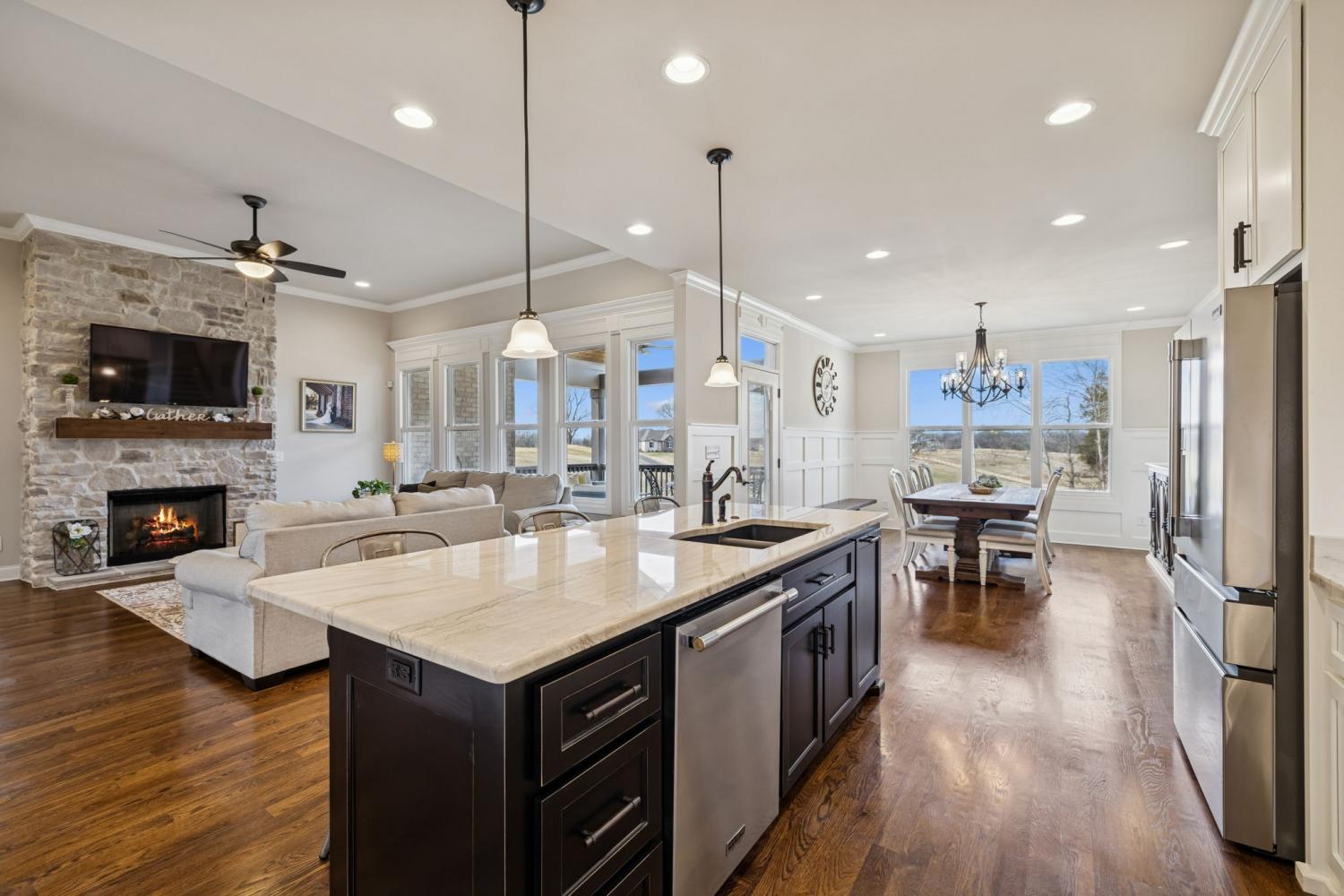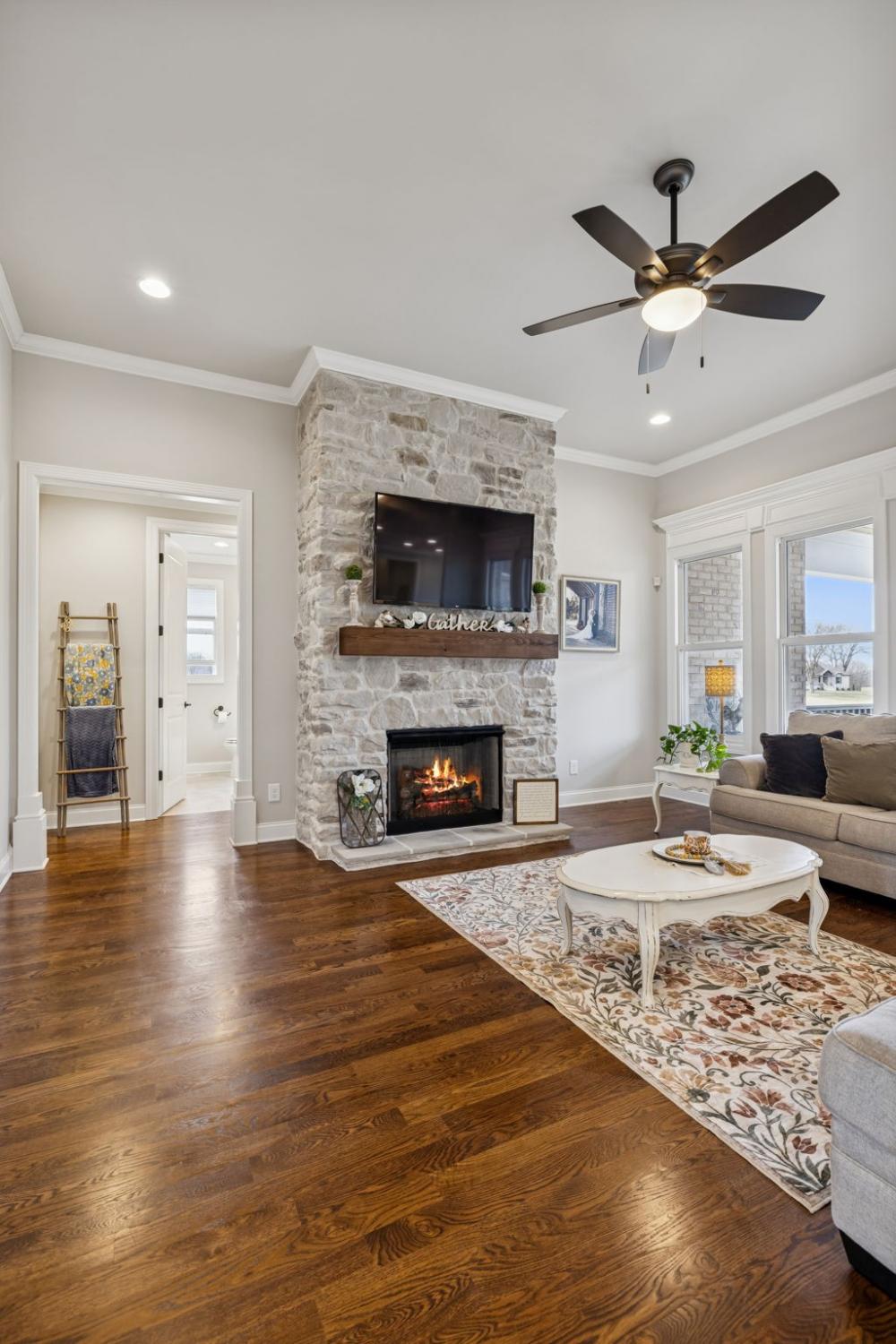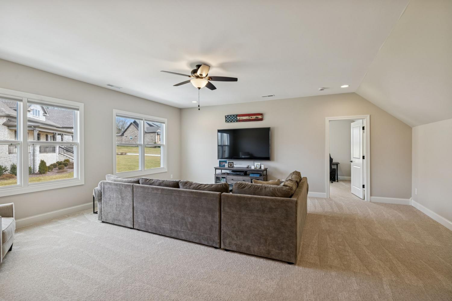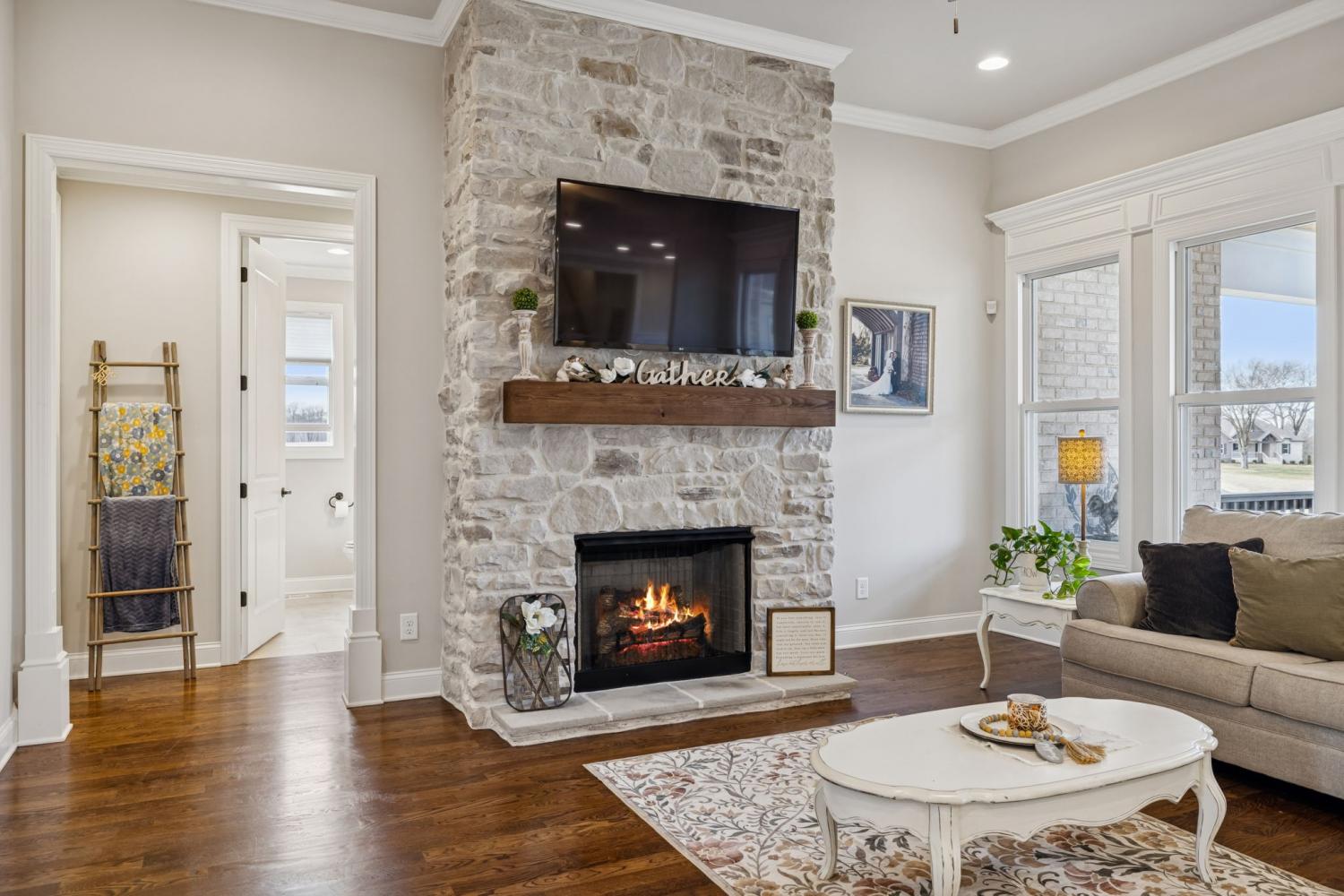 DESIGN! QUALITY! SETTING! This one year old all-brick home situated on a 1.07-acre cul-de-sac lot in the desirable Sharp Manor community of Spring Hill. This thoughtfully designed home offers 3,323 square feet of quality craftsmanship and functional living space. The open concept main level features site-finished hardwood floors, custom cabinetry, and gorgeous finishes throughout. The kitchen is a standout with granite countertops, quality appliances, and a massive walk-in pantry, opening seamlessly to the living area with a cozy fireplace perfect for entertaining. The primary suite is located on the main level and features a spa-like bath with double granite vanities, a separate tub and shower, and a spacious walk-in closet. Two additional main-level bedrooms offer flexibility, with one currently set up as a home office. A formal dining room adds elegance and versatility. Upstairs includes a large bonus room and full bath. You will also find 2 additional rooms with large closets that can be used as bedrooms. This home feels like a 5 bedroom home!. Outdoor living is enhanced by a covered porch and patio overlooking the fenced-in yard, providing privacy while maintaining the openness of the expansive lot. The extra long driveway is ideal for entertaining. Additional features include a 3-car side-load garage, tankless water heater, and a climatized, encapsulated crawl space with dehumidifier. Recent upgrades include a new whole house water filtration system and a security and fire alarm system. Located in a new one-acre-lot community with underground utilities, and a 12 point smart irrigation system. Zoned for Battle Creek schools. A perfect blend of space, comfort, and modern construction in one of Spring Hill’s fastest-growing areas. Make plans to see this beautiful home while you have the opportunity!
