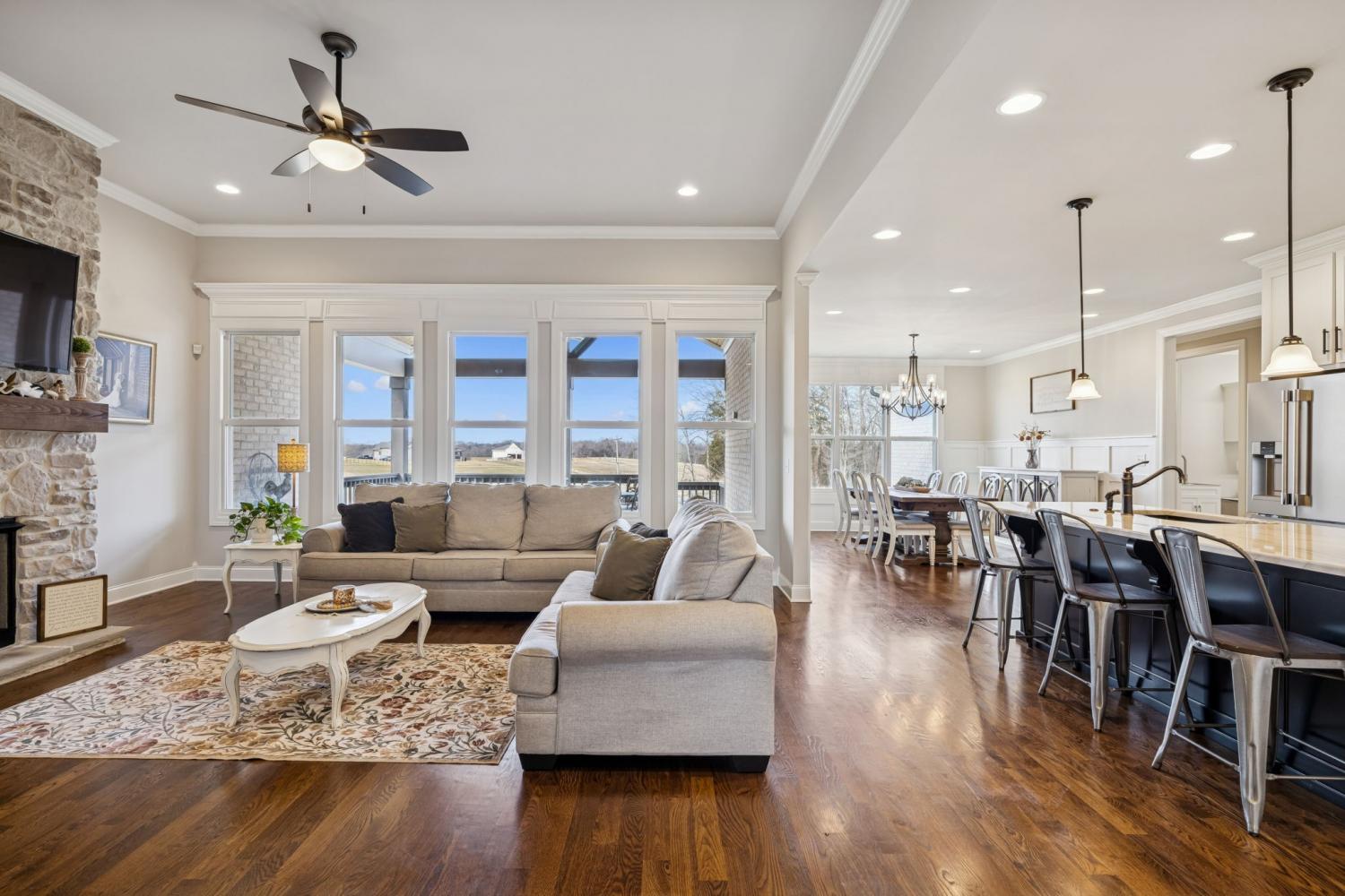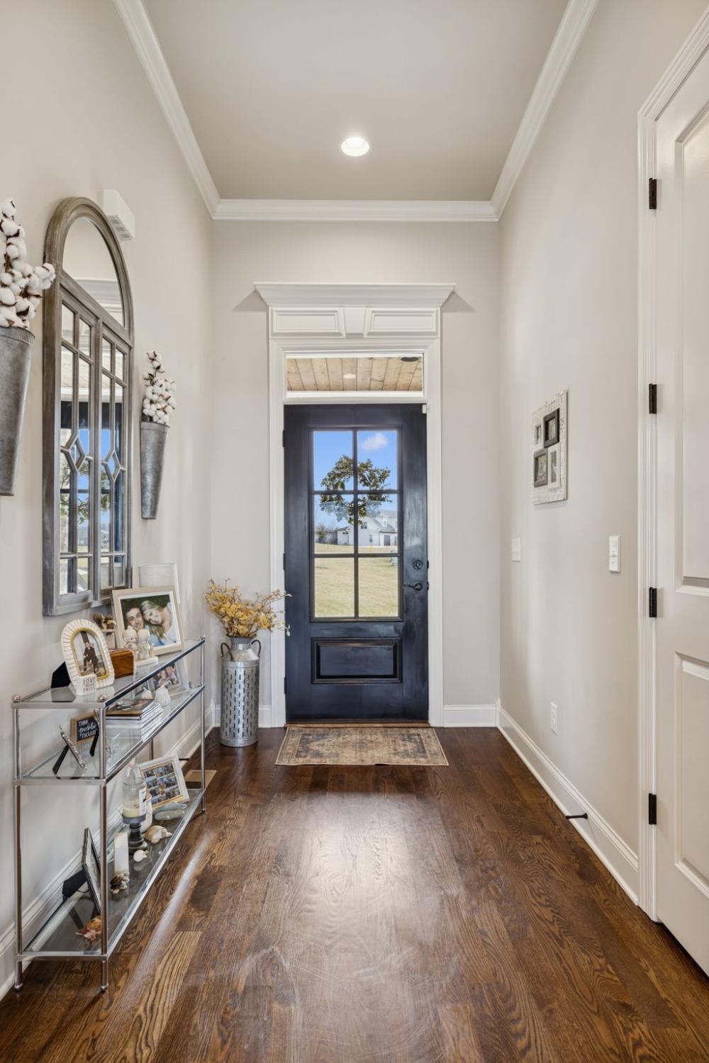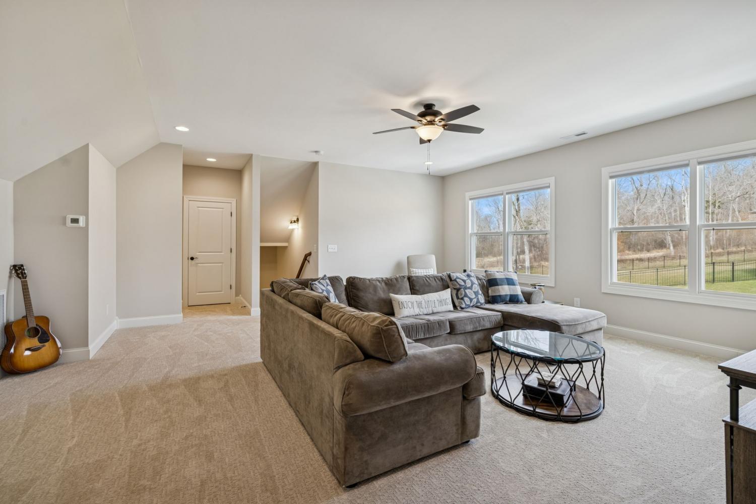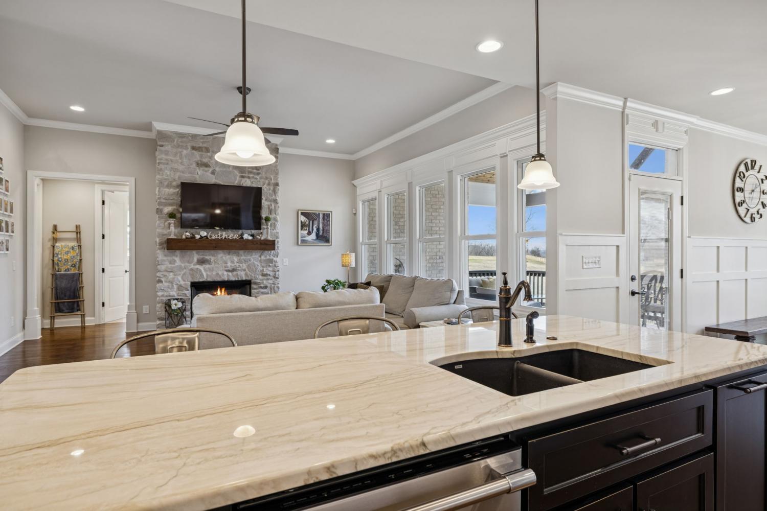 DESIGN! QUALITY! SETTING! This one year old all-brick home situated on a 1.07-acre cul-de-sac lot in the desirable Sharp Manor community of Spring Hill. This thoughtfully designed home offers 3,323 square feet of quality craftsmanship and functional living space. The open concept main level features site-finished hardwood floors, custom cabinetry, and gorgeous finishes throughout. The kitchen is a standout with granite countertops, quality appliances, and a massive walk-in pantry, opening seamlessly to the living area with a cozy fireplace perfect for entertaining. The primary suite is located on the main level and features a spa-like bath with double granite vanities, a separate tub and shower, and a spacious walk-in closet. Two additional main-level bedrooms offer flexibility, with one currently set up as a home office. A formal dining room adds elegance and versatility. Upstairs includes a large bonus room and full bath. You will also find 2 additional rooms with large closets that can be used as bedrooms. This home feels like a 5 bedroom home!. Outdoor living is enhanced by a covered porch and patio overlooking the fenced-in yard, providing privacy while maintaining the openness of the expansive lot. The extra long driveway is ideal for entertaining. Additional features include a 3-car side-load garage, tankless water heater, and a climatized, encapsulated crawl space with dehumidifier. Recent upgrades include a new whole house water filtration system and a security and fire alarm system. Located in a new one-acre-lot community with underground utilities, and a 12 point smart irrigation system. Zoned for Battle Creek schools. A perfect blend of space, comfort, and modern construction in one of Spring Hill’s fastest-growing areas. Make plans to see this beautiful home while you have the opportunity!