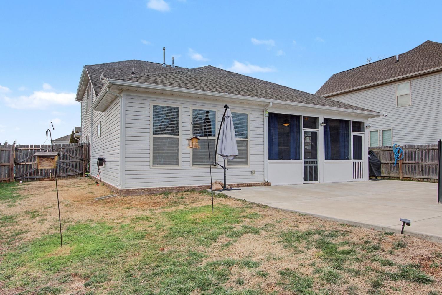 Beautiful 4 BR, 2.5 BA home featuring an open floor concept designed for both everyday living and effortless entertaining. A stunning 2-story foyer welcomes you in, while abundant windows fill the home with incredible natural light. The living room boasts soaring 10 ft ceilings and a gorgeous stone fireplace that anchors the space perfectly. The primary suite is conveniently located on the main level and offers a luxurious tile shower and a 10x7 walk-in closet. Upstairs you’ll find a large bonus room plus three spacious bedrooms — all with generous closet space throughout. The kitchen is made for gathering with granite countertops, breakfast bar seating, and a large dining area. Step outside to your screened-in back porch complete with a wood-burning fireplace — the perfect spot to unwind year-round. The fenced backyard and in-ground pool create a true outdoor oasis ideal for entertaining or relaxing with family and friends. Located in a quiet sidewalk community just minutes from grocery stores, dining, shopping, and interstate access — this home offers the perfect blend of comfort, convenience, and lifestyle.