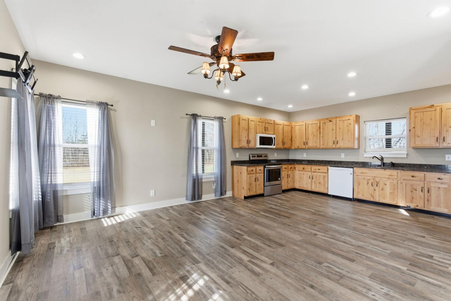 Beautiful custom-built home nestled on 5+ private acres, offering the perfect blend of space, functionality, and convenience. A welcoming covered porch wraps around three sides of the home—ideal for enjoying peaceful country views in every direction. Durable metal roof adds both character and long-term value. The oversized 3-car garage provides exceptional space for a boat, zero-turn mower, and all your recreational equipment—with plenty of additional storage throughout the home. The kitchen features abundant cabinetry, granite countertops, and a pantry for added convenience. Expansive windows throughout flood the home with natural light, creating a bright and inviting atmosphere. Enjoy the tranquility of acreage living while remaining just 5 minutes to the interstate and approximately 25 minutes to Nashville.