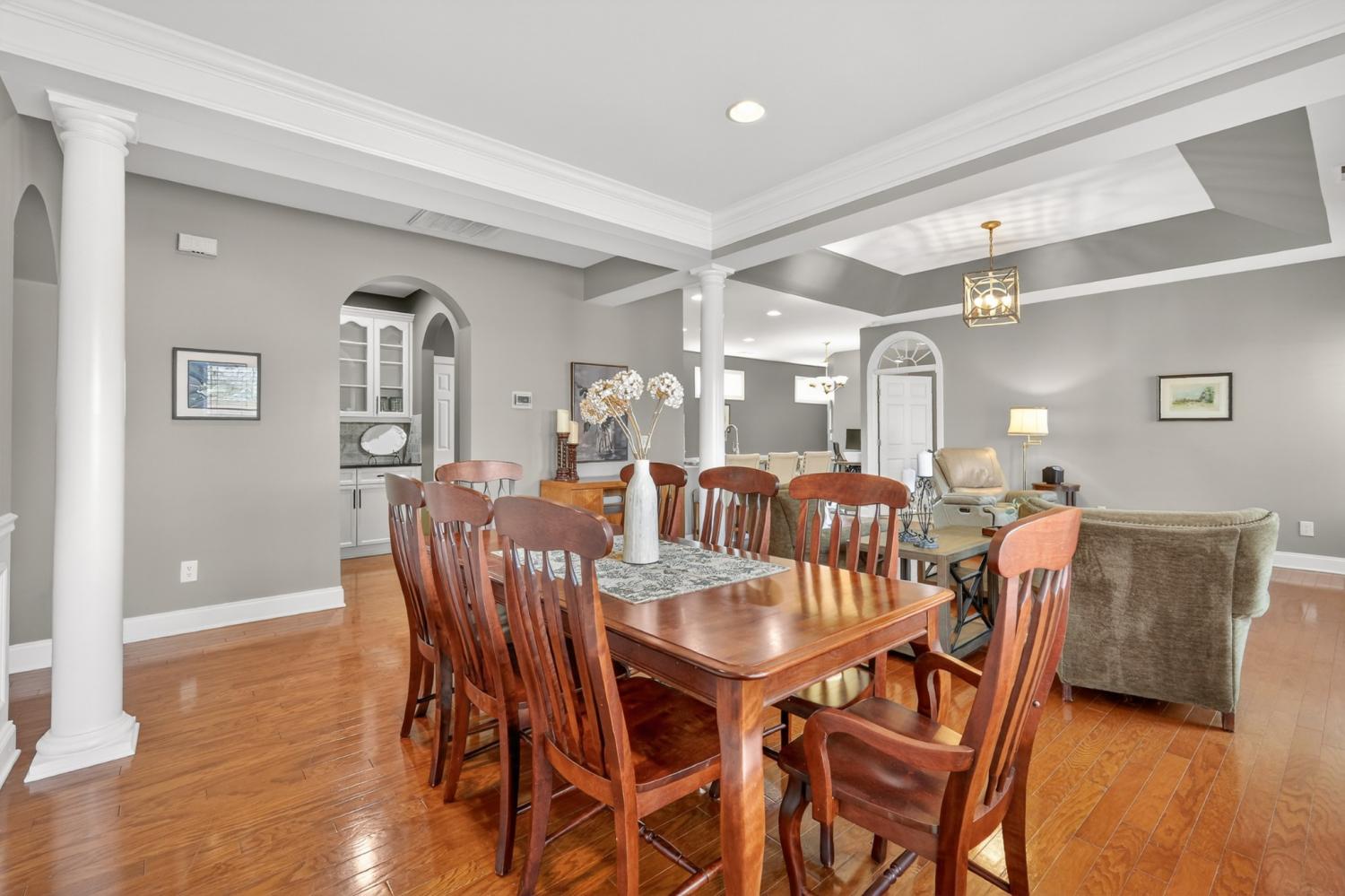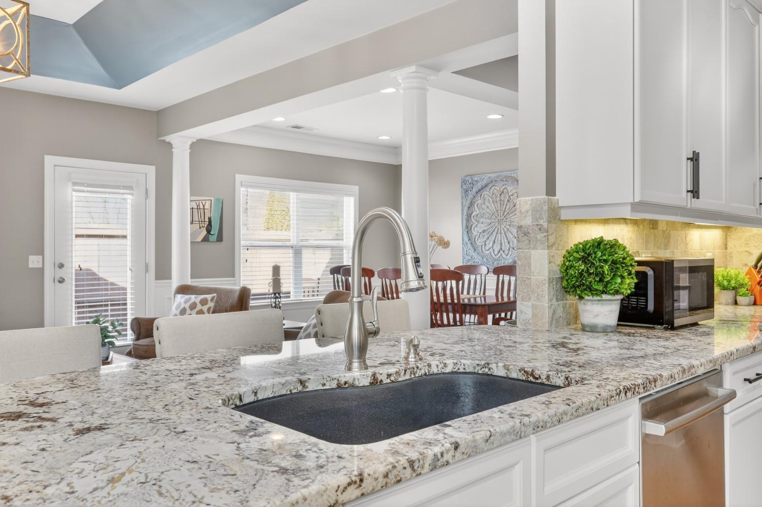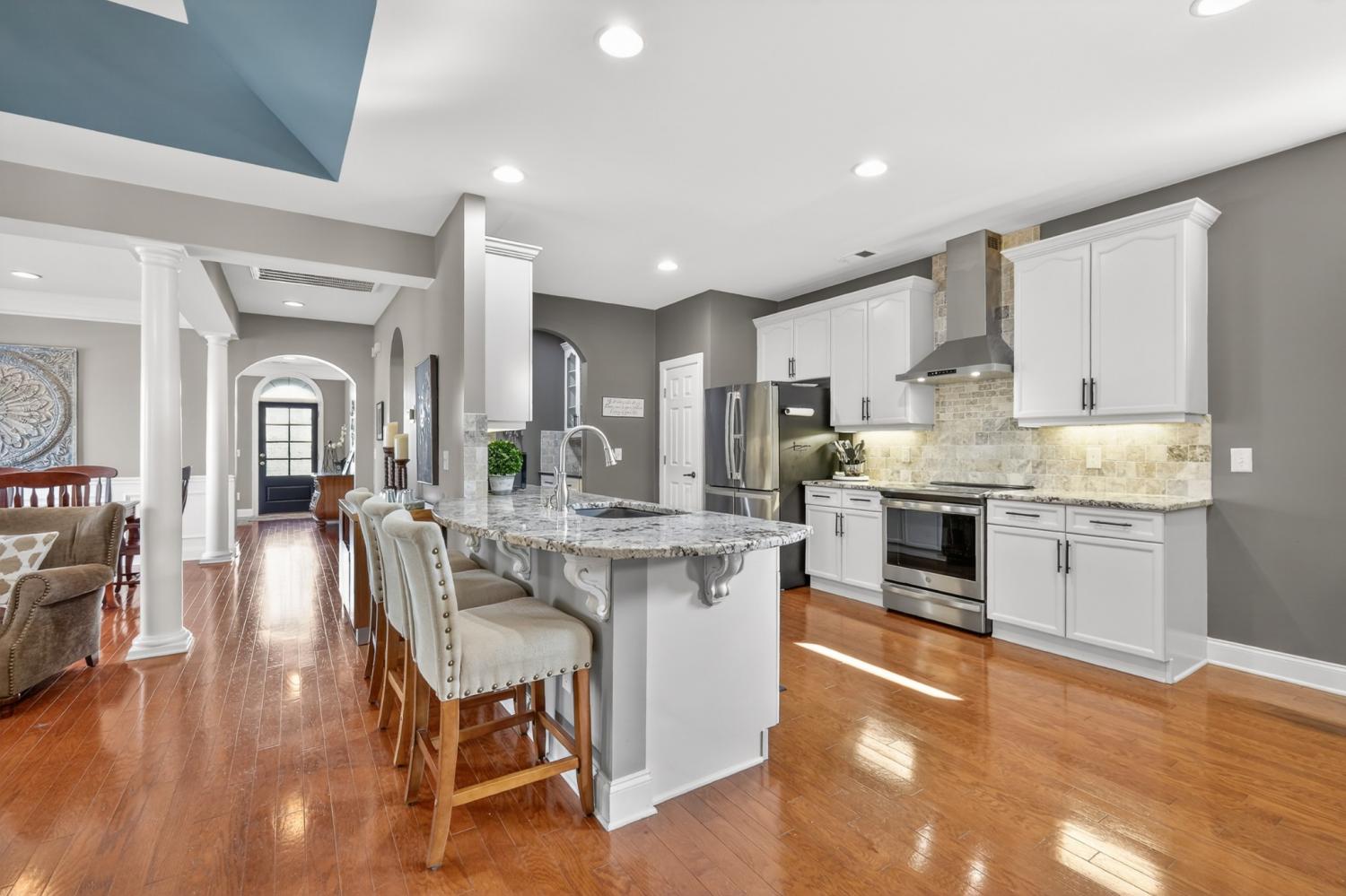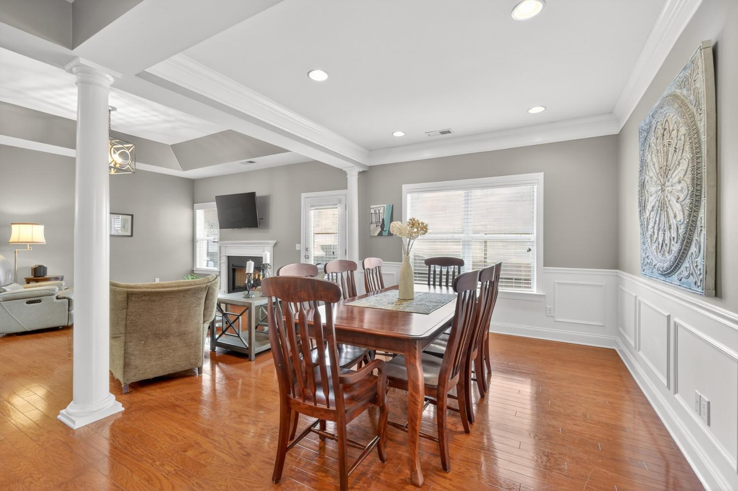 Refined one-story living in the gated Village of Providence, positioned on a premium corner lot directly across from a community park. This beautifully maintained 1,990 sq ft brick home blends timeless design, modern upgrades, and exceptional convenience. Hardwood flooring flows through the main living areas into a bright, elegant kitchen featuring white cabinetry, granite countertops, stainless steel appliances, a new refrigerator and stove, and a Bosch dishwasher. The home offers two spacious bedrooms and two beautifully updated bathrooms with honed quartz countertops, new lighting, and modern fixtures, while the owner’s suite is enhanced by a custom closet shelving system. The two gas fireplaces w/ remotes create inviting living spaces ideal for both comfort and entertaining. Additional highlights include a 2024 water heater and an oversized garage with space for a workshop and storage. HOA-maintained lawn care provides true low-maintenance living. The location is exceptional: just steps from Providence Mall, approximately one mile to I-40, and minutes from Nashville International Airport and everyday conveniences. This home offers a rare blend of privacy, green space, elegance, and accessibility in one of Mt. Juliet’s most desirable gated communities.