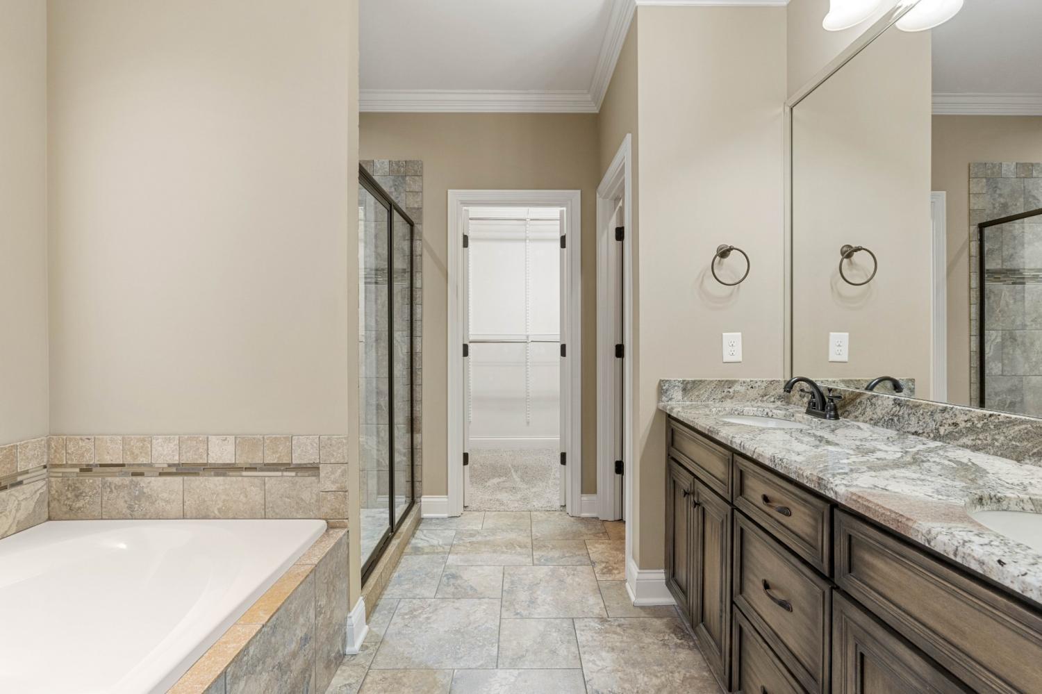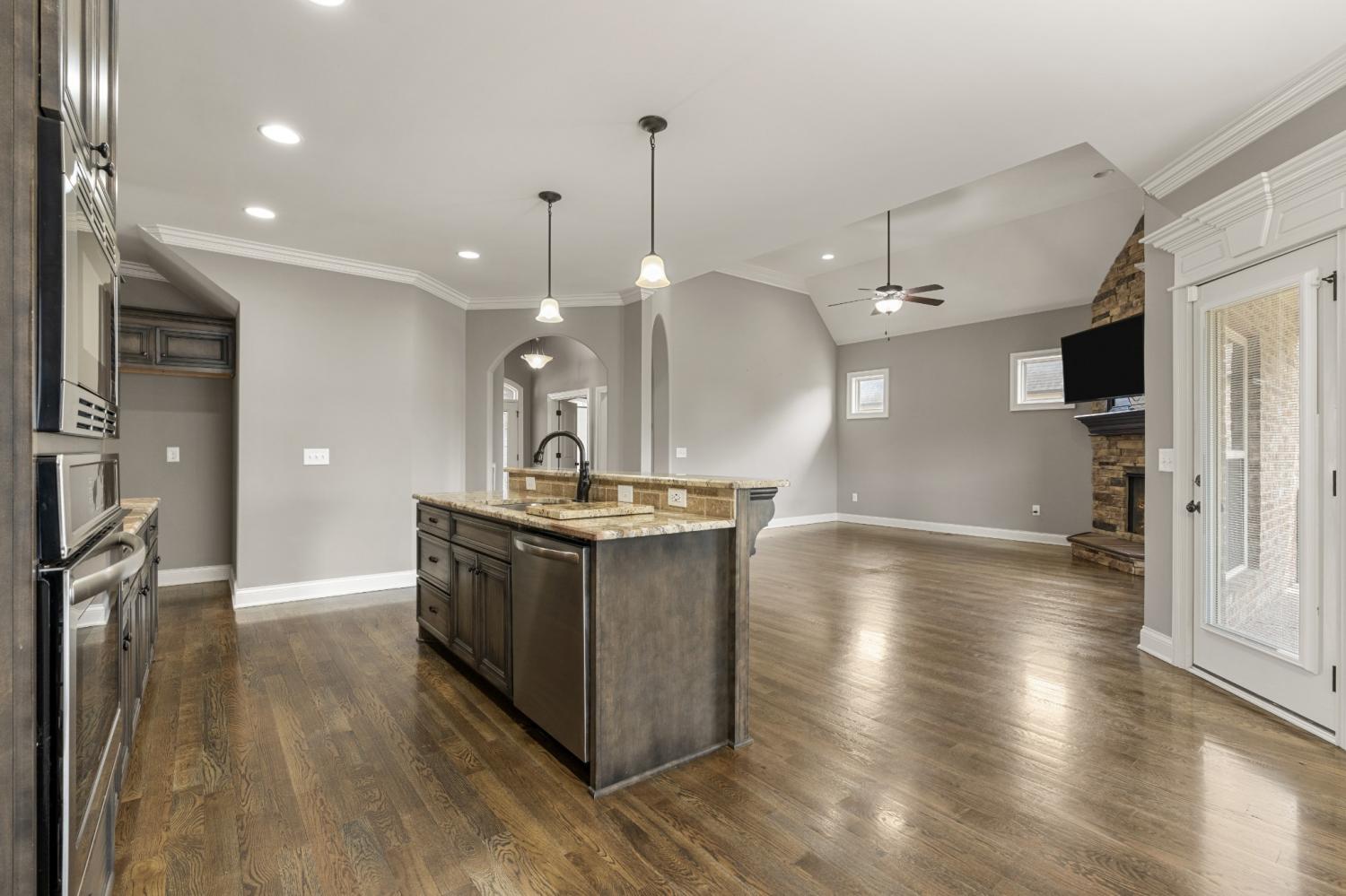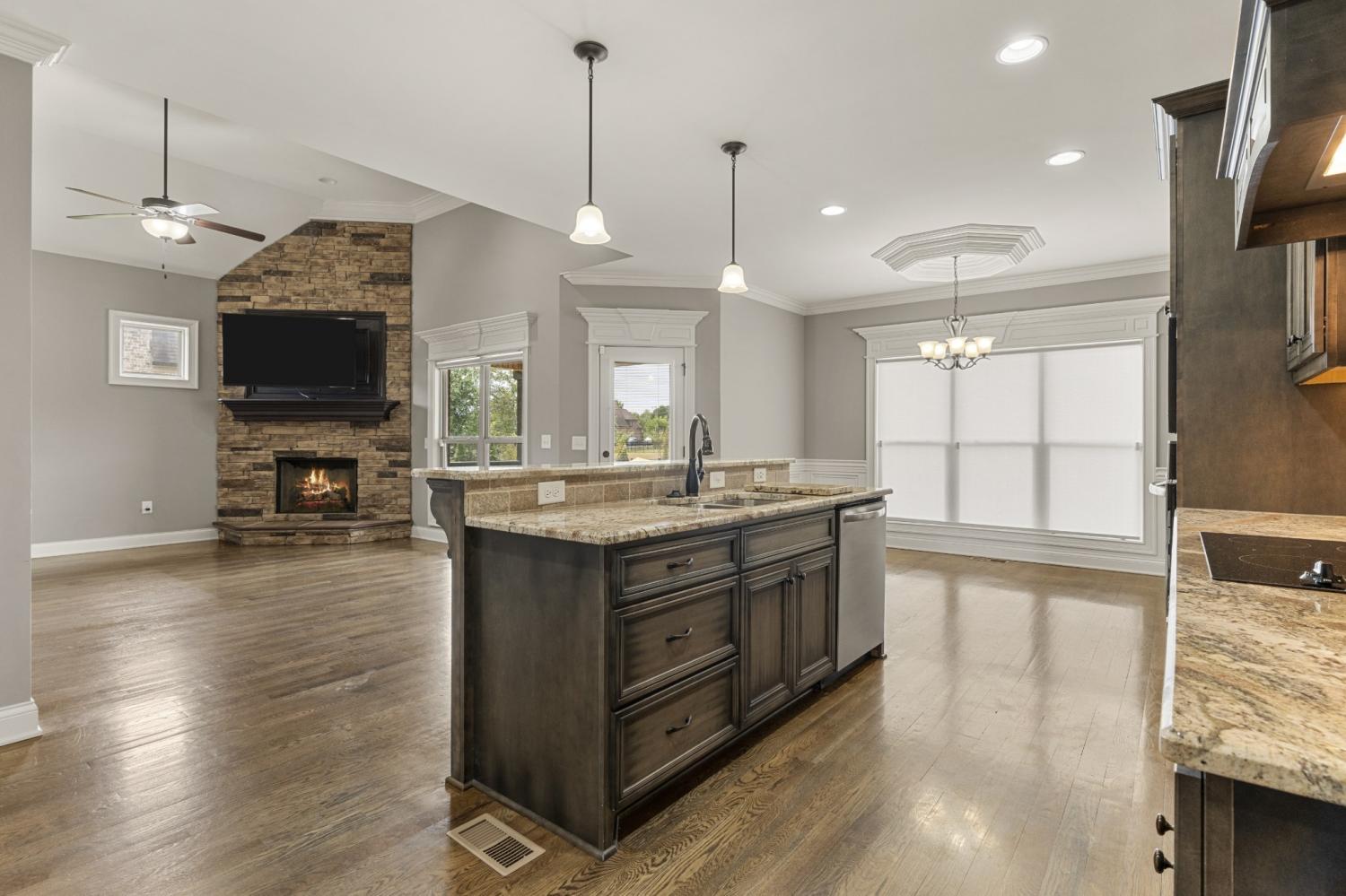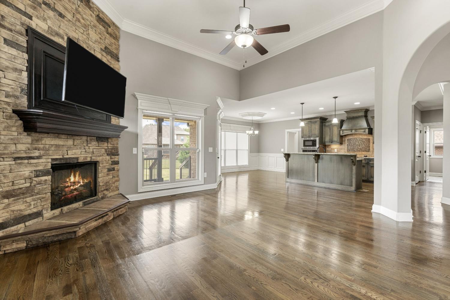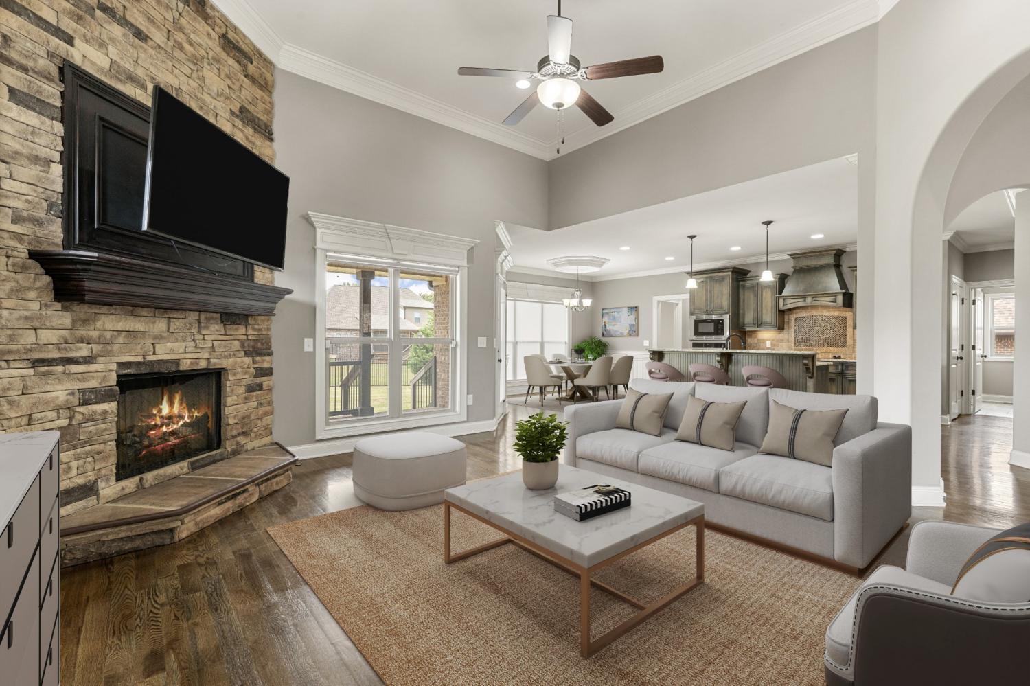 Located in the coveted Blackberry Trace neighborhood, this “Harrison” plan by Eastland Construction combines quality construction, extensive space, and zoning for Wilson County schools. This 4-bed, 3-bath, nearly 3,000 sqft home has the highly sought-after convenience of two bedrooms on the main floor. The secondary main-level bedroom would make a great private home office. Blackberry Trace is a quiet, 64-home community with a peaceful country setting and convenience to popular locations in the Greater Nashville area. The property is just 20 min from Lebanon, Mt. Juliet, and Gallatin, 30 min to BNA, and less than 15 min from grocery stores, restaurants, shopping, and boat ramps for convenient access to Old Hickory Lake. Inside, the quality craftsmanship is evident: The main floor has 3/4-inch oak hardwood flooring, complemented by extensive tulip poplar millwork, including crown molding, baseboards, and wainscoting. The living room features a stacked-stone, gas fireplace. The kitchen has custom maple cabinets, granite countertops, a large pantry, and stainless-steel appliances. The adjacent laundry room offers generous space for secondary pantry storage. The property includes extensive garage space suitable for vehicles, hobbies, or a workshop: There is an attached 34'x21' three-car, side-entry garage and a separate 37'x14' detached garage with a 12-ft ceiling and a 10-ft door. The dividing wall in the detached garage is not load-bearing, allowing for future simple modification to create a single, deeper bay suitable for a boat, small RV, or travel trailer. Upstairs, the home features an extra-large bonus room wired for surround sound, along with two spacious secondary bedrooms, both with walk-in closets. Other key features include a fully encapsulated and conditioned crawl space and an architectural shingle roof. The level lot includes a Rainbird irrigation system and a covered patio. Check out the included property video.