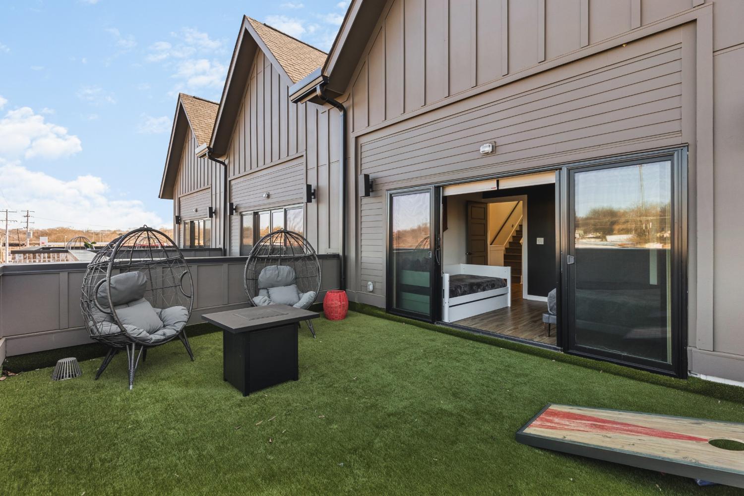 Walkable East Nashville 4 bedroom investment with $50,0000 in FUTURE BOOKINGS + XL rooftop that you can see the downtown skyline. Sleeps 12 guests! Highlight features include: two car attached garage, sold fully furnished, an operating & cash-flowing NOO STR, bed/bath parody, located steps across from Highland Yards, brick exterior, newly painted, rooftop fire-pit, Guest favorite AirBnB! An extra wide kitchen island can seat a party of twelve. Professionally decorated and themed "Rock N Roll", this house knows how to welcome a crowd to Music City. Just 10 minutes to downtown, and directly across the street from Highland Yards - where guests can grab a coffee or pastry at Flora + Fauna, a Japanese inspired lunch at the renowned Kisser restaurant, a workout at SHED, hapy hour at Golden Pony, or enjoy the day relaxing at the Holiday Bath House - location is prime. A cozy fireplace on the rooftop is the perfect place to catch the sunset over the city skyline to end the day...or begin the night. Sold as an LLC Purchase to keep the short term rental in place with ease of continuous booking - no gaps in scheduling.