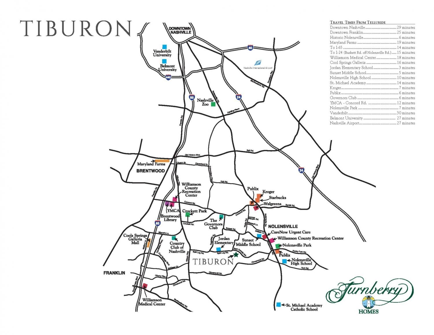 GPS: 9813 Sam Donald Rd, Brentwood TN 37027 — From I-65:Take Exit 71-TN 253-Concord Rd East for 4.3 miles to (R) on Sunset Rd at the light past Governor's Club for 2.2 Miles to (R) on Split Log for 1mile to (L) on Sam Donald. Tiburon on (R) .2 Mile
