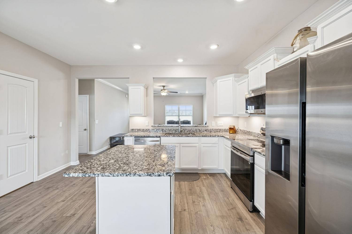 501 Ruby Cate Way offers one of the strongest combinations of lot size, layout, and upgrades in its neighborhood — situated on the largest lot in the community. This 3-bedroom, 2.5-bath home features laminate flooring throughout the main-level living areas and a highly desirable primary suite on the main floor — a layout many buyers in this price range are actively seeking. The kitchen stands out with white cabinetry, granite countertops, a center island, and stainless steel appliances, with the refrigerator included — making this home truly move-in ready. Upstairs offers spacious secondary bedrooms plus a generously sized bonus room that can easily function as a 4th bedroom, office, playroom, or media space — providing flexibility and long-term value. Step outside to a covered back porch overlooking the oversized yard — a rare find that sets this property apart from others in the neighborhood. Conveniently located near elementary and middle schools, this home delivers space, location, and functionality at a compelling price point. If you’re looking for yard space, primary-on-main living, and flexible square footage in Murfreesboro — this one deserves your attention.