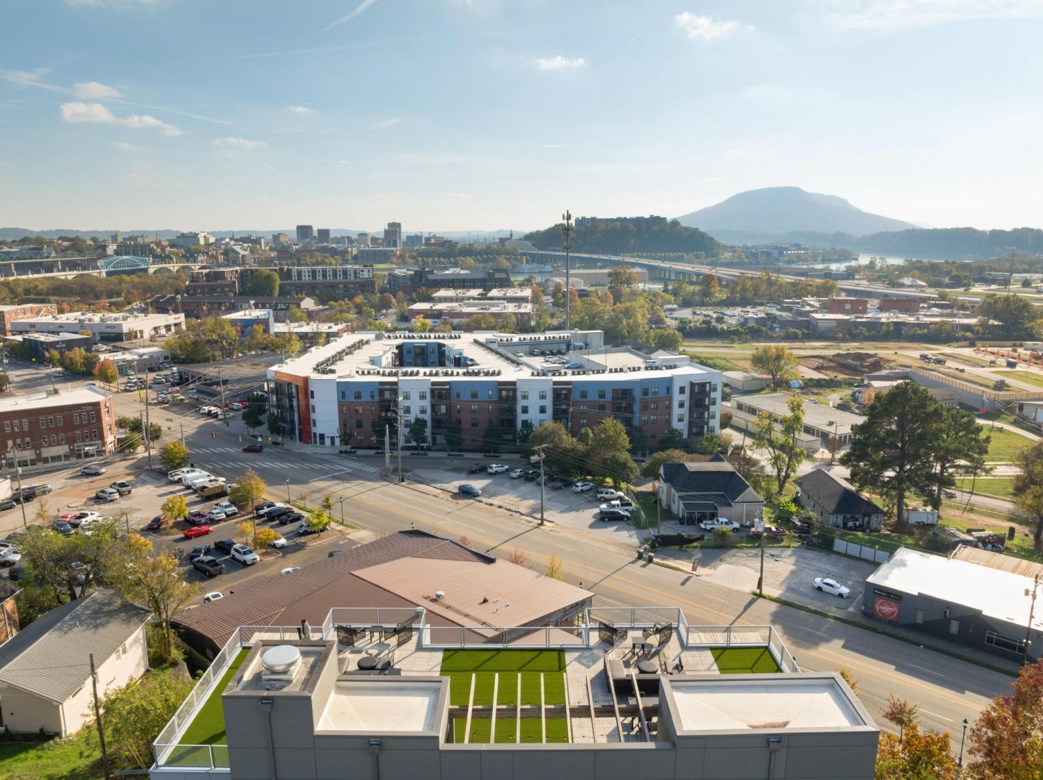 Fantastic opportunity at The Fairpoint Condominiums in a super-desirable North Chattanooga location within walking distance of the shopping, restaurants, and parks on the North Shore and close to trails, schools, hospitals, downtown Chattanooga and more. Freshly painted and priced to sell, enjoy scenic views of our architecturally appealing bridges, the city lights and our local mountains from this one-level, 2 bedroom, 2 bath unit that boasts 10' ceilings, a great floor plan, casement windows, engineered hardwoods and tile, quartz countertops, a laundry room, a private balcony and a large community rooftop deck which offers the perfect spot to relax or entertain. The kitchen boasts a level center island with pendant lighting, stainless appliances, under-cabinet lighting and opens to the living area which has access to the balcony. The primary bedroom has a walk-in closet and the primary bath with a dual vanity, separate shower, and water closet. The guest bedroom and full guest bath are positioned on the opposite side of the unit and would also make a great home office set-up if preferred. The building offers secured lobby access, a rooftop deck with an amazing setting and views, and the unit comes with 2 parking spaces - one covered and one uncovered. Whether you are looking for a convenient primary residence or a weekend retreat close to the hustle and bustle of the North Shore and downtown Chattanooga, then this could be the spot you have been looking for, so please call for more information and to schedule your private showing today. Information is deemed reliable but not guaranteed. Buyer to verify any and all information they deem important.