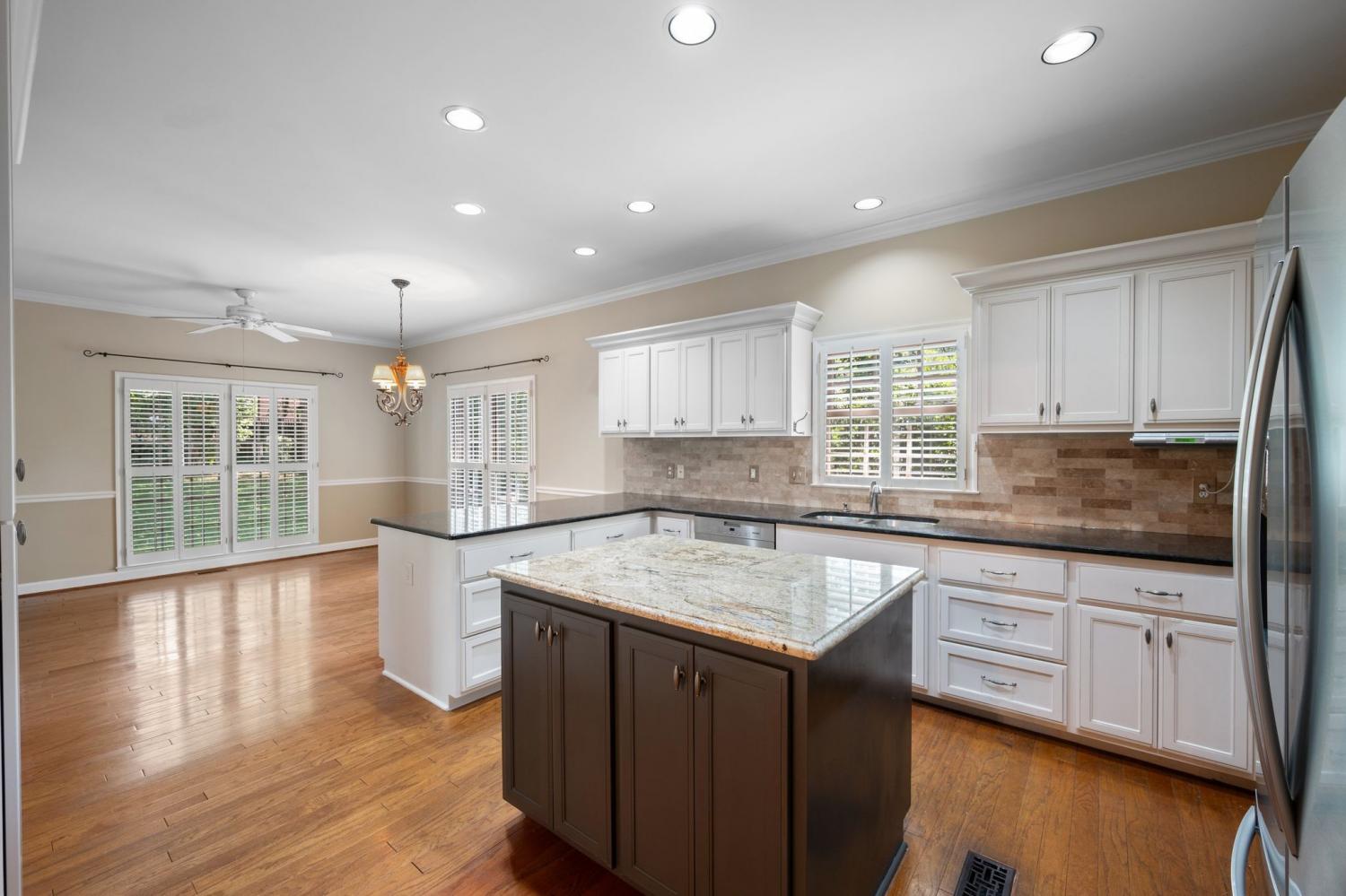 Move-in-ready, all-brick traditional home in beautiful Stone Box Creek cul-de-sac. Great back yard! Primary bedroom suite down with walk-in closet & updated bath featuring double vanities, water closet, separate shower & whirlpool tub. Hardwoods in foyer & kitchen with island, granite countertops, all stainless kitchen appliances including refrigerator, pantry with custom pull-out shelves & built-in desk. Eat-in area leads to den with gas FP and half bath. Large bonus room has built-in shelves & cabinets, half bath & lots of space. Unfinished walk-in storage on second floor along with two bedrooms, full bath & extra closet.