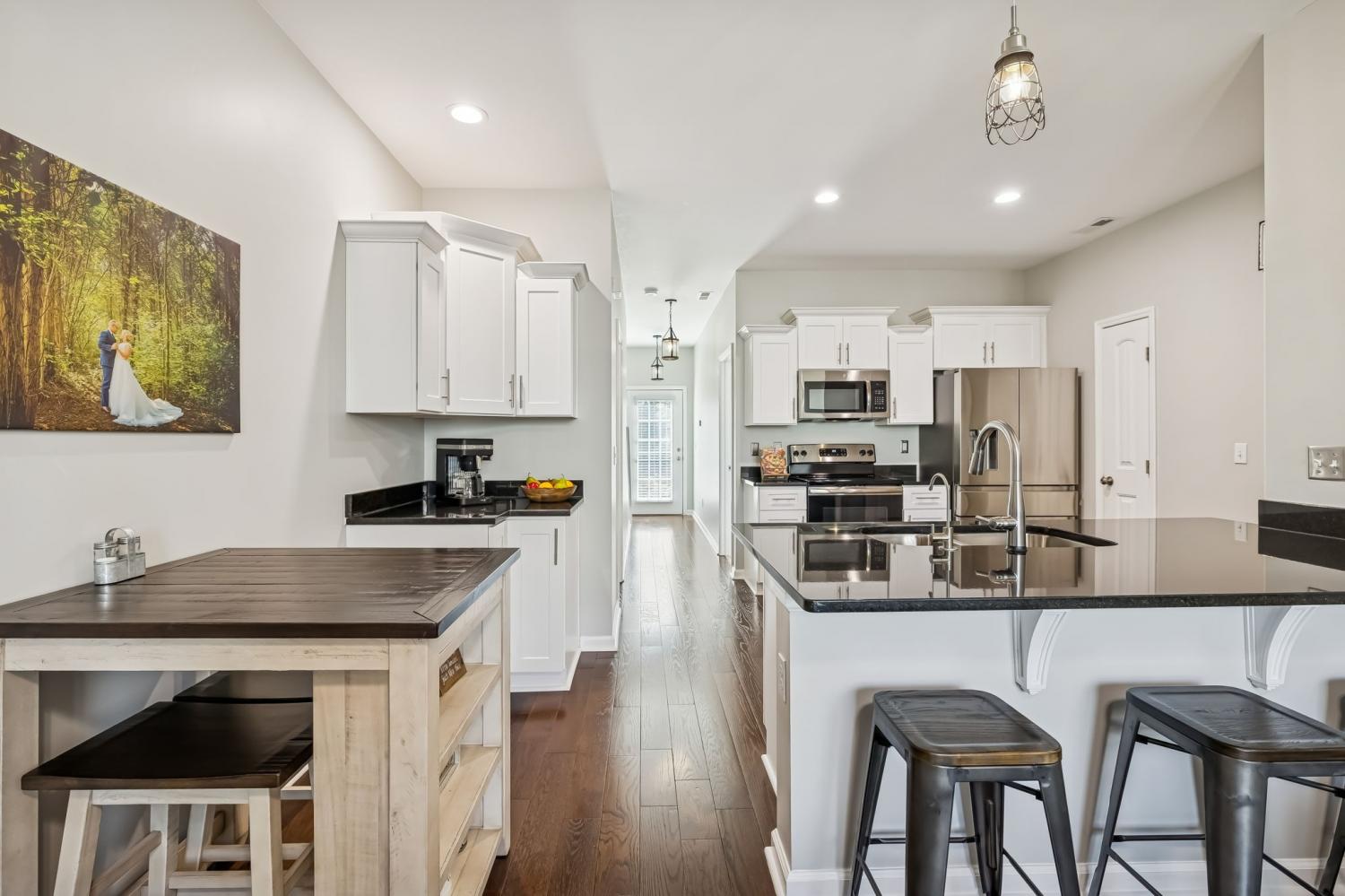 Welcome home to this beautifully maintained, custom built townhome tucked away in a private yet convenient part of town. This unit truly offers all the thoughtful upgrades you hope for, including a reverse osmosis water filtration system, touchless kitchen faucet, and digital split HVAC unit for comfort and efficiency. Inside, you will find granite countertops, a custom coffee bar with a lazy Susan, tons of storage, and spacious bedrooms. The huge bonus room on the second level provides endless possibilities. An attached garage adds everyday convenience, while the back of the unit opens to a peaceful tree line and creek, giving you a relaxing backdrop. This home has never had pets and is allergy friendly, making it a great option for anyone looking for a clean, well cared for space in a great location.