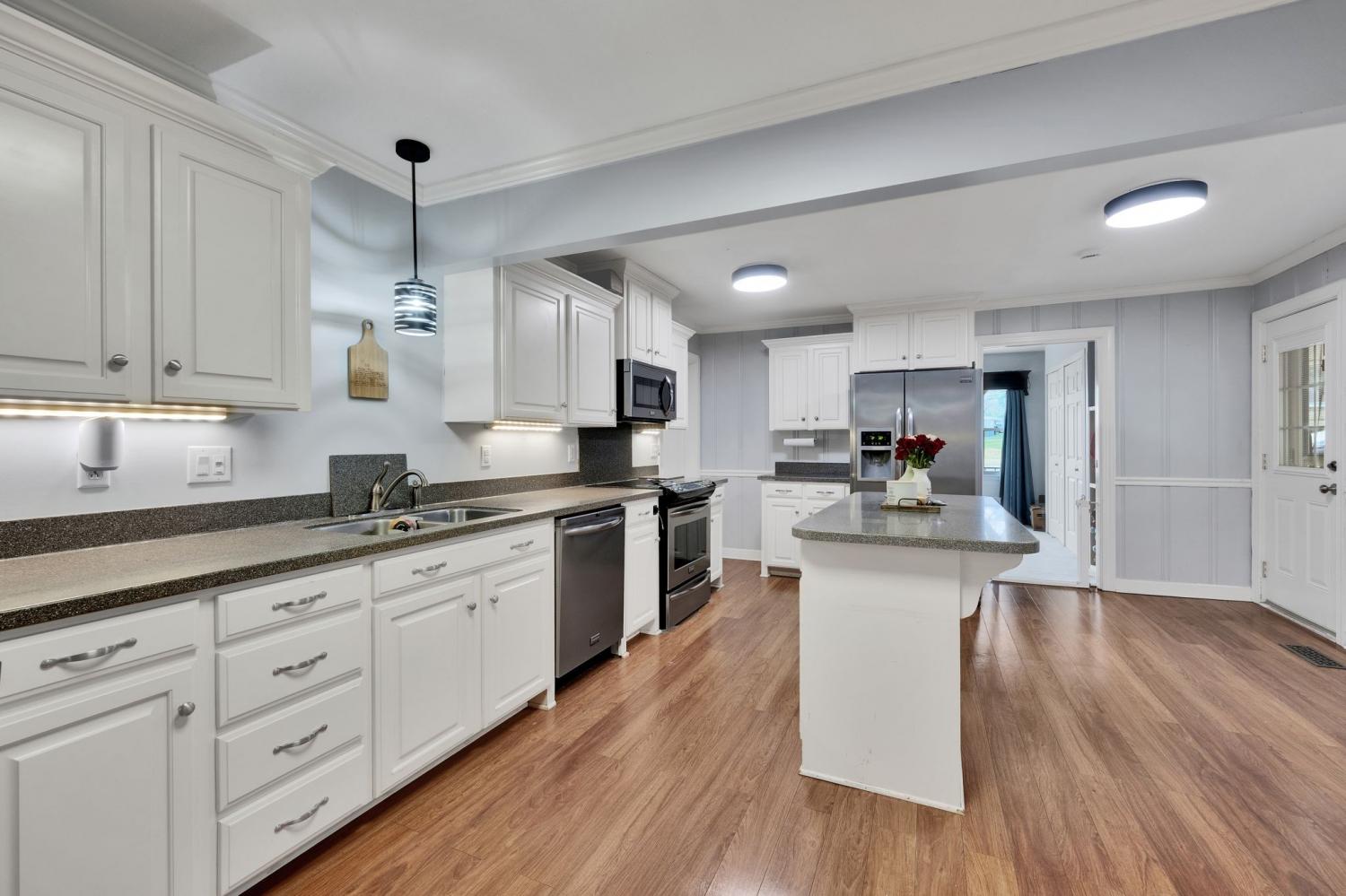Price Improvement !! Step into easy, one-level living in this charming ranch-style home. The open family room and kitchen combo features a cozy fireplace, making it the perfect space to relax or gather.The kitchen offers tons of counter space, stainless steel appliances, and plenty of storage to keep everything organized. An added formal living/dining area provides great flexibility and includes even more storage options. The bathroom has been beautifully renovated, giving the home a fresh, updated feel. You’ll also appreciate the large laundry room with extra space for storage and functionality. Enjoy the covered back porch — ideal for quiet mornings or entertaining guests. Convenient, functional, and move-in ready! This home was not affected by the 2021 flood.