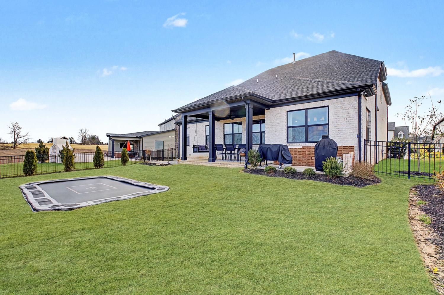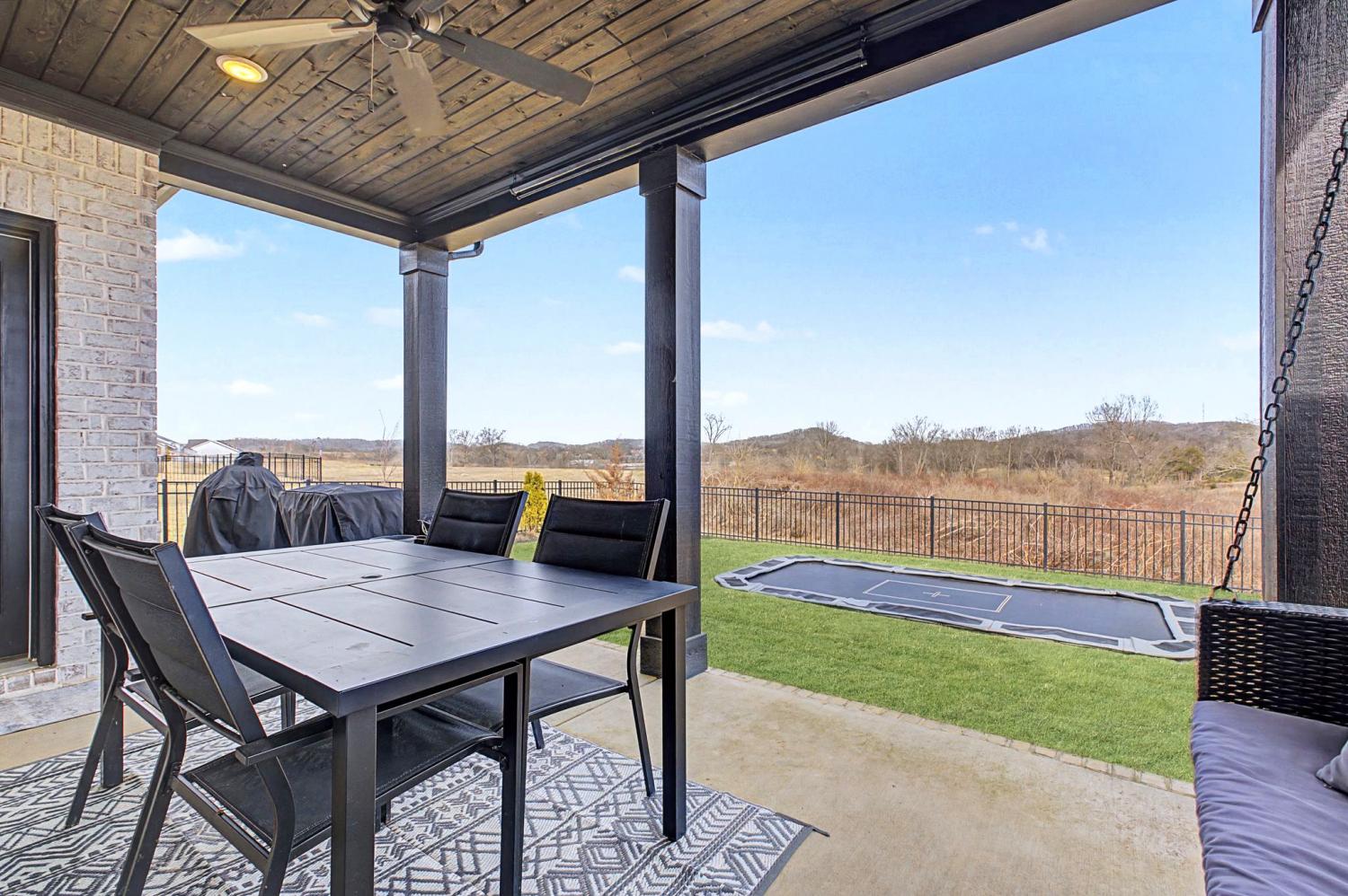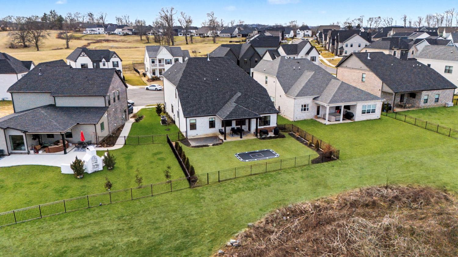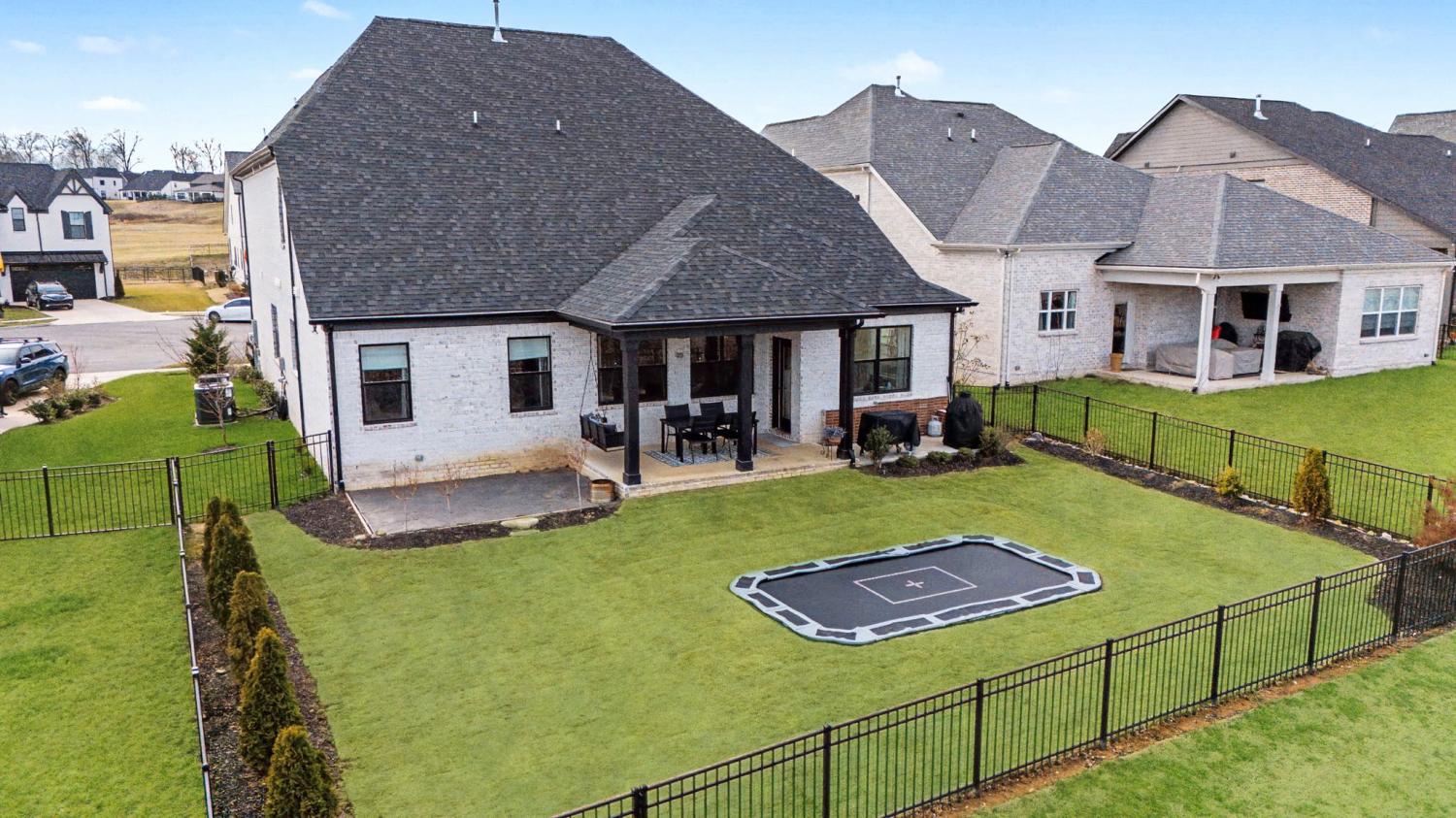 FINALLY - THE HOME YOU’VE BEEN LOOKING FOR HAS ARRIVED! Nestled on a quiet cul-de-sac, backing to serene green space filled with open fields and mature trees, this stunning home offers the perfect blend of privacy, beauty, and convenience. Newly built - 2023. This home features 5 spacious bedrooms PLUS a dedicated office (or 6th bedroom), thoughtfully designed providing room for everyone! Two bedrooms (including the master) on the main floor, three bedrooms boast their own ensuite bathrooms, and four have walk-in closets, creating comfort and privacy. The inviting, open-concept living space is ideal and beautiful with custom additions elevating the design. A gourmet kitchen with double ovens and a 5 burner gas range serves as the heart of the home—complete with a custom arched stylish coffee bar. The family room with gas fireplace has peaceful million dollar views from every window, bringing the outdoors in and filling the home with natural light. The primary suite on the main floor is highlighted by a beautiful feature wall that adds warmth and character. Function meets style in the laundry room with designer tile. The large bonus room offers built-in cabinets plus a built-in shelving perfect for school/work station. You’ll also enjoy an abundance of storage throughout the home. Step outside to a fully fenced backyard featuring a covered porch, an in-ground trampoline, and brand new brick patio —no rear neighbors, just green space. A Tesla charger in the garage. Beyond the home itself, the community is rich with amenities that are exceptional, offering a pool, clubhouse, and multiple playgrounds for year-round enjoyment. Conveniently located just 3 miles from the trendy 1819 Coffee Shop, 10 miles to Historic Downtown Franklin, 27 miles to Nashville, and 33 miles to Nashville International Airport (BNA), you’ll enjoy easy access to shopping, dining, entertainment, and travel. It doesn’t get better than this!
