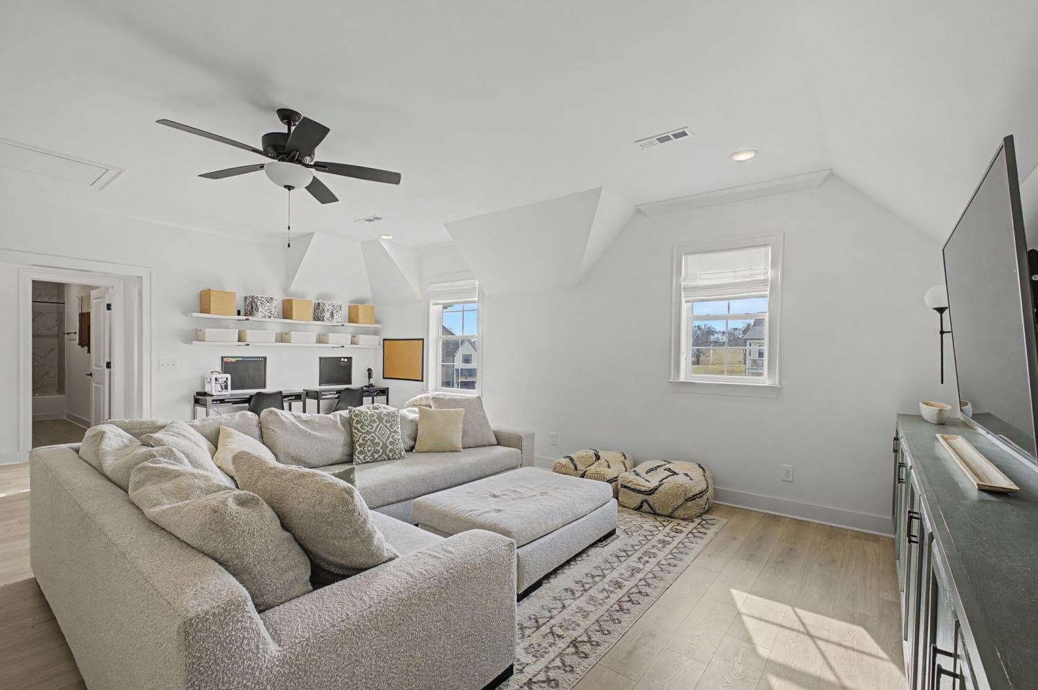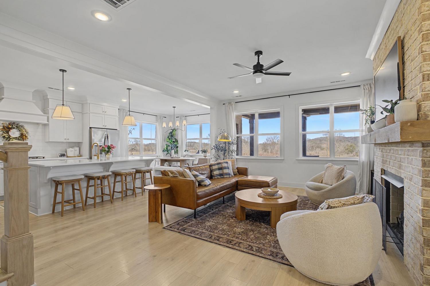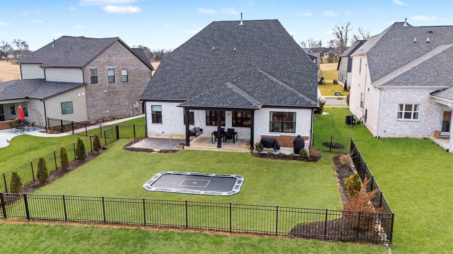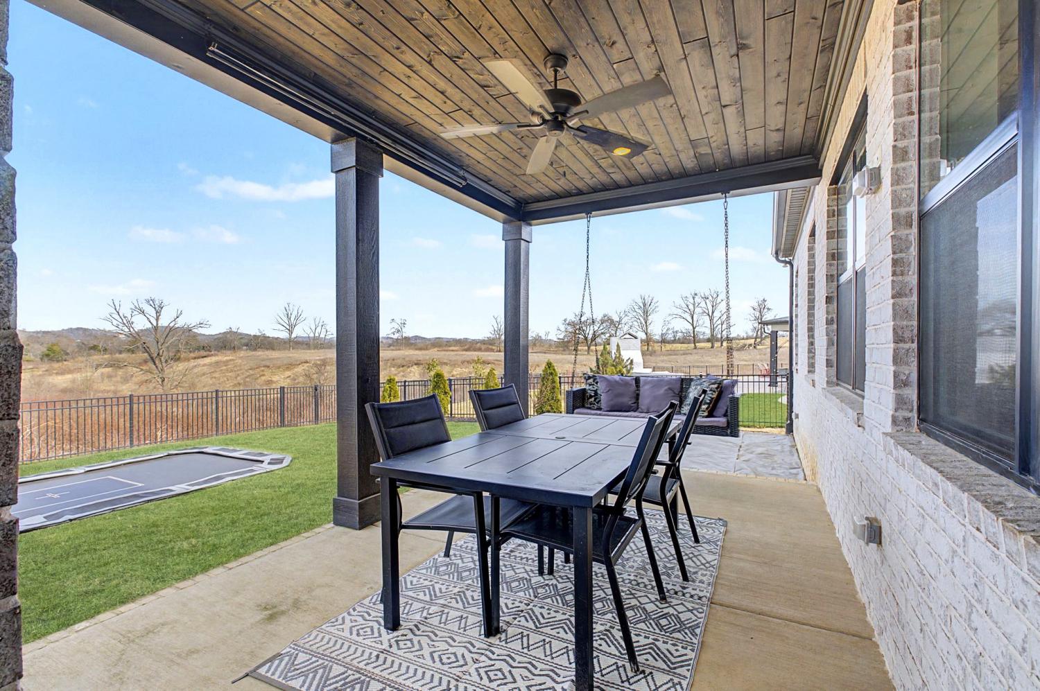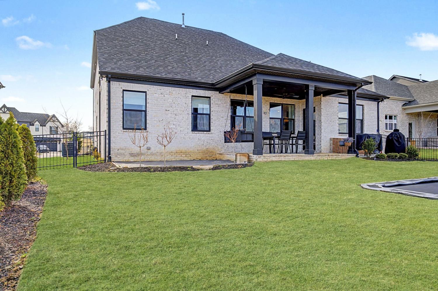 FINALLY - THE HOME YOU’VE BEEN LOOKING FOR HAS ARRIVED! Nestled on a quiet cul-de-sac, backing to serene green space filled with open fields and mature trees, this stunning home offers the perfect blend of privacy, beauty, and convenience. Newly built - 2023. This home features 5 spacious bedrooms PLUS a dedicated office (or 6th bedroom), thoughtfully designed providing room for everyone! Two bedrooms (including the master) on the main floor, three bedrooms boast their own ensuite bathrooms, and four have walk-in closets, creating comfort and privacy. The inviting, open-concept living space is ideal and beautiful with custom additions elevating the design. A gourmet kitchen with double ovens and a 5 burner gas range serves as the heart of the home—complete with a custom arched stylish coffee bar. The family room with gas fireplace has peaceful million dollar views from every window, bringing the outdoors in and filling the home with natural light. The primary suite on the main floor is highlighted by a beautiful feature wall that adds warmth and character. Function meets style in the laundry room with designer tile. The large bonus room offers built-in cabinets plus a built-in shelving perfect for school/work station. You’ll also enjoy an abundance of storage throughout the home. Step outside to a fully fenced backyard featuring a covered porch, an in-ground trampoline, and brand new brick patio —no rear neighbors, just green space. A Tesla charger in the garage. Beyond the home itself, the community is rich with amenities that are exceptional, offering a pool, clubhouse, and multiple playgrounds for year-round enjoyment. Conveniently located just 3 miles from the trendy 1819 Coffee Shop, 10 miles to Historic Downtown Franklin, 27 miles to Nashville, and 33 miles to Nashville International Airport (BNA), you’ll enjoy easy access to shopping, dining, entertainment, and travel. It doesn’t get better than this!