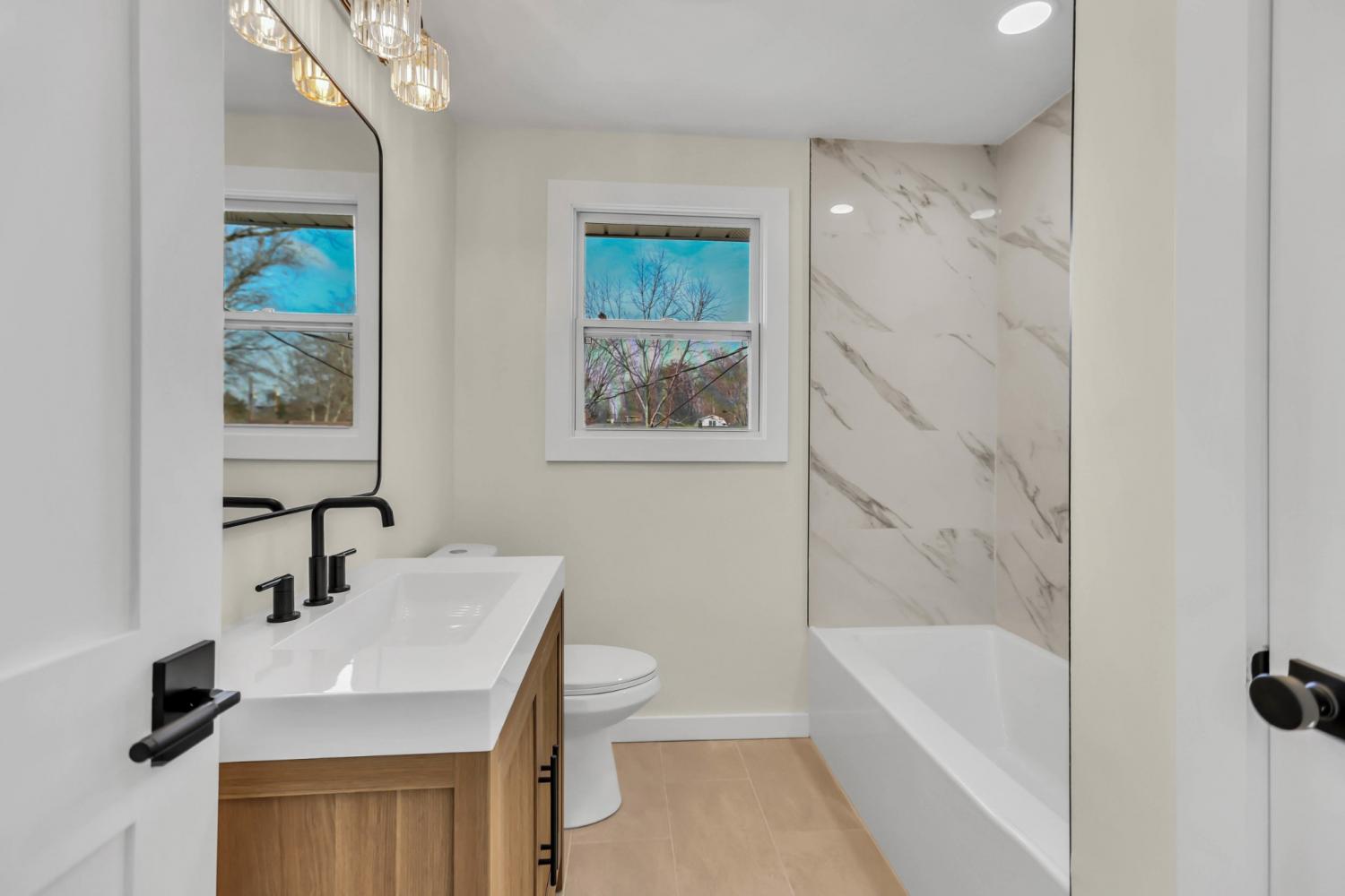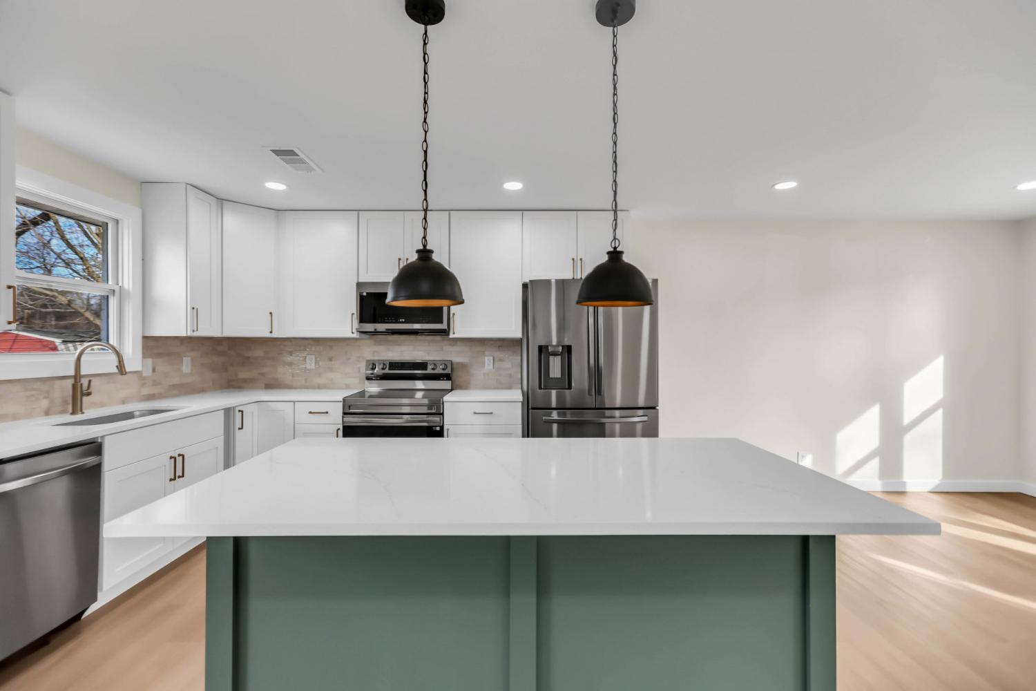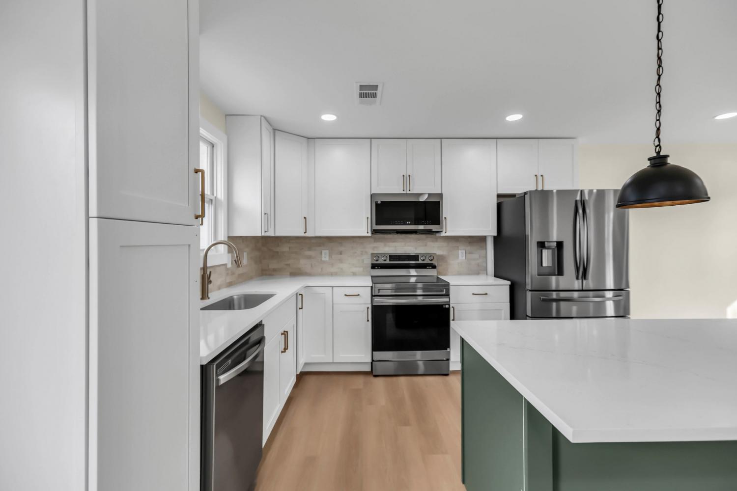 Beautifully renovated 4-bedroom, 3-bath home. This move-in-ready property features a brand-new HVAC unit, updated plumbing, a new electrical panel, new windows, new LVP flooring, recessed lighting, modern interior doors, and new appliances. Open-concept kitchen with large island, new white shaker cabinetry, quartz countertops, and stainless steel appliances. All bathrooms are completely remodeled with modern finishes. The primary bath showcases marble-style tile and a sleek tub and shower! Exterior updates include refreshed siding, freshly painted, and a newly built deck! Fully fenced-in yard with ample yard space—this beautifully updated home offers comfort, style, and peace of mind with all major systems newly upgraded.