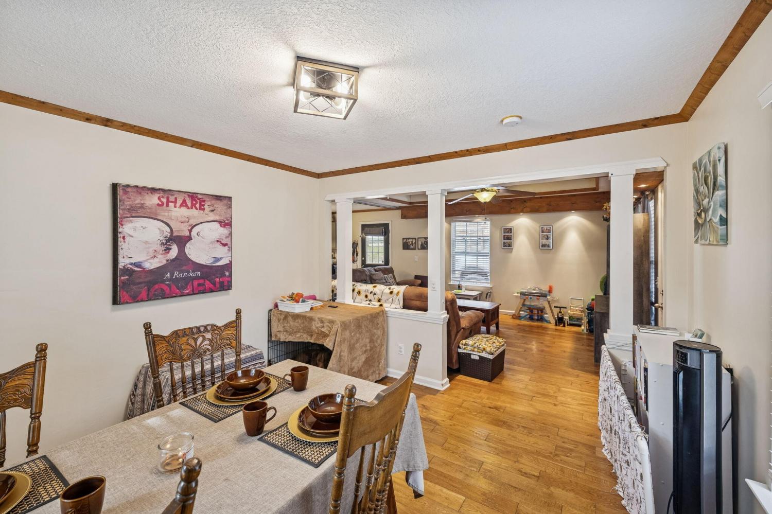 Welcome home to this cute bungalow-style home conveniently located in the heart of LaFayette! This charming property offers an open floor plan with three bedrooms and two full bathrooms, designed for comfortable everyday living. Step inside to beautiful hardwood floors and a spacious living area featuring a stunning tray ceiling that adds character and style. The kitchen is perfect for entertaining with a prominent island, kitchen bar seating, plenty of cabinet space, and a separate dining room for more formal gatherings. Enjoy relaxing mornings or evenings on the inviting rocking chair front porch. The level yard offers space to unwind, garden, or play. Conveniently located just a short drive to Chattanooga, this home provides small-town charm with easy access to city amenities.