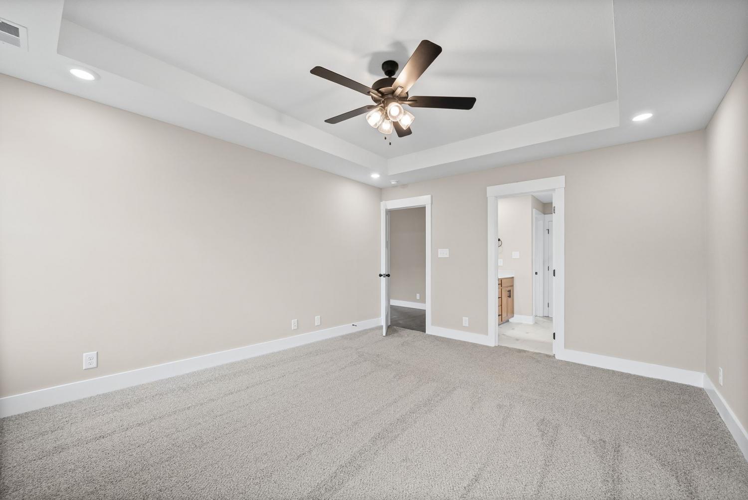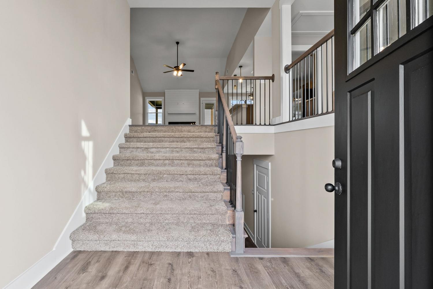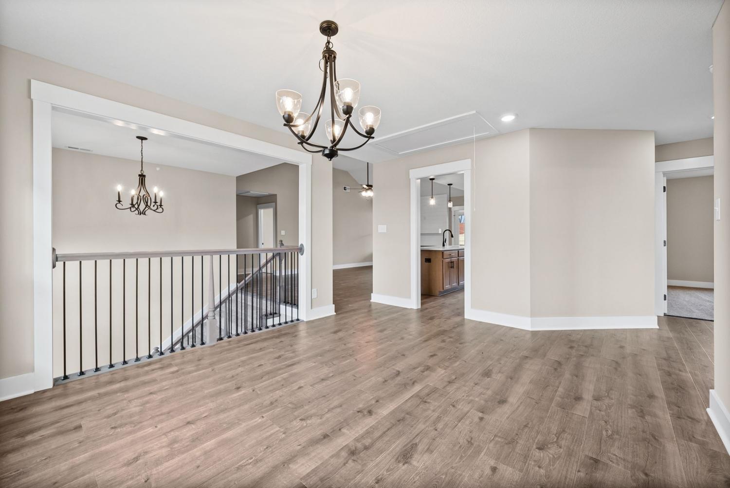 Welcome to the Oakmont Floor plan! - This open-concept split-level home features vaulted ceilings, a gas fireplace, and a chef’s kitchen with granite counters, stainless steel appliances, and a pantry. Luxury plank flooring throughout, carpeted bedrooms, and tile in wet areas. The primary suite includes a trey ceiling, huge walk-in closet, soaking tub, large tile shower, and double vanities. Two more bedrooms are on the main level. Downstairs offers a bonus room, laundry, two additional bedrooms, and a full bath. Enjoy a 3-car garage. ***Sample photo! Colors/ finishes may vary***