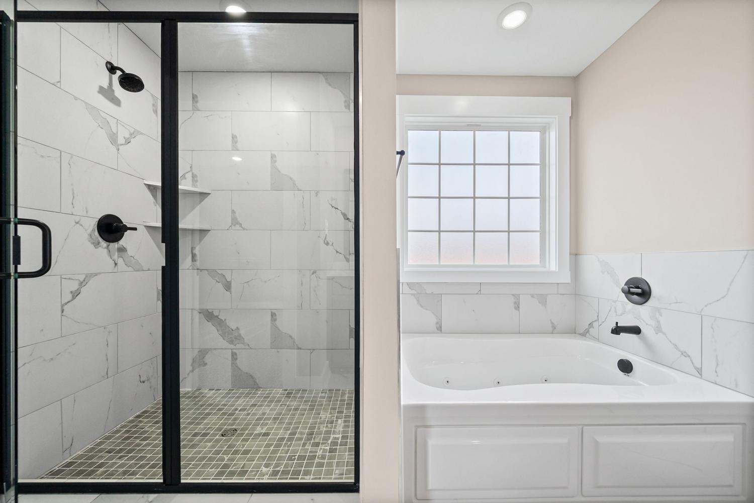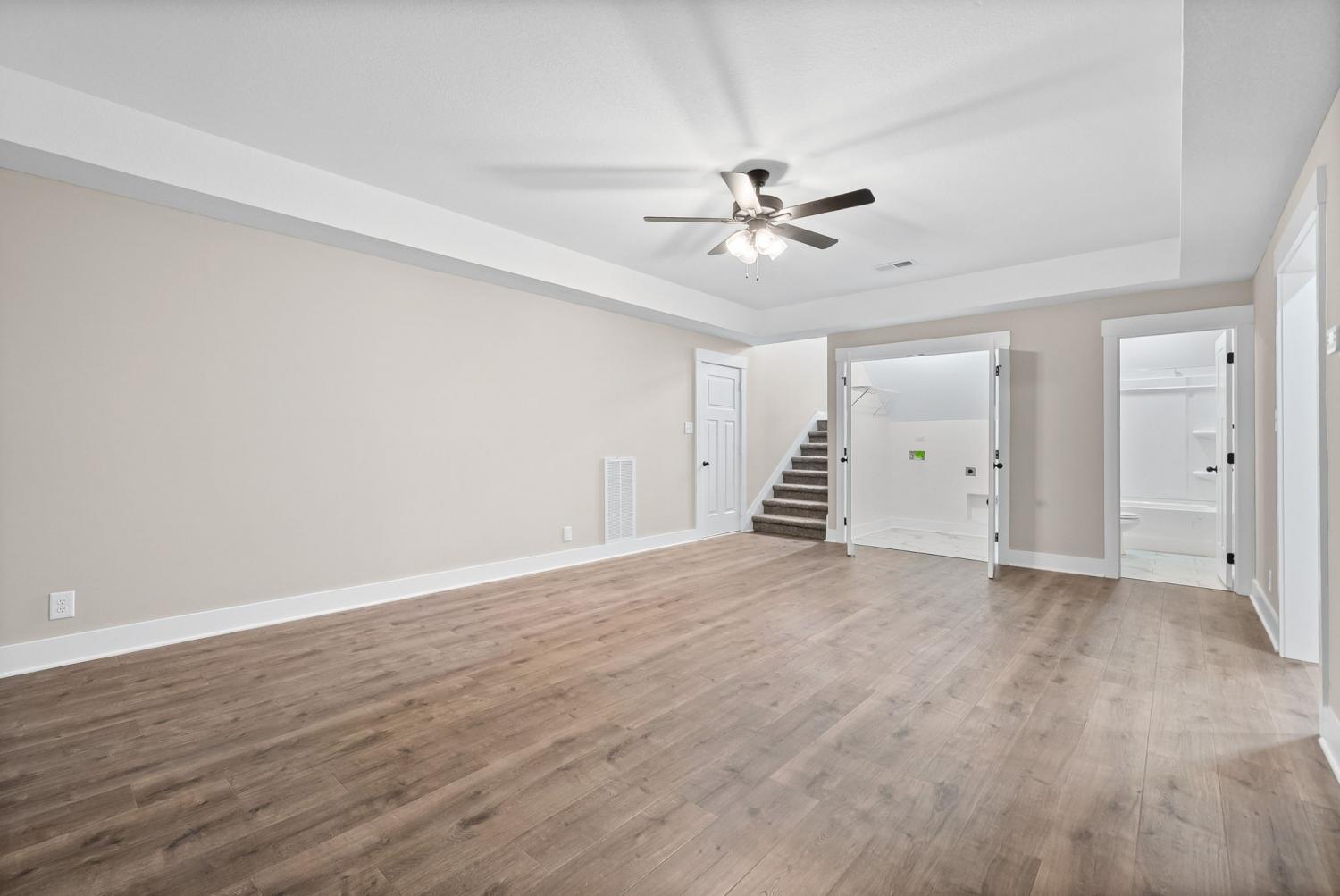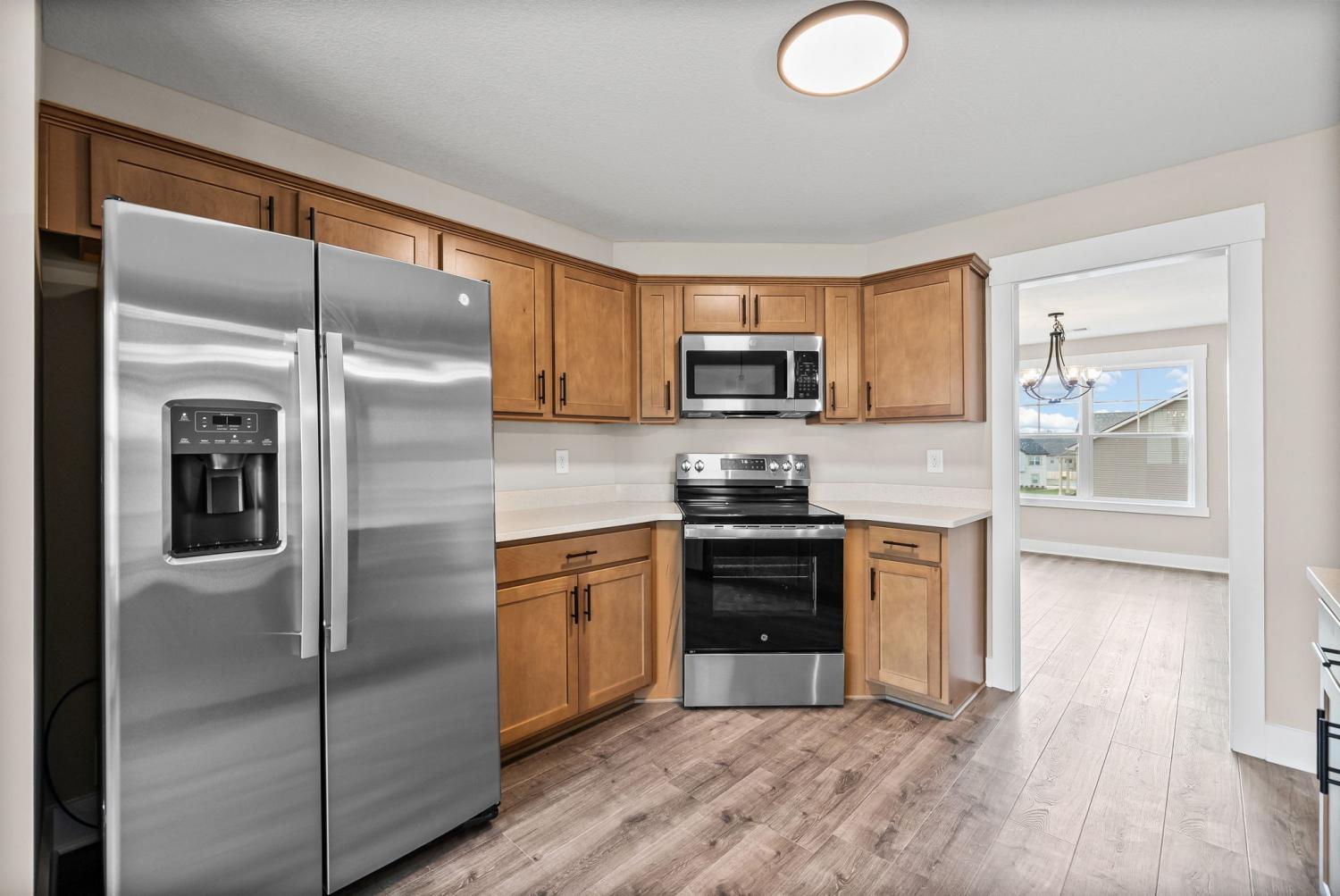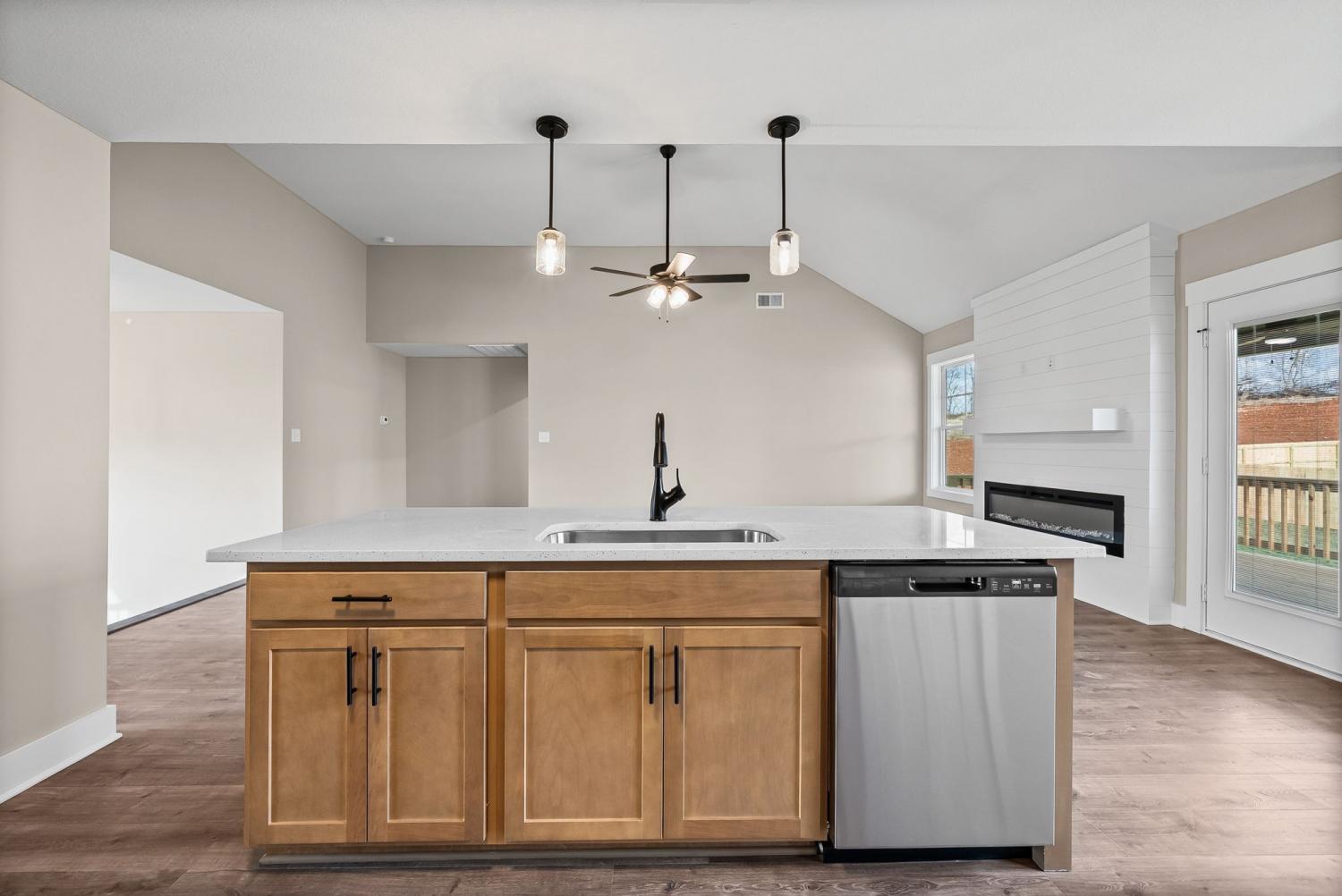 Welcome to the Oakmont Floor plan! - This open-concept split-level home features vaulted ceilings, a gas fireplace, and a chef’s kitchen with granite counters, stainless steel appliances, and a pantry. Luxury plank flooring throughout, carpeted bedrooms, and tile in wet areas. The primary suite includes a trey ceiling, huge walk-in closet, soaking tub, large tile shower, and double vanities. Two more bedrooms are on the main level. Downstairs offers a bonus room, laundry, two additional bedrooms, and a full bath. Enjoy a 3-car garage. ***Sample photo! Colors/ finishes may vary***