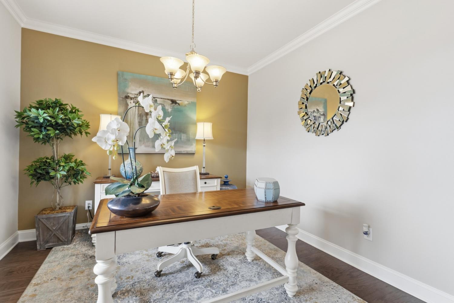 Experience refined living in this impeccably maintained home just under 2,900 sq ft, where thoughtful design meets everyday luxury. The expansive open-concept living, dining, and kitchen spaces create the perfect setting for elegant entertaining. The main-level primary suite is a private retreat, featuring a spacious walk-in closet with custom built-ins! A dedicated home office or hobby room offers flexibility for modern living. Upstairs, the bonus room opens to a charming juliet balcony—perfect for letting in natural light and fresh air—while the oversized fourth bedroom offers ample space for a cozy sitting area or private retreat. Integrated surround sound flows effortlessly from the living room through the kitchen and into the bonus room. Conveniently located just minutes from shopping and dining, with easy access to I-65 and only 17 miles from Downtown Nashville (Music City). Sophisticated comfort, perfectly positioned! Agent / buyer to verify all pertinent information.
