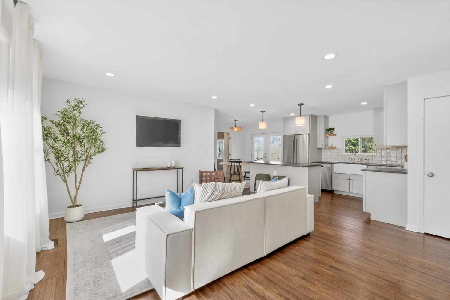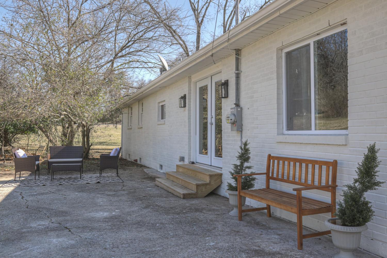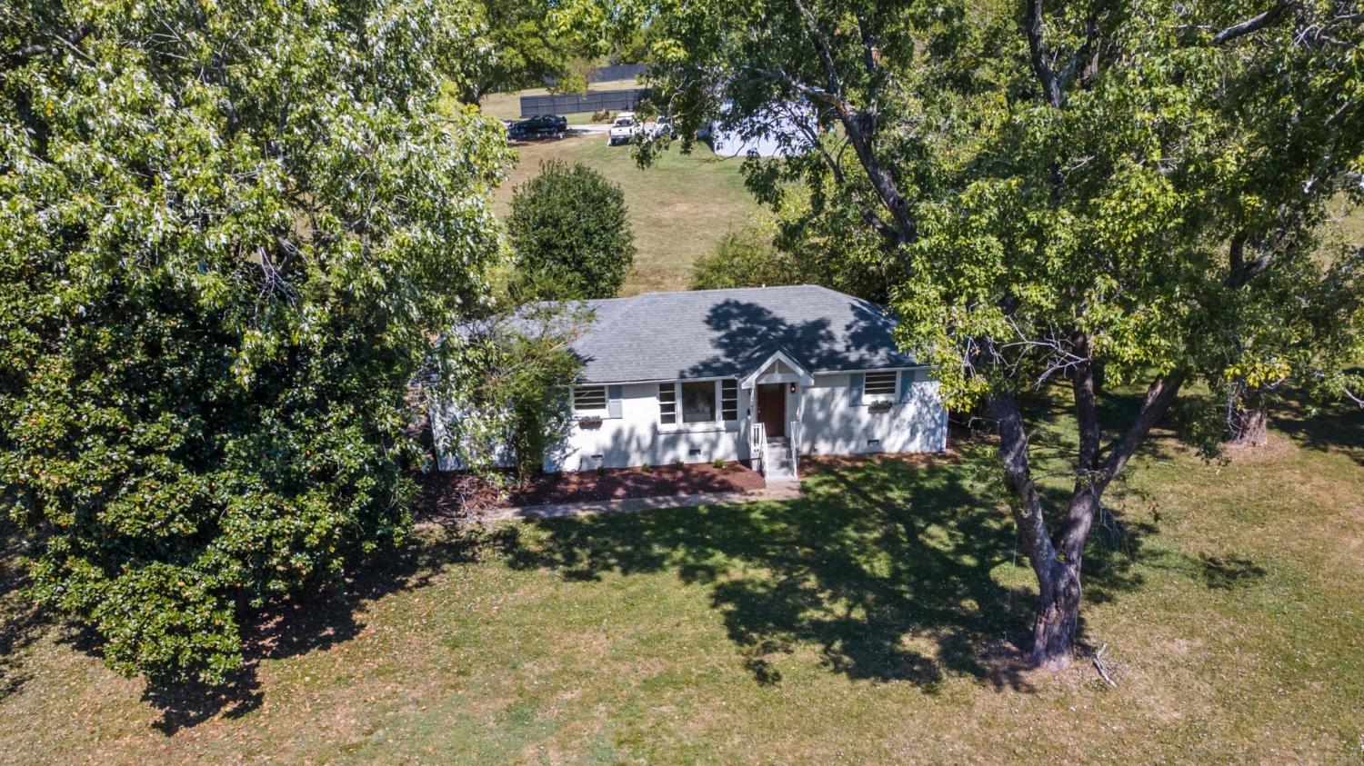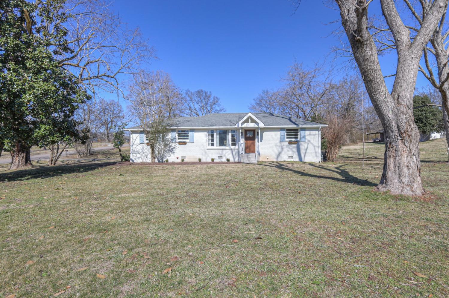 This beautifully renovated one-level ranch blends modern style with everyday comfort in a functional, open-concept layout. The kitchen, dining, and living spaces flow seamlessly—perfect for entertaining or relaxed daily living—highlighted by refinished hardwood floors and updated lighting throughout. The kitchen is a true showpiece with stainless steel appliances, a farmhouse sink, leathered granite countertops, glossy white tile backsplash, and warm gold hardware. The vaulted primary suite offers a private retreat with an ensuite bath, new carpet, and a custom closet. Two additional bedrooms, a dedicated home office, and a stylishly updated secondary bath provide flexibility for guests, work-from-home, or everyday living. Major improvements go beyond cosmetic updates, including a new electrical panel and wiring, recessed lighting, tankless water heater, and an added air return for improved efficiency. Outside, enjoy a spacious corner lot with mature trees, a freshly painted exterior, and new shutters that complete the home’s polished curb appeal—all with NO HOA. Move-in ready and thoughtfully upgraded—just 15 minutes from downtown Nashville.