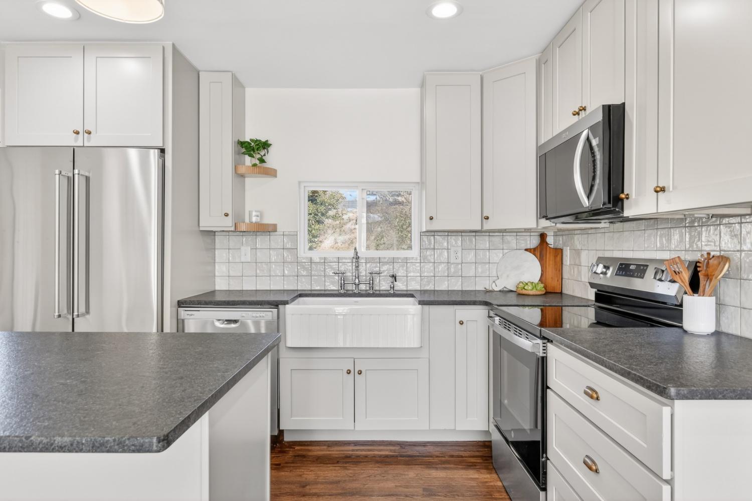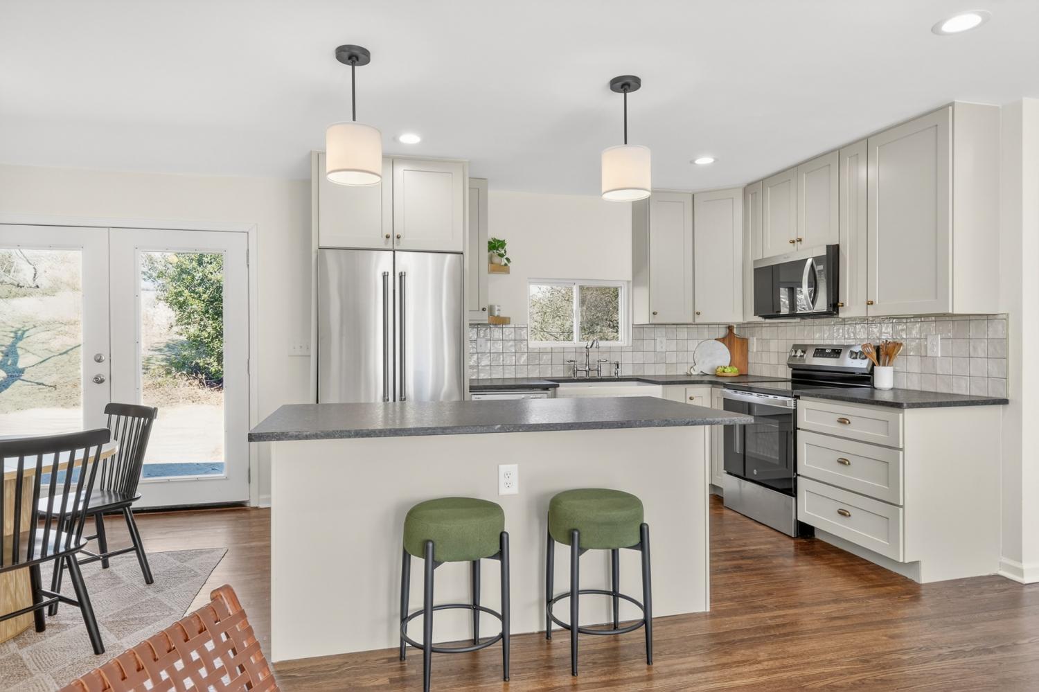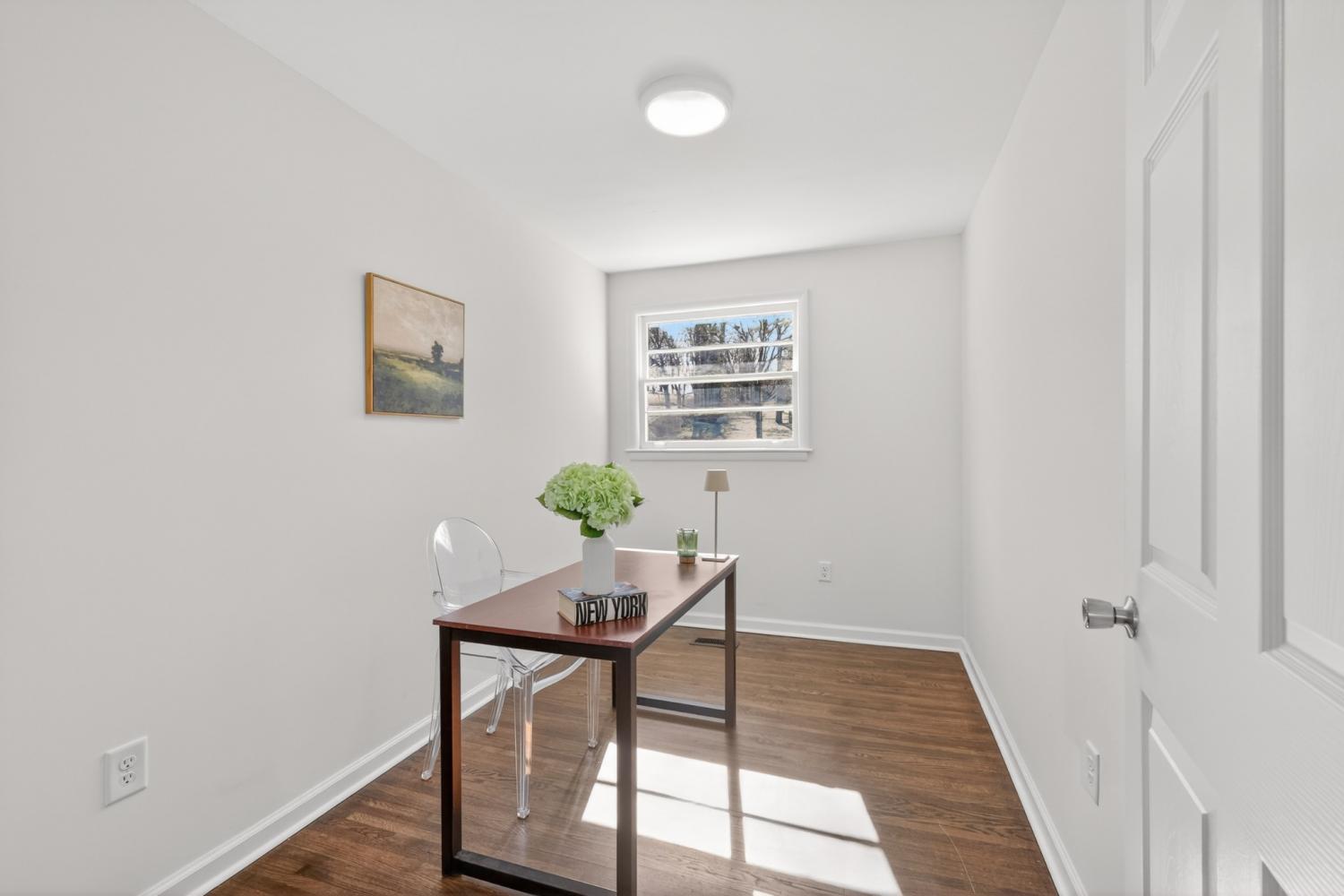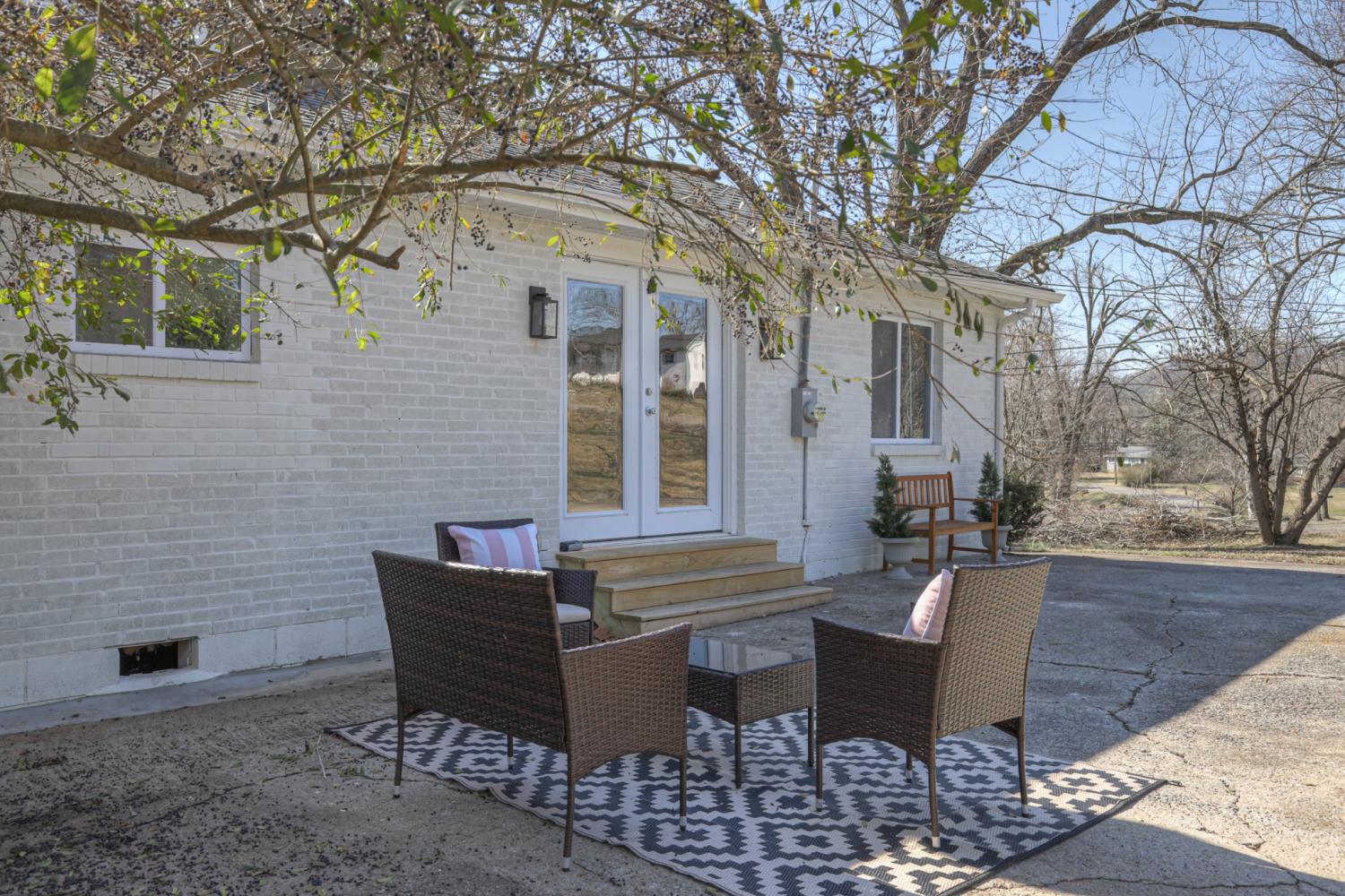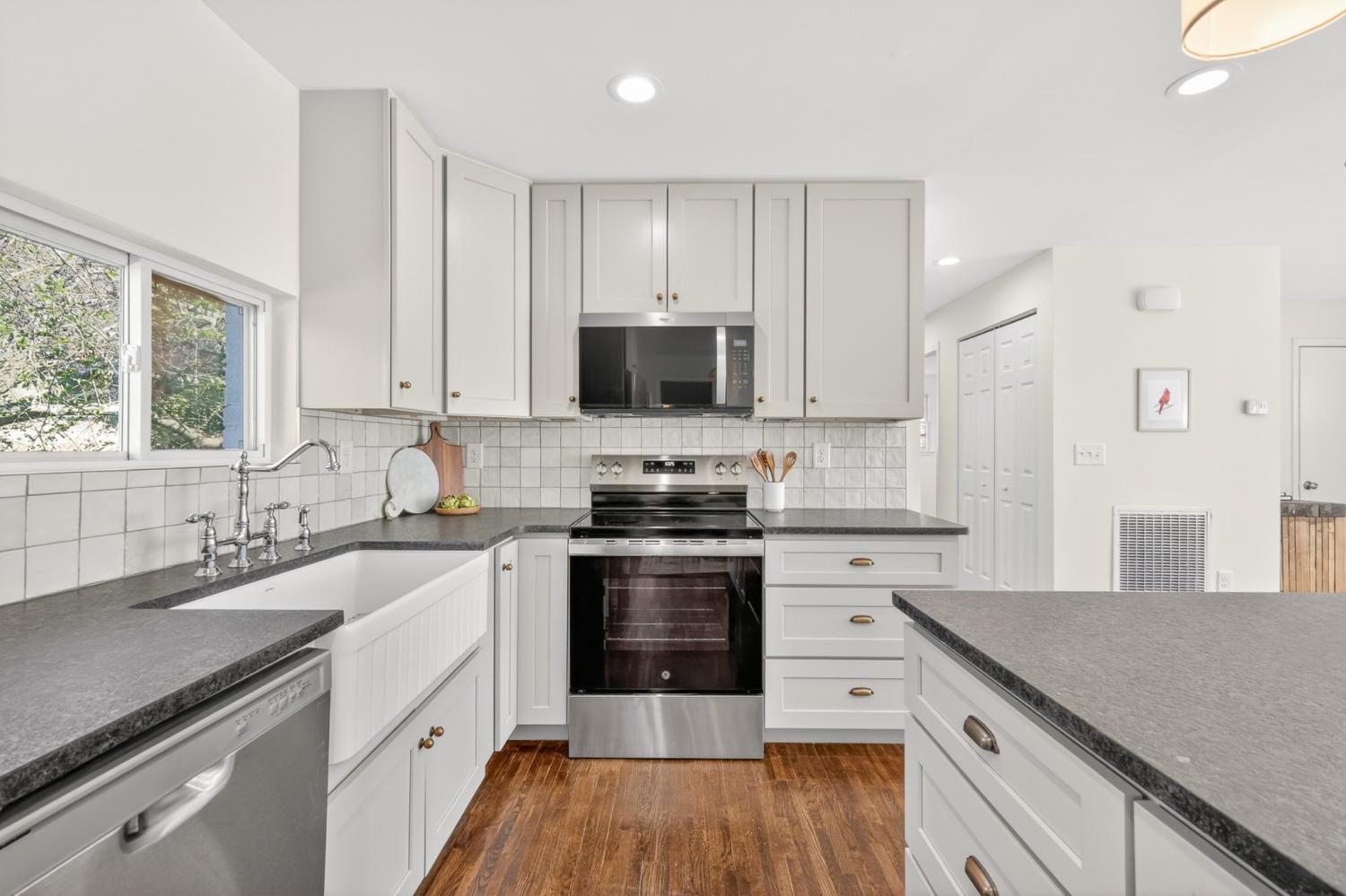 This beautifully renovated one-level ranch blends modern style with everyday comfort in a functional, open-concept layout. The kitchen, dining, and living spaces flow seamlessly—perfect for entertaining or relaxed daily living—highlighted by refinished hardwood floors and updated lighting throughout. The kitchen is a true showpiece with stainless steel appliances, a farmhouse sink, leathered granite countertops, glossy white tile backsplash, and warm gold hardware. The vaulted primary suite offers a private retreat with an ensuite bath, new carpet, and a custom closet. Two additional bedrooms, a dedicated home office, and a stylishly updated secondary bath provide flexibility for guests, work-from-home, or everyday living. Major improvements go beyond cosmetic updates, including a new electrical panel and wiring, recessed lighting, tankless water heater, and an added air return for improved efficiency. Outside, enjoy a spacious corner lot with mature trees, a freshly painted exterior, and new shutters that complete the home’s polished curb appeal—all with NO HOA. Move-in ready and thoughtfully upgraded—just 15 minutes from downtown Nashville.