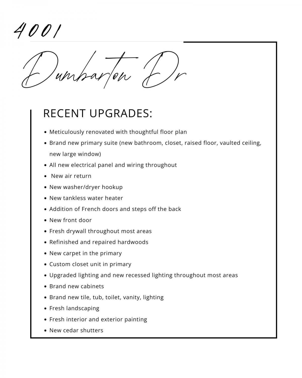 From Nashville, I-24W, Briley Pkwy to Brick Church Pike - Turn Right, Bellshire Dr - Turn Right, Banbury Dr - Turn Left, Dumbarton Dr. Your home will be on the corner of Dumbarton and Banbury Dr.