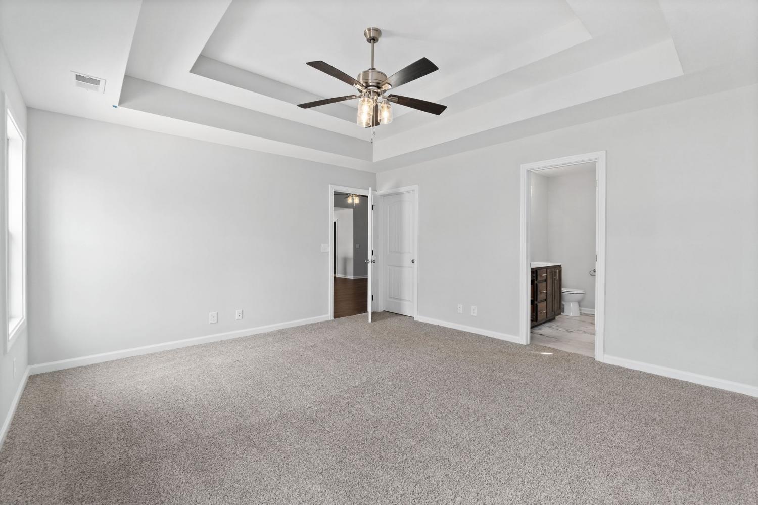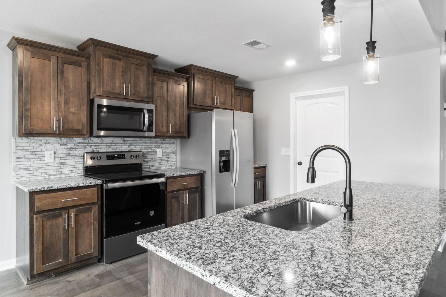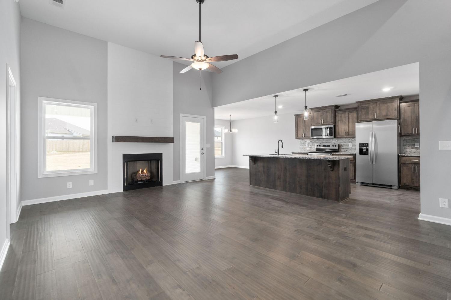 3 large bedrooms and 2 bathrooms with plenty of room. This open floor plan hosts a large living room with vaulted ceilings, upgraded kitchen, and separate dining area! The primary suite boasts a large walk in closet, and an en suite bathroom with double vanity and Large walk in showe. The large flat backyard is perfect for entertaining with a privacy fence. The community park is just a short walk and has swings, basketball hoops, covered pavilion, and picnic tables.