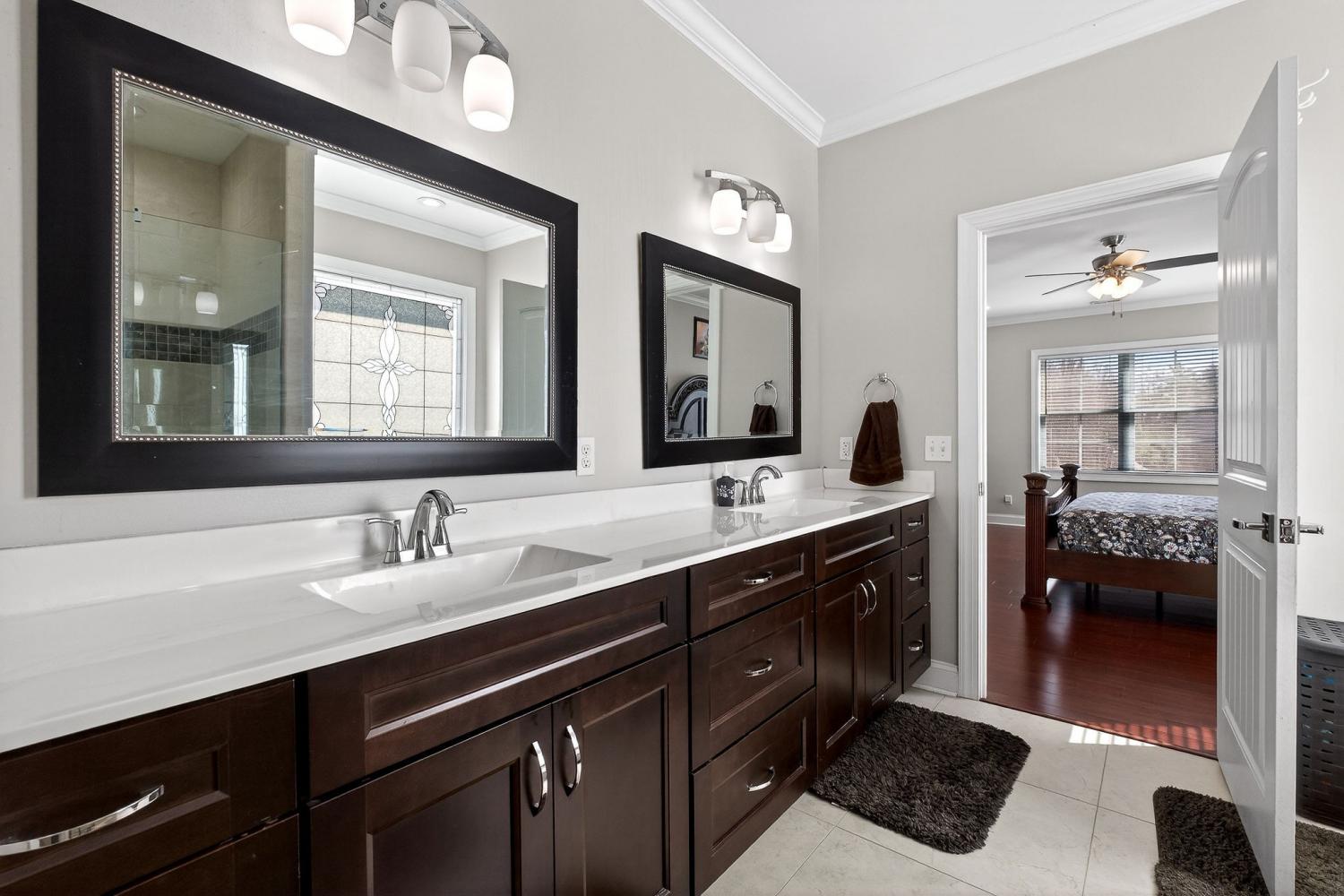 This beautiful home offers the perfect blend of luxury, space and functionality, spanning over 3,800 square feet. The two-story foyer complete with gorgeous flooring and a curved staircase, sets the tone for the home. Featuring five spacious bedrooms with most having walk-in closets, three and a half bathrooms and a formal dining room, this home provides ample room for all. The expansive kitchen boasts a breakfast bar island, spacious walk-in pantry, double ovens, generous cabinet & counter space, flowing smoothly into the living room with a fireplace for effortless entertaining. The property boasts two primary suites, one situated on the main level + another on the upper level, complemented by two bonus rooms, one on each level. The home's 5-minute proximity to TN Tech University & the City of Cookeville, makes it an attractive option for those seeking convenience. The all-brick exterior showcases, a charming covered front porch and covered back patio perfect for relaxation. Oversized main level two-car garage. Contact us today to view this home located in Cookeville City with no HOA dues!