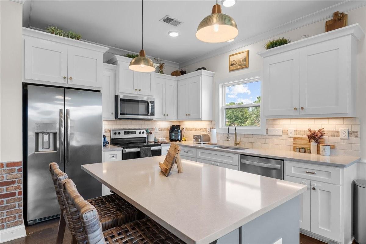 MOTIVATED SELLER!! This beautiful partial brick 4 bedroom, 3 bathroom home offers around 2,300 square feet of thoughtfully designed living space with soaring 12 foot ceilings and a bright, open layout that immediately feels welcoming. The main level includes three bedrooms, including a spacious primary suite, along with two full bathrooms for easy everyday living. Upstairs, the bonus room gives you flexibility for a playroom or extra living space. The upstairs also has a large bedroom and full bathroom. The kitchen, living, and dining areas connect seamlessly and open to a large covered deck, perfect for relaxing evenings or entertaining friends and family. The fenced backyard is ready to enjoy your own outdoor space. Quality upgrades throughout include soft close cabinetry, quartz countertops, detailed millwork, and 8 foot doors on the main level. Well maintained and ideally located near schools, shopping, I-40, 840, 109, and just minutes to Downtown Lebanon, Mount Juliet, Gallatin, and Murfreesboro, this home blends comfort, convenience, and style in one great package. Save up to 1% of your loan amount as a closing cost or rate buy down credit when you use Brad Chastain, First Community Mortgage, 423-802-4242