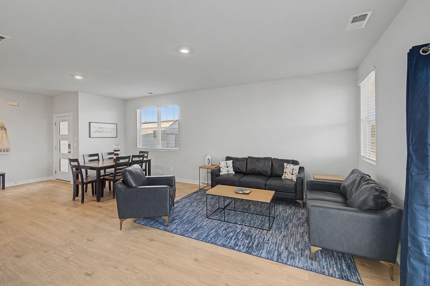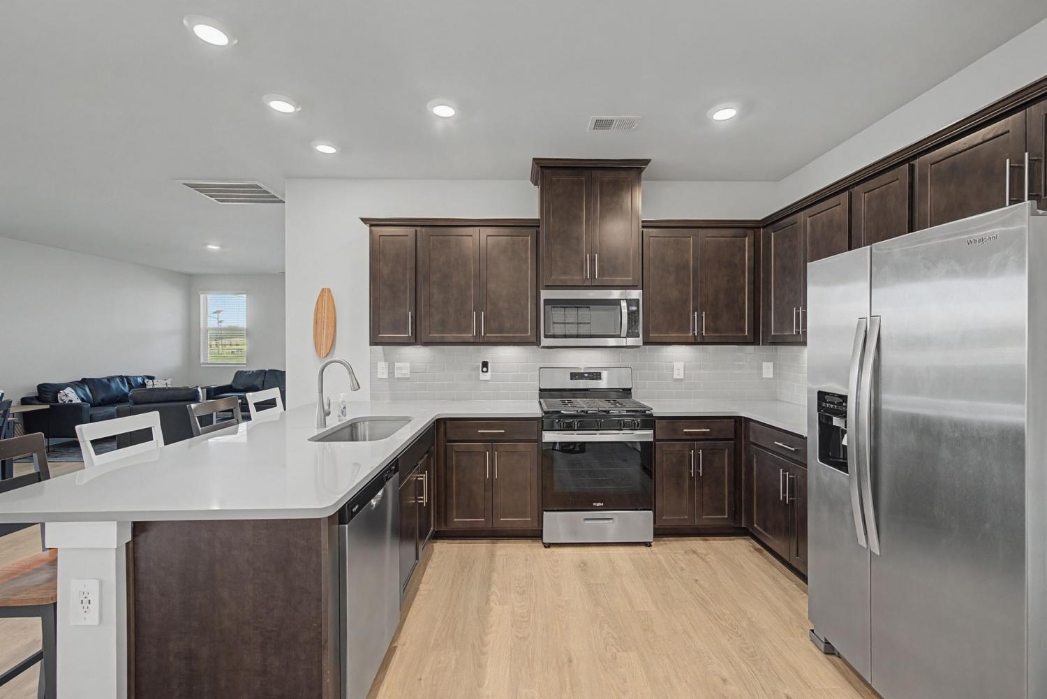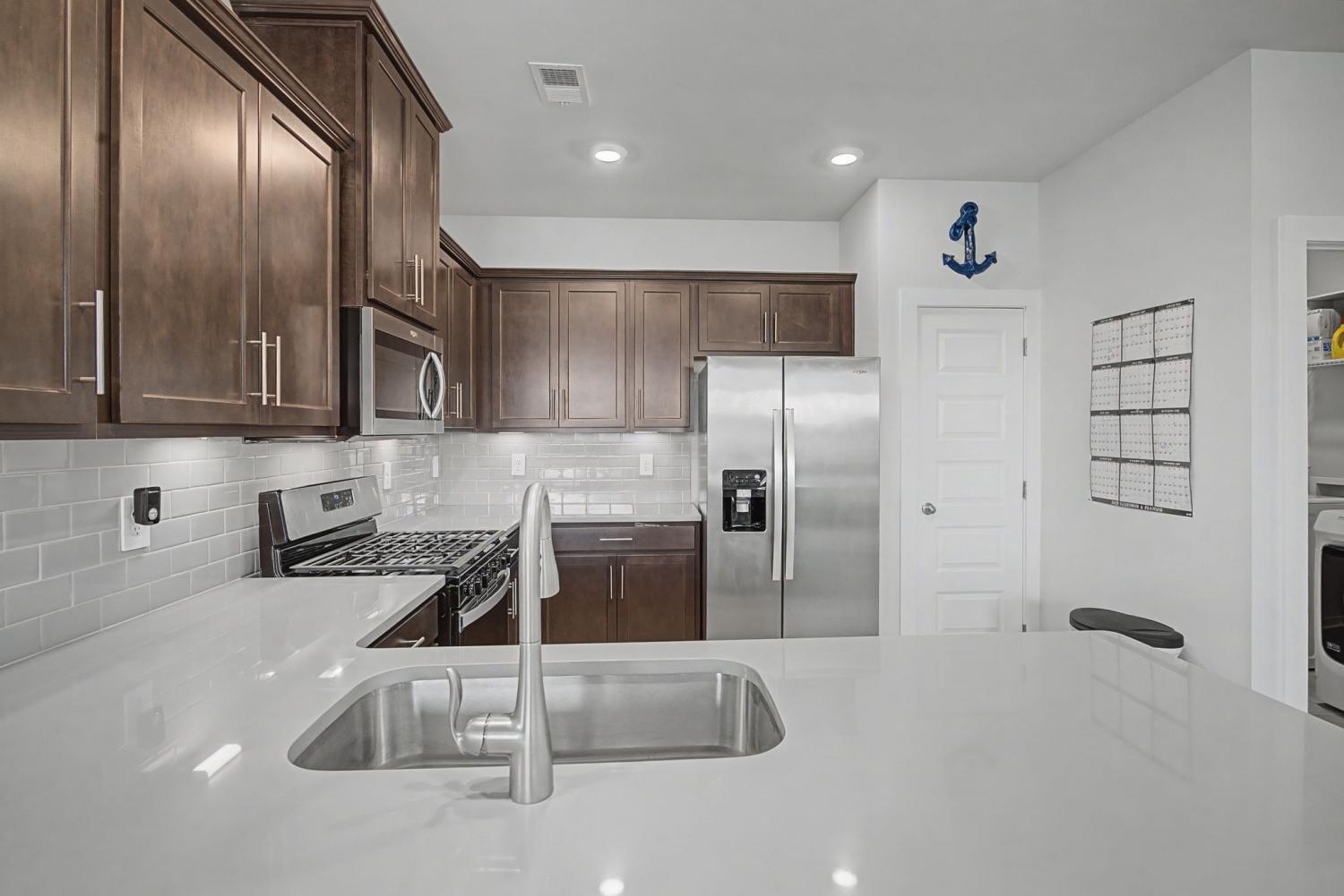 Seller closed on this house less than six months ago, This wonderful neighborhood " Nexus South 55+ ", has a three-Acre recreation facility, 10,000+ sq ft clubhouse with main hall & fireplace, lounge, multi-purpose room, fitness center, yoga/aerobics studio, indoor fireplace, large covered patio and restrooms. The outdoors features a combination resort-style/lap pool, eight pickleball courts, two tennis courts, two bocce ball courts, outdoor dining with fire-pit, raised garden area, event lawn, covered breezeway, outdoor picnic area and more. This amazing home features THREE bedrooms and two baths. The living area is open and so bright with plenty of sunlight pouring in from the big windows. The double size patio is great for outdoor entertaining. An amazing kitchen with a gas stove. There are a ton of cabinets, stainless appliances with the refrigerator to stay. The utility room includes the washer and dryer. The master has an wonderful bath attached with a spa like walk in shower and double sinks,