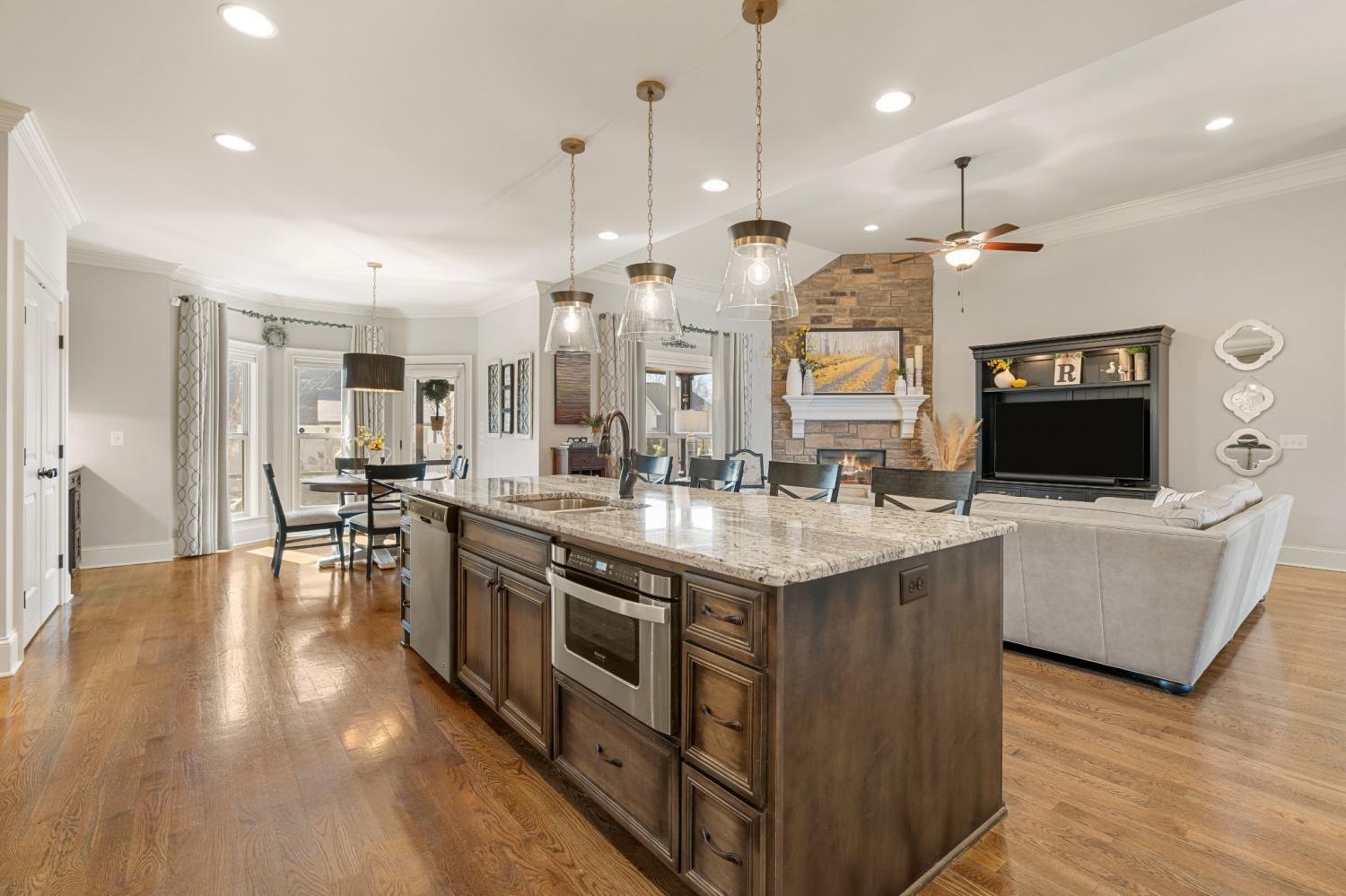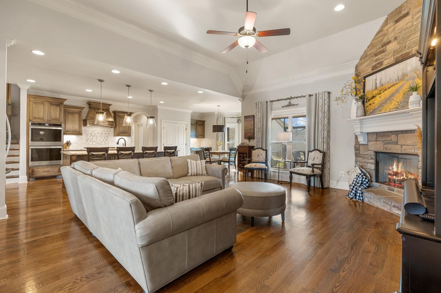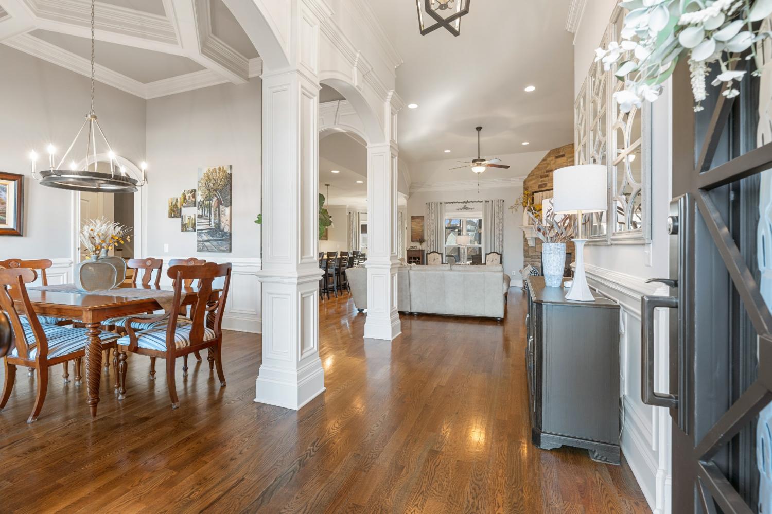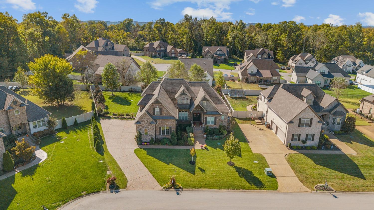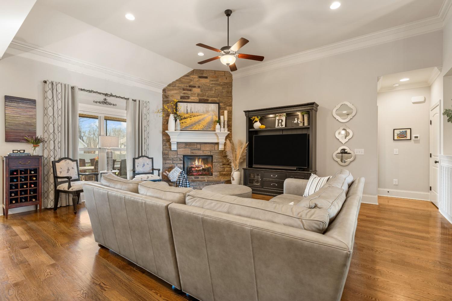 This one-owner expanded Chelsea plan built by Eastland Construction in 2018, is located on a cul-de-sac in Blackberry Trace, a quiet, 64-home community with convenience to popular locations in the Greater Nashville area and zoned for Wilson County schools. With nearly 3,600 sqft and 5 bedrooms (or 4 bedrooms + an Office), including 4 bedrooms on the main level and a private guest suite upstairs, this home provides maximum flexibility to accommodate working from home and growing or multi-generational families. Features include custom iron entry double doors; an open concept; 3/4" oak hardwoods; tile in all wet areas; tulip poplar millwork, including wainscoting, recessed panels, decorative columns, and coffered ceiling in the dining room; granite counters in the kitchen and primary suite; new backsplash in kitchen; custom maple cabinetry; custom closet built-ins; custom shelving in garage; whole-home smart wiring, security, and antenna; upgraded light fixtures; a floor-to-ceiling stacked stone gas fireplace; a 680 sqft bonus room; and additional storage, including a large walk-in attic. Outside, you will find a screened porch from which to enjoy sunsets, a stone wood-burning fireplace with seating wall, privacy fence, 5-person hot tub, extensive landscaping with uplighting, sodded fescue, and smart irrigation. Also includes an encapsulated and conditioned crawlspace. The neighborhood is just 20 min or less to Lebanon, Mt. Juliet, and Gallatin, 30 min to BNA, and less than 15 min to grocery stores, restaurants, shopping, and boat ramps for convenient access to Old Hickory Lake. Exterior images/video captured in Fall 2025 in preparation for February listing; interior images/video from 2026. Be sure to check out the included video!