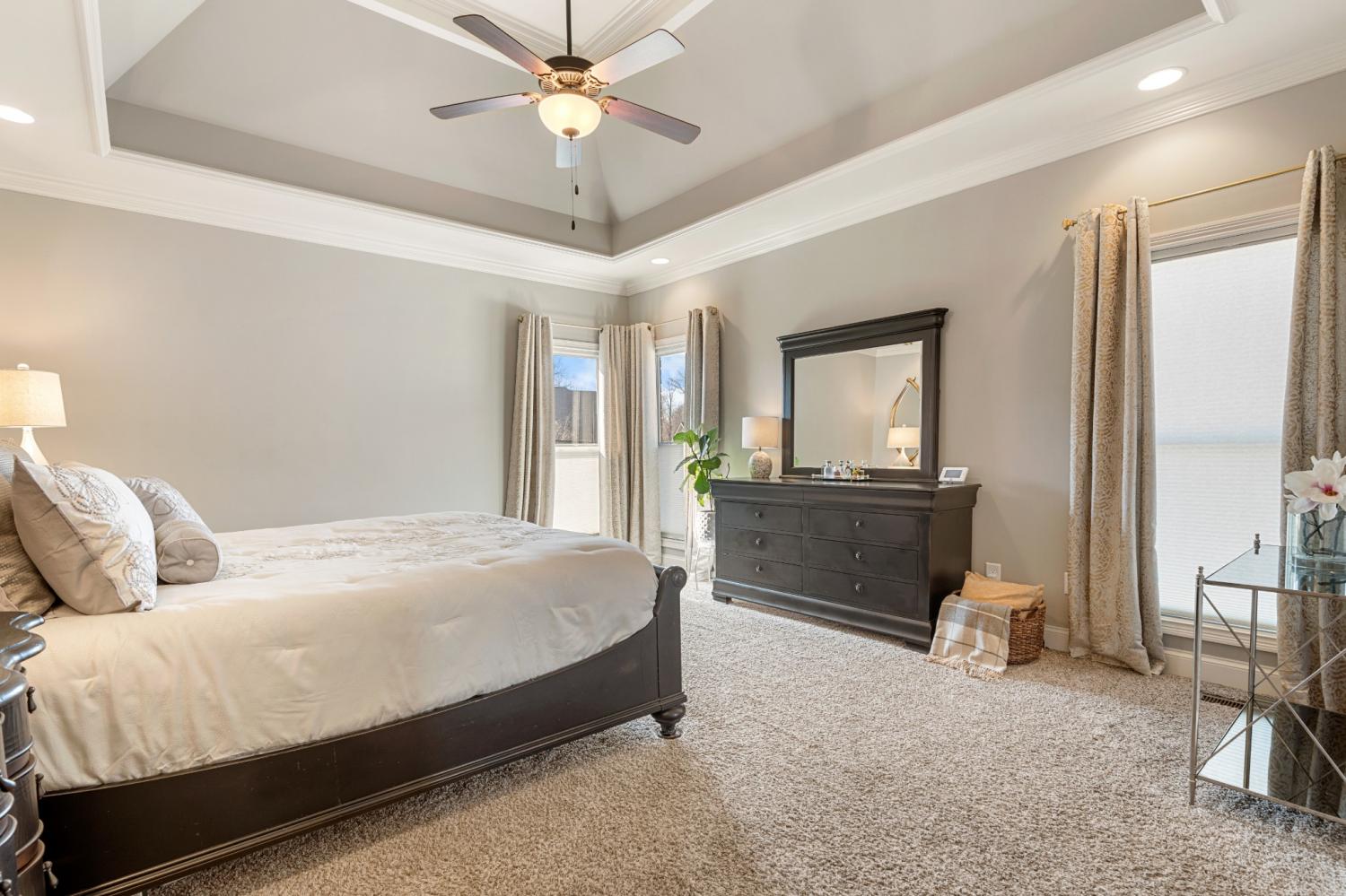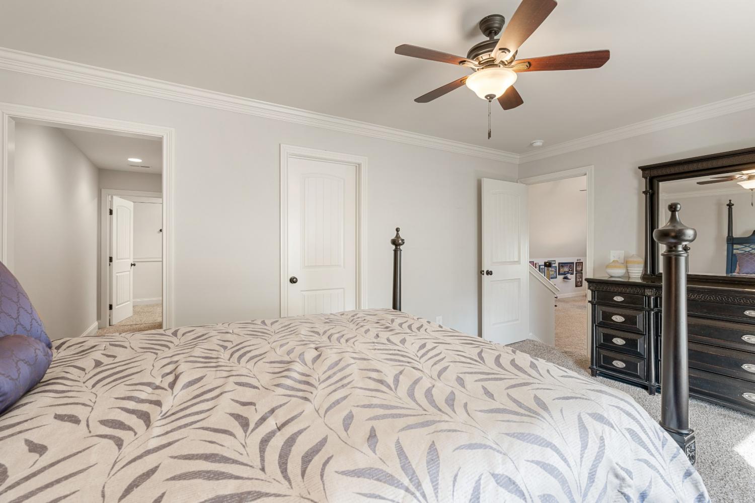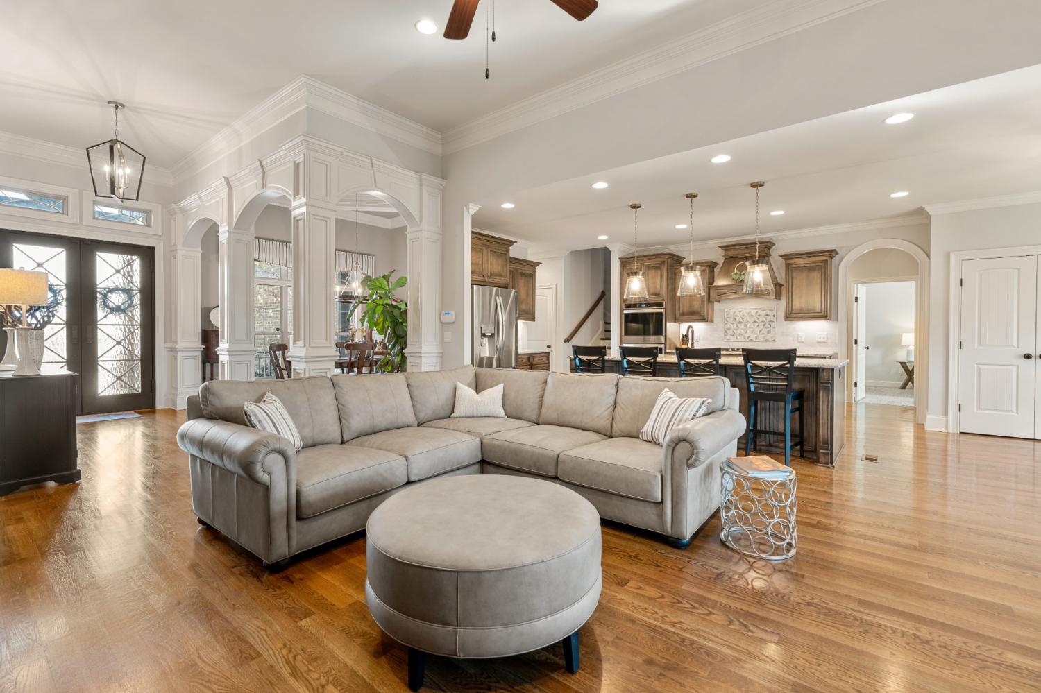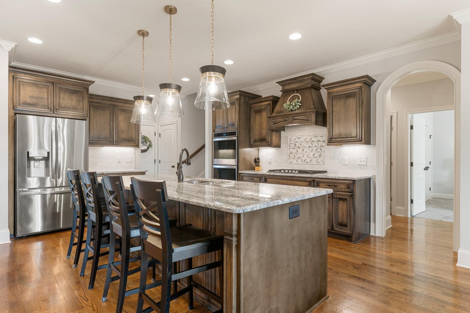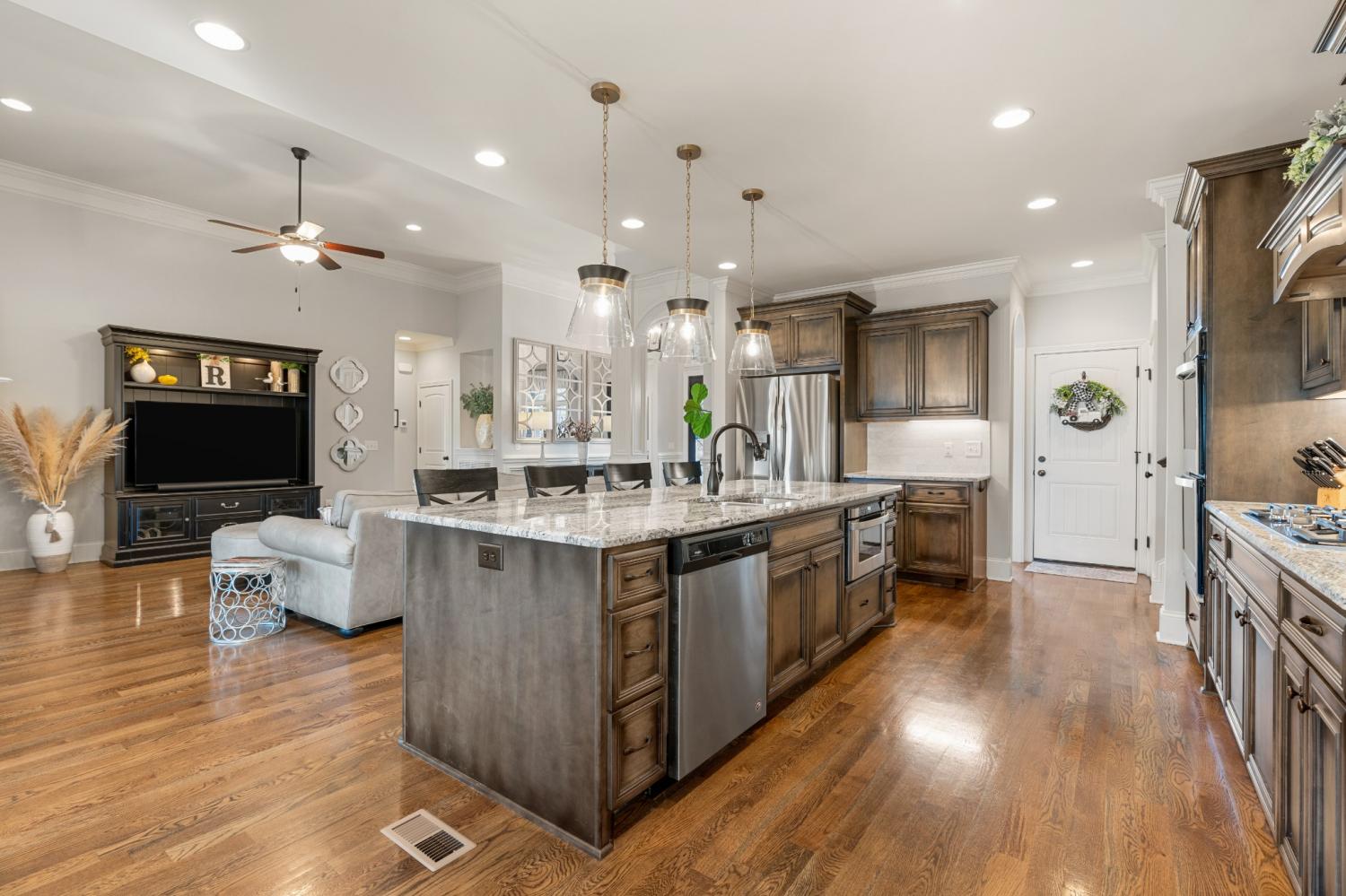 This one-owner expanded Chelsea plan built by Eastland Construction in 2018, is located on a cul-de-sac in Blackberry Trace, a quiet, 64-home community with convenience to popular locations in the Greater Nashville area and zoned for Wilson County schools. With nearly 3,600 sqft and 5 bedrooms (or 4 bedrooms + an Office), including 4 bedrooms on the main level and a private guest suite upstairs, this home provides maximum flexibility to accommodate working from home and growing or multi-generational families. Features include custom iron entry double doors; an open concept; 3/4" oak hardwoods; tile in all wet areas; tulip poplar millwork, including wainscoting, recessed panels, decorative columns, and coffered ceiling in the dining room; granite counters in the kitchen and primary suite; new backsplash in kitchen; custom maple cabinetry; custom closet built-ins; custom shelving in garage; whole-home smart wiring, security, and antenna; upgraded light fixtures; a floor-to-ceiling stacked stone gas fireplace; a 680 sqft bonus room; and additional storage, including a large walk-in attic. Outside, you will find a screened porch from which to enjoy sunsets, a stone wood-burning fireplace with seating wall, privacy fence, 5-person hot tub, extensive landscaping with uplighting, sodded fescue, and smart irrigation. Also includes an encapsulated and conditioned crawlspace. The neighborhood is just 20 min or less to Lebanon, Mt. Juliet, and Gallatin, 30 min to BNA, and less than 15 min to grocery stores, restaurants, shopping, and boat ramps for convenient access to Old Hickory Lake. Exterior images/video captured in Fall 2025 in preparation for February listing; interior images/video from 2026. Be sure to check out the included video!