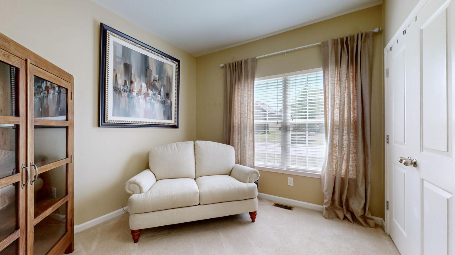All Bedrooms on Main Level with large Bonus Room over the Garage featuring a tremendous walk in floored Attic Storage w/full size access door. Freshly painted throughout. Hardwood floors in Family Room and Foyer that surround your Gas Fireplace. Soaring Ceilings surround this open floor plan that flows between the Living Room and Kitchen for entertaining fun. Dual sinks with separate soaking tub and walk-in shower in your Primary Bathroom make for early morning prep for the day so smooth. Plus a large walk-in closet. Outside you will enjoy your patio surrounded by the fence and treed line at the rear of the property. There is a walking trail throughout the community. Includes a riding lawn mower. You are just minutes away from Towhee Golf Course, Birdsong Social Restaurant, Fisher Park, Saturn Pkwy, I-65, Kroger's and Publix. Buyer and buyer agent to confirm information, no guarantee but all believed to be true. Subject to finding suitable housing.